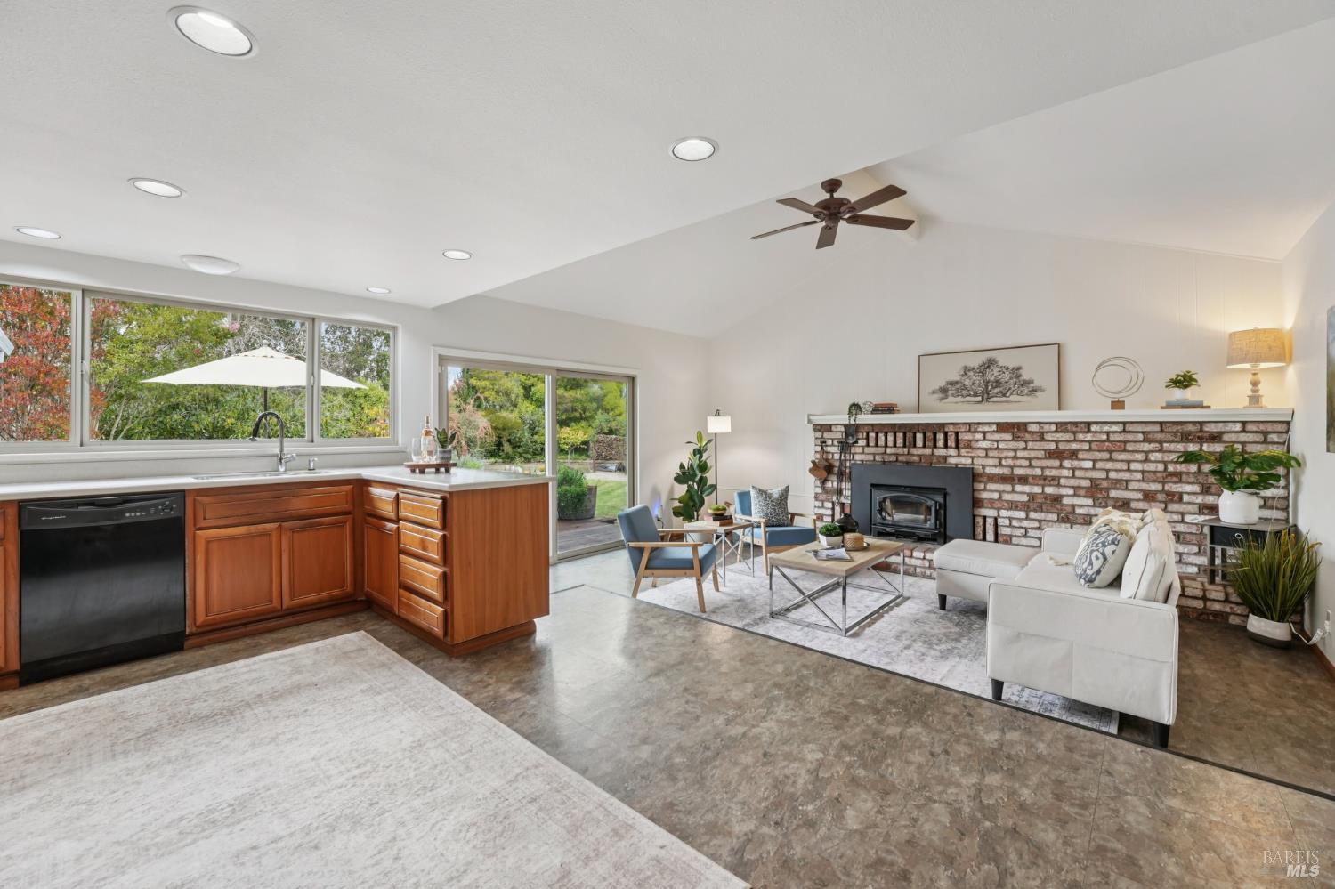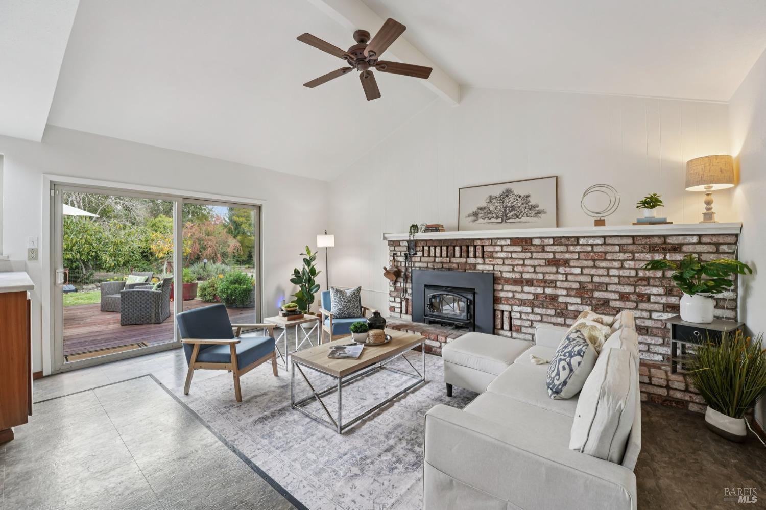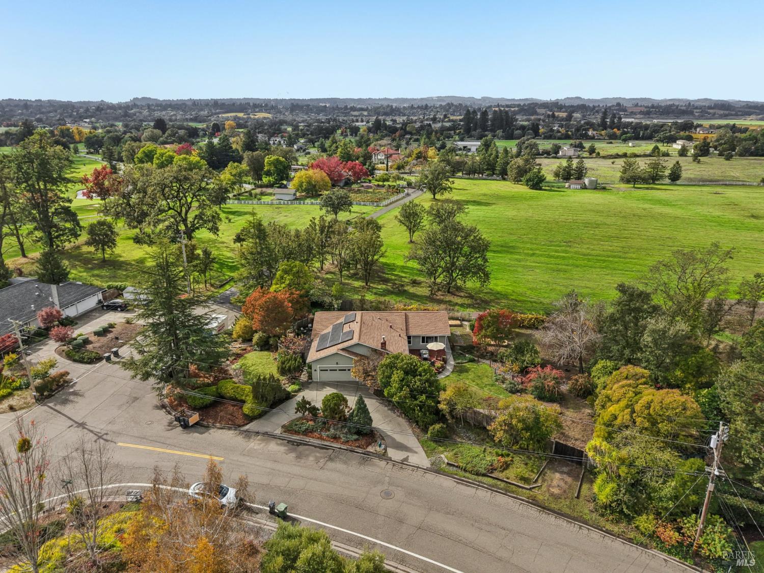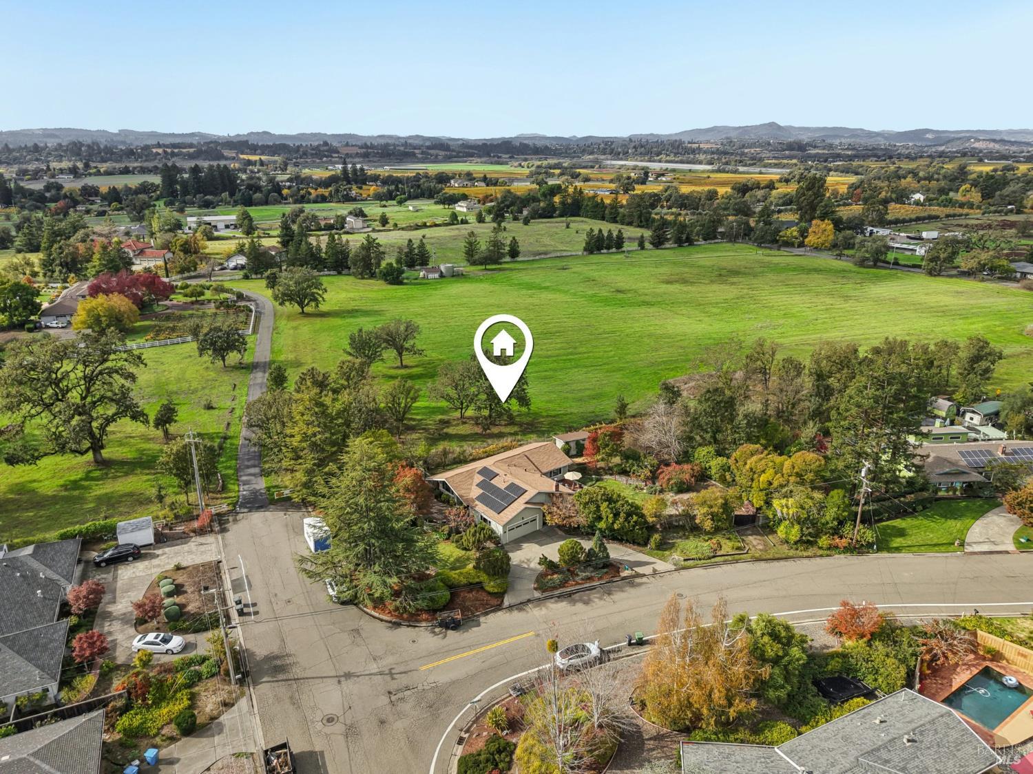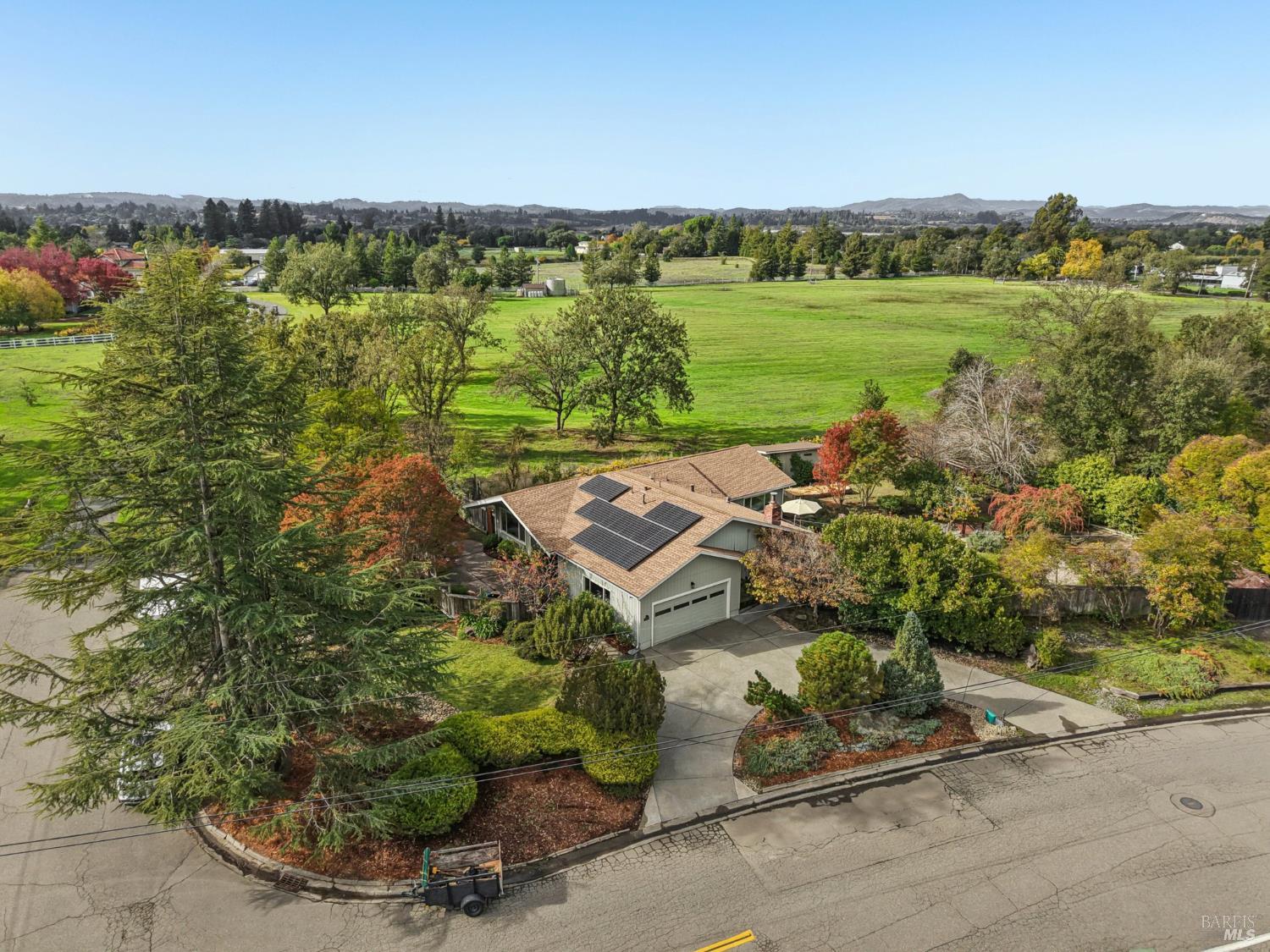 Step into 5305 Oak Meadow Dr, a home where indoor comfort meets outdoor serenity. This 4BR/2BA retreat welcomes you with vaulted ceilings and an open kitchen that invites gatherings and everyday living. Outside, the yard feels expansive and private, not overlooked, backing to open fields with flourishing fruit trees: grapes, figs, persimmons, and citrus, and multiple spaces for dining, relaxing, or entertaining under the sun. Designed for green living, the home features owned solar panels, an EV charger, and an EPA approved wood-burning fireplace for cozy, energy efficient comfort. Located in a peaceful neighborhood just steps from Santa Rosa Golf & Country Club, Sebastopol shops and dining, and local parks, this home combines effortless entertaining, lush gardens, and West County's sustainable lifestyle in one inviting package.
