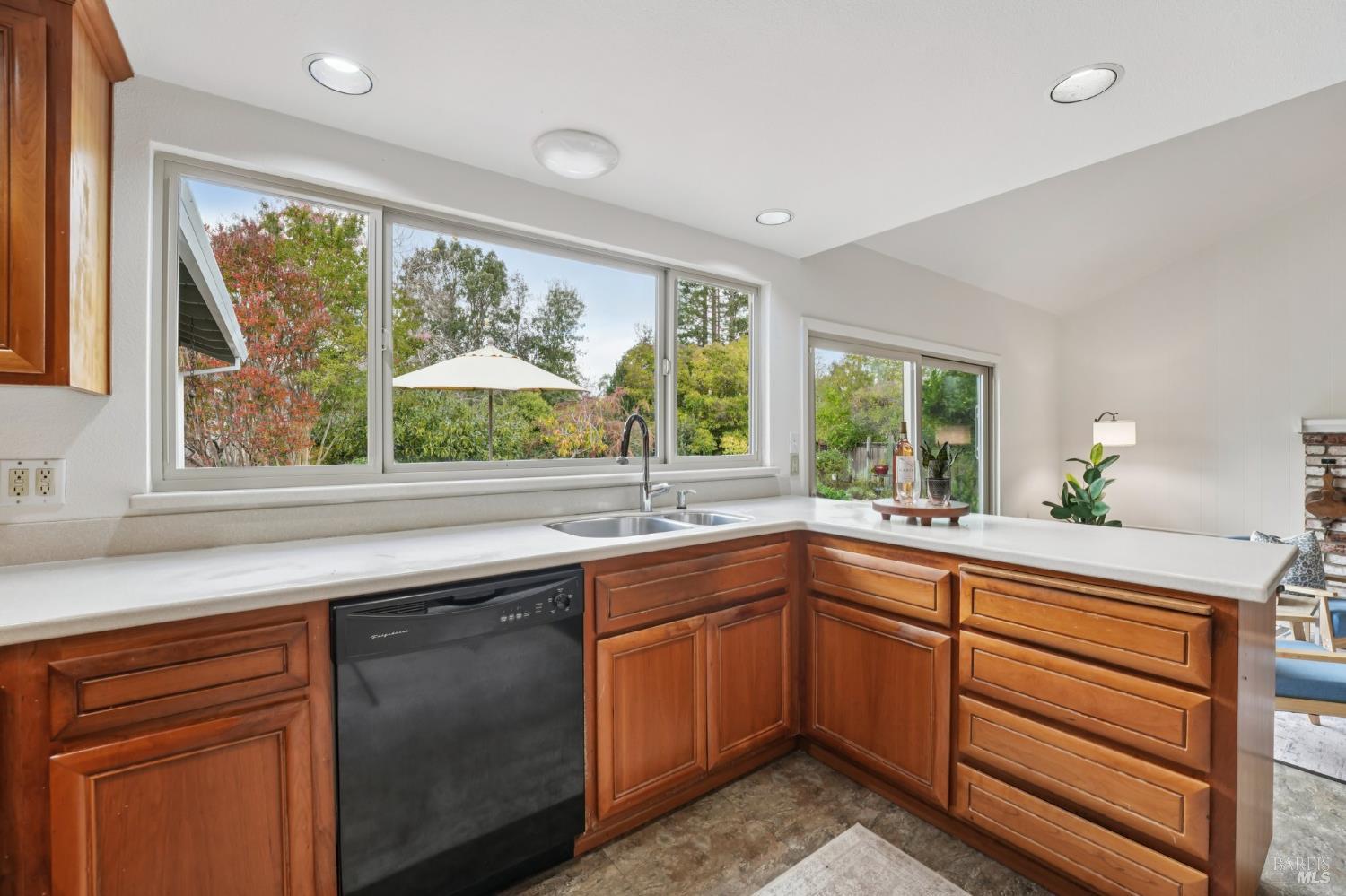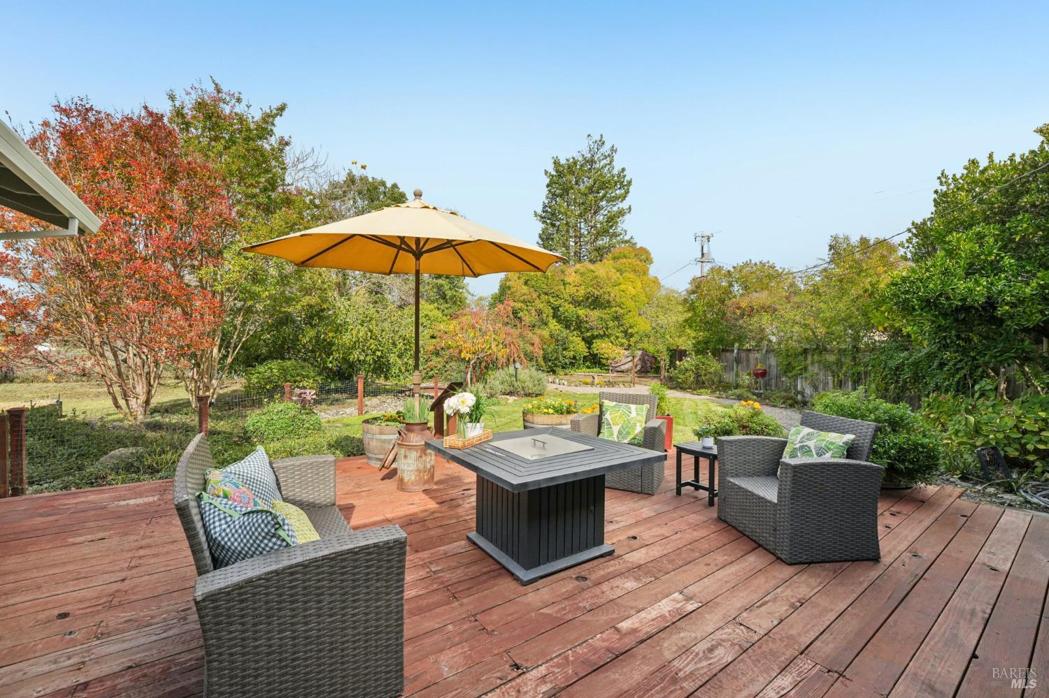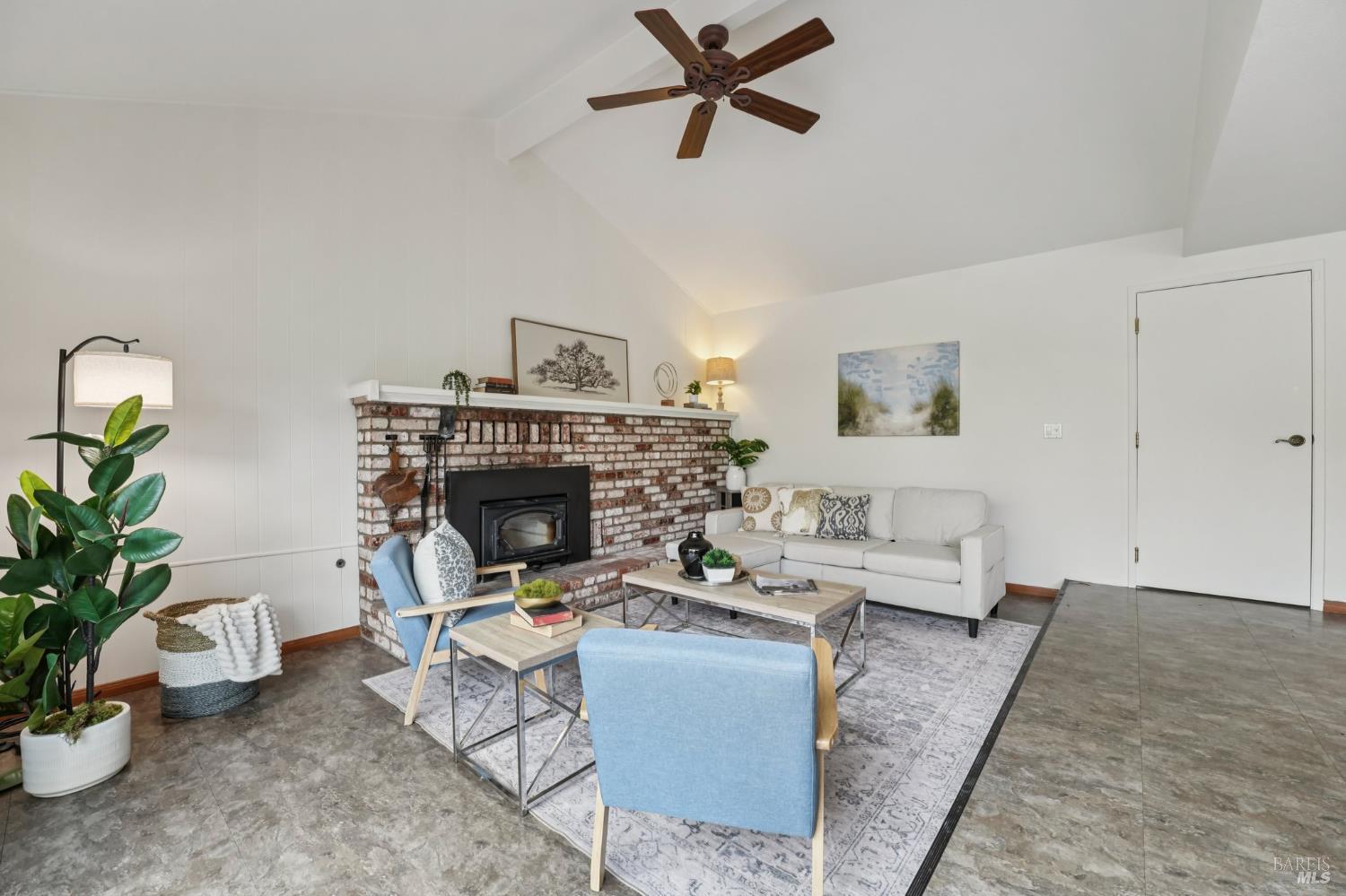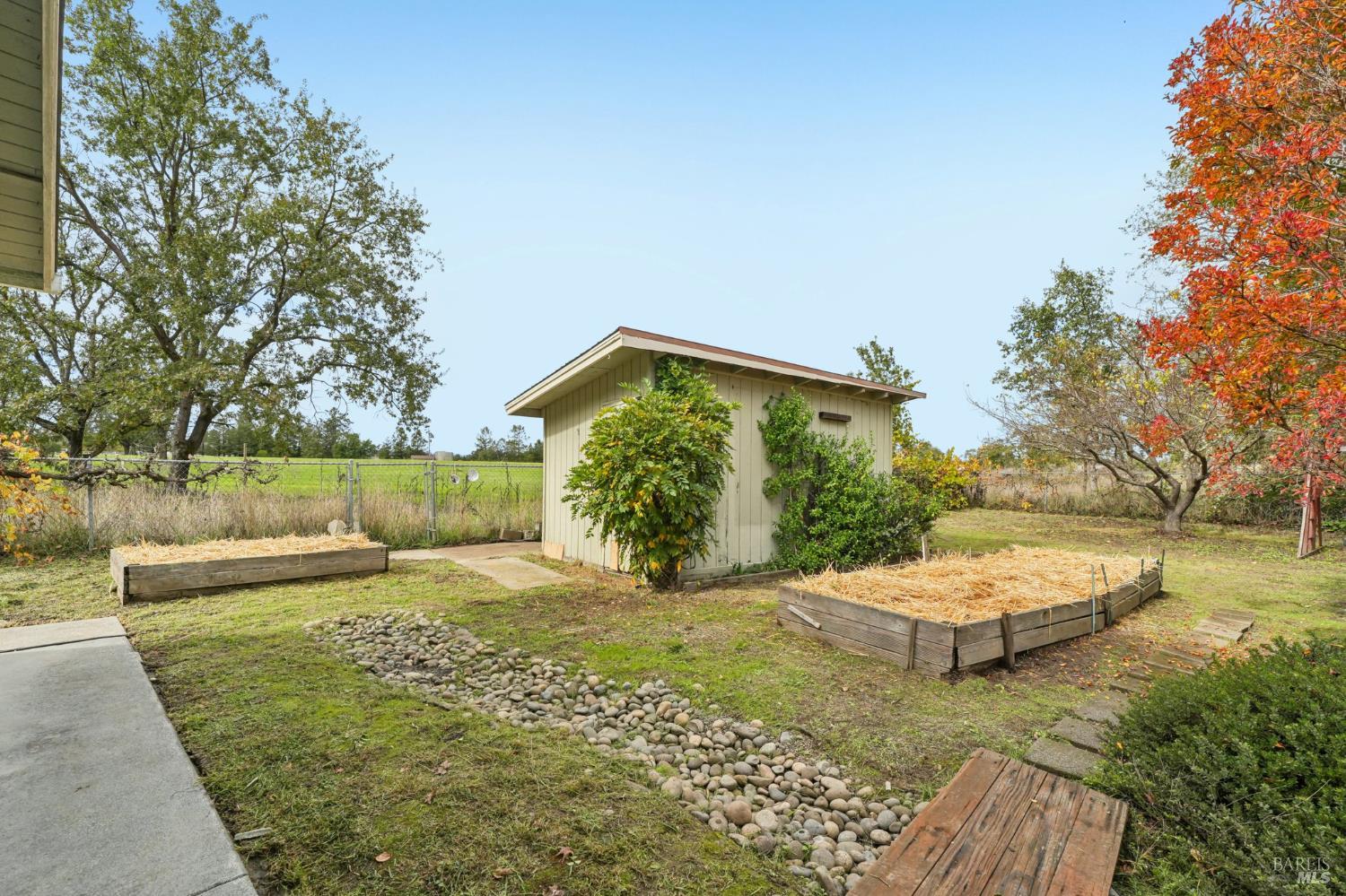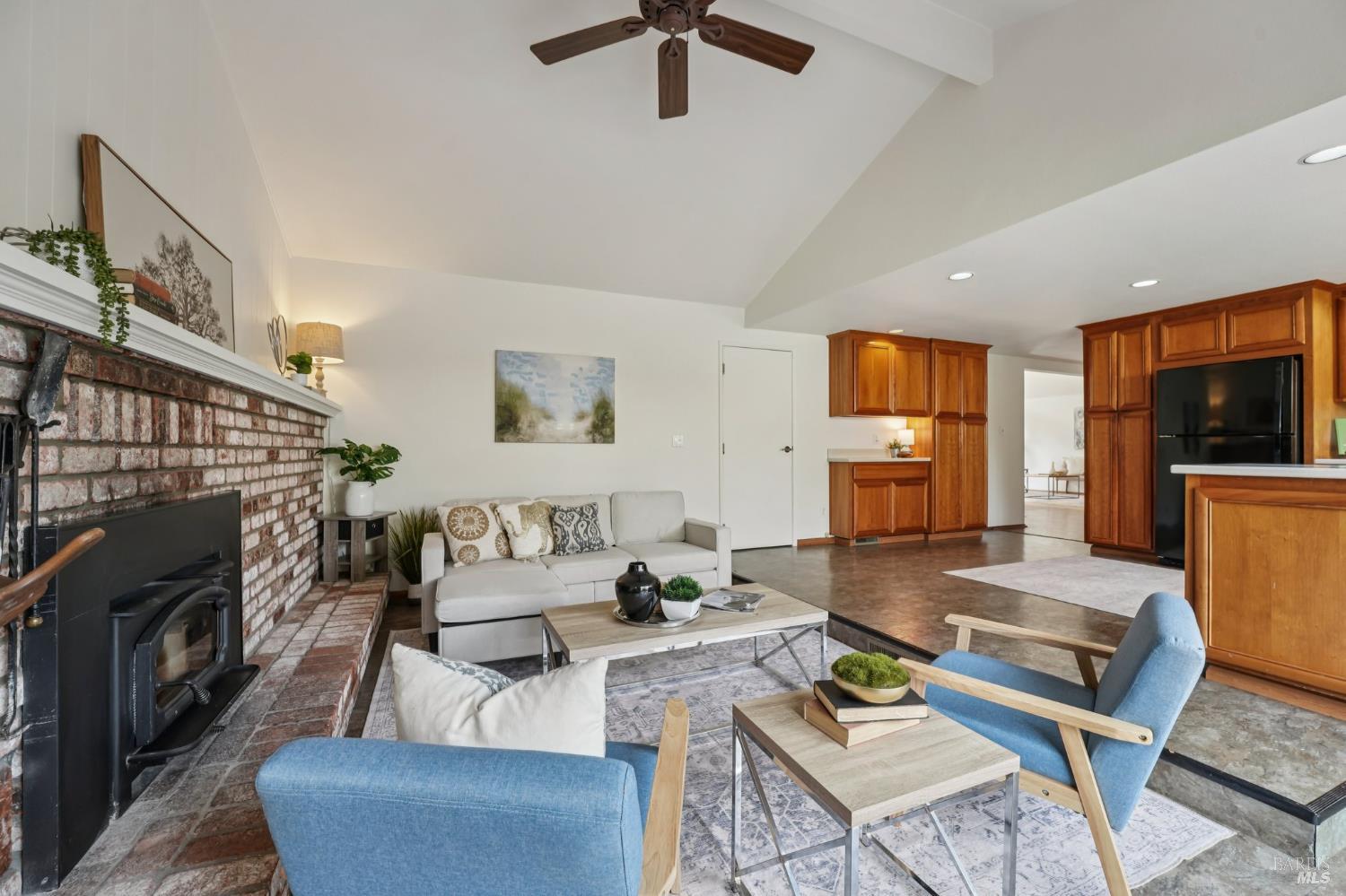 Step into 5305 Oak Meadow Dr, a home where indoor comfort meets outdoor serenity. This 4BR/2BA retreat welcomes you with vaulted ceilings and an open kitchen that invites gatherings and everyday living. Outside, the yard feels expansive and private, not overlooked, backing to open fields with flourishing fruit trees: grapes, figs, persimmons, and citrus, and multiple spaces for dining, relaxing, or entertaining under the sun. Designed for green living, the home features owned solar panels, an EV charger, and an EPA approved wood-burning fireplace for cozy, energy efficient comfort. Located in a peaceful neighborhood just steps from Santa Rosa Golf & Country Club, Sebastopol shops and dining, and local parks, this home combines effortless entertaining, lush gardens, and West County's sustainable lifestyle in one inviting package.