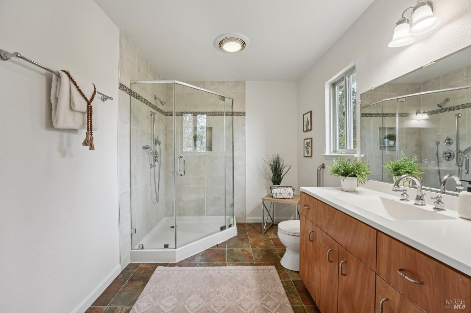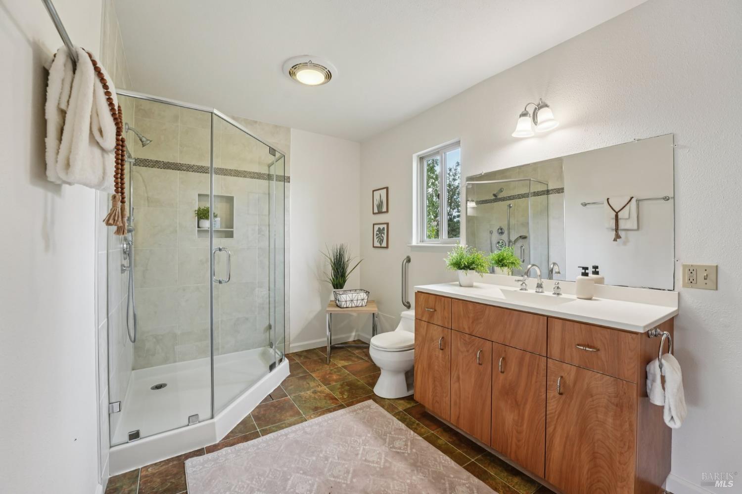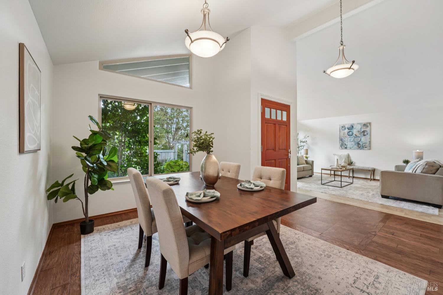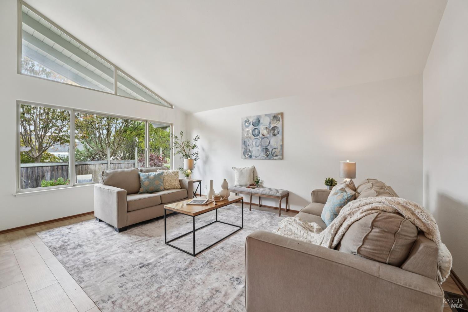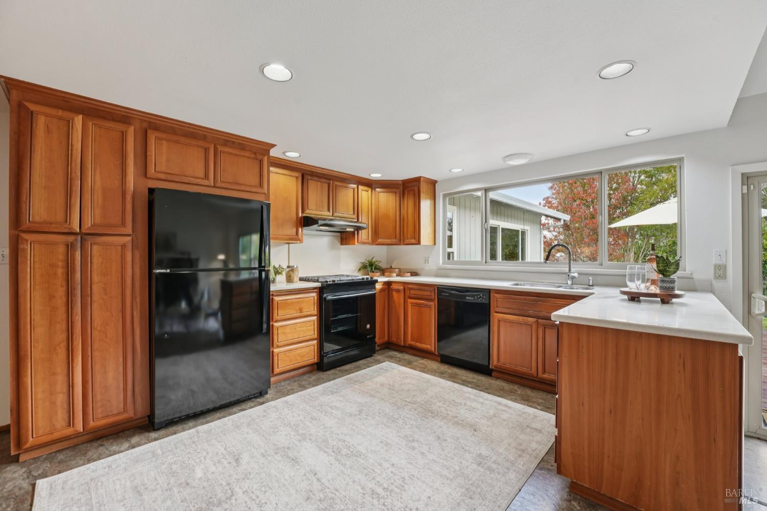 Step into 5305 Oak Meadow Dr, a home where indoor comfort meets outdoor serenity. This 4BR/2BA retreat welcomes you with vaulted ceilings and an open kitchen that invites gatherings and everyday living. Outside, the yard feels expansive and private, not overlooked, backing to open fields with flourishing fruit trees: grapes, figs, persimmons, and citrus, and multiple spaces for dining, relaxing, or entertaining under the sun. Designed for green living, the home features owned solar panels, an EV charger, and an EPA approved wood-burning fireplace for cozy, energy efficient comfort. Located in a peaceful neighborhood just steps from Santa Rosa Golf & Country Club, Sebastopol shops and dining, and local parks, this home combines effortless entertaining, lush gardens, and West County's sustainable lifestyle in one inviting package.
