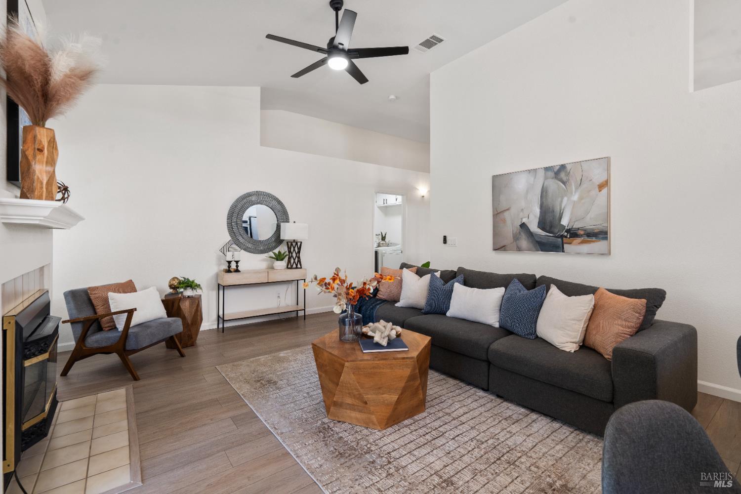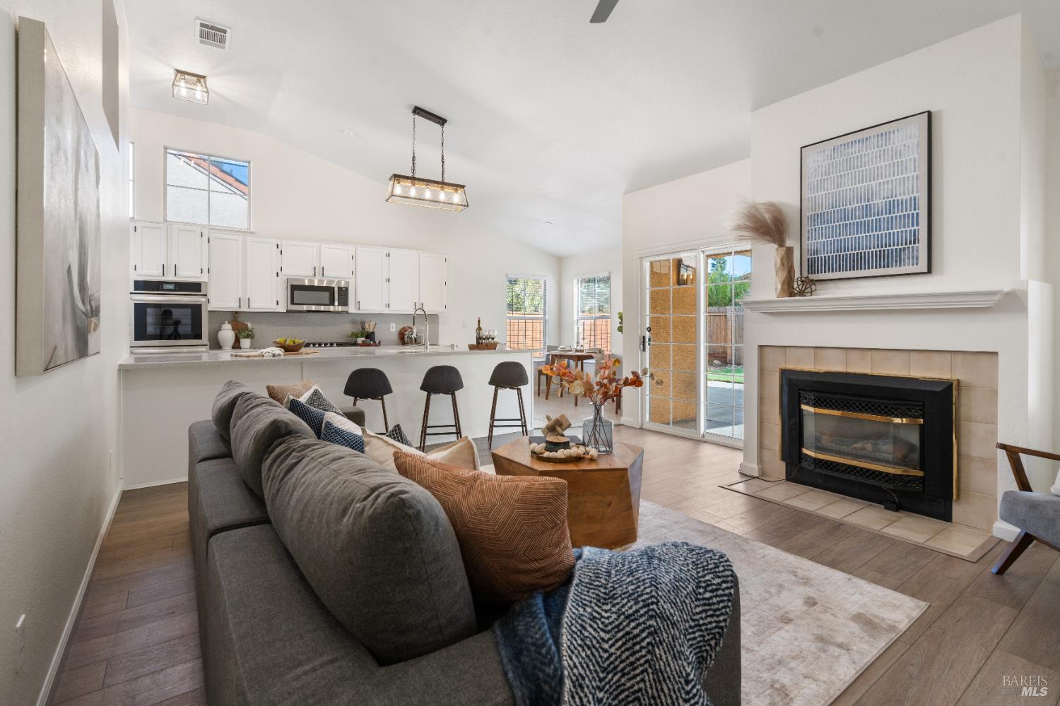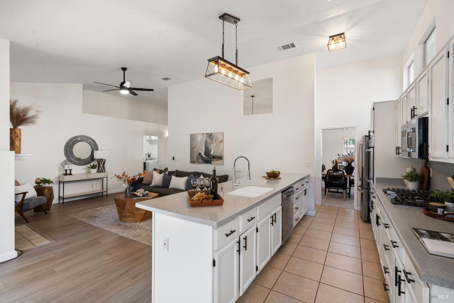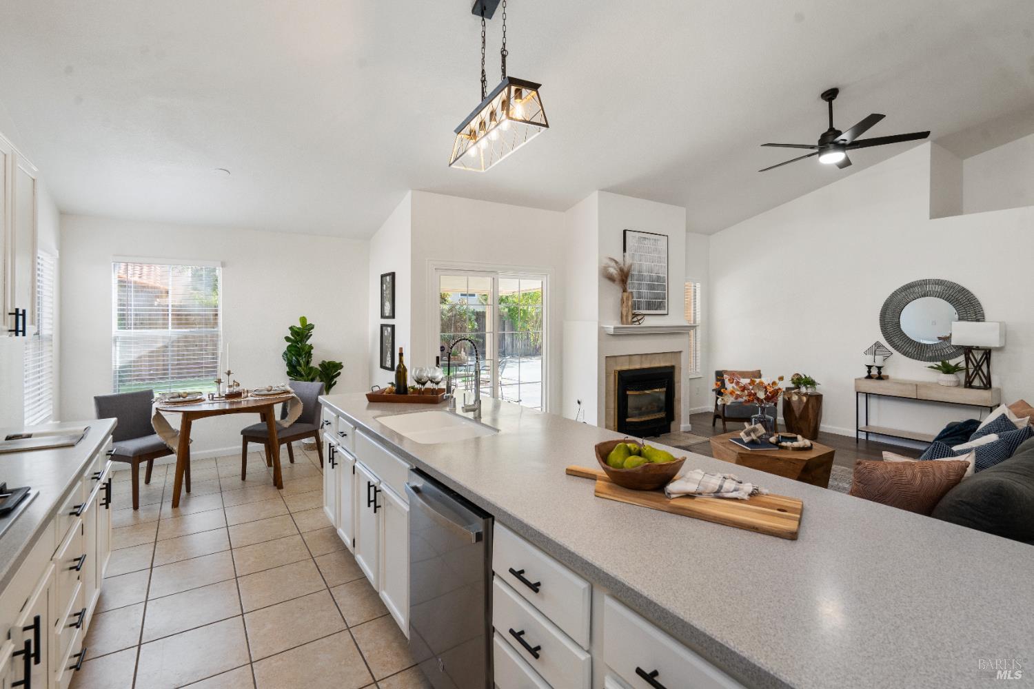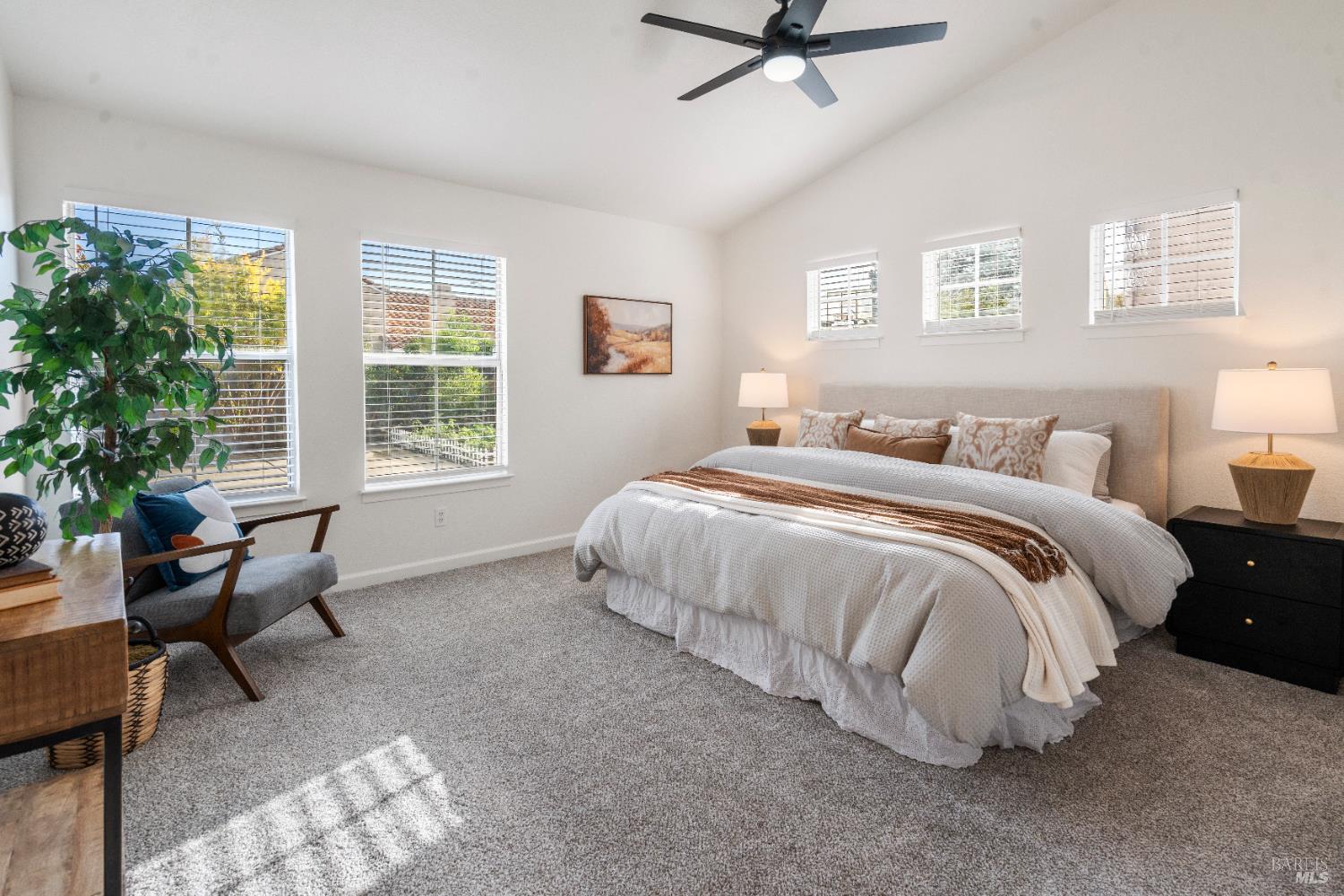 Spacious single story home with a great open floor plan and location. The kitchen opens up to a large family room with vaulted ceilings. Brand new ceiling fans are located in all bedrooms. The Primary Suite includes an inviting space with a large tub and a private walk in shower. All appliances to convey with the property (Most BRAND NEW). Multiple upgrades include: new paint, new carpet, new light fixtures, new baseboards, newer tankless water heater, newer flooring, newer garage door & much more. Possible RV parking on the side and low maintenance front and backyard. The backyard also features fruit trees paired with a garden area. This home is ready for you!