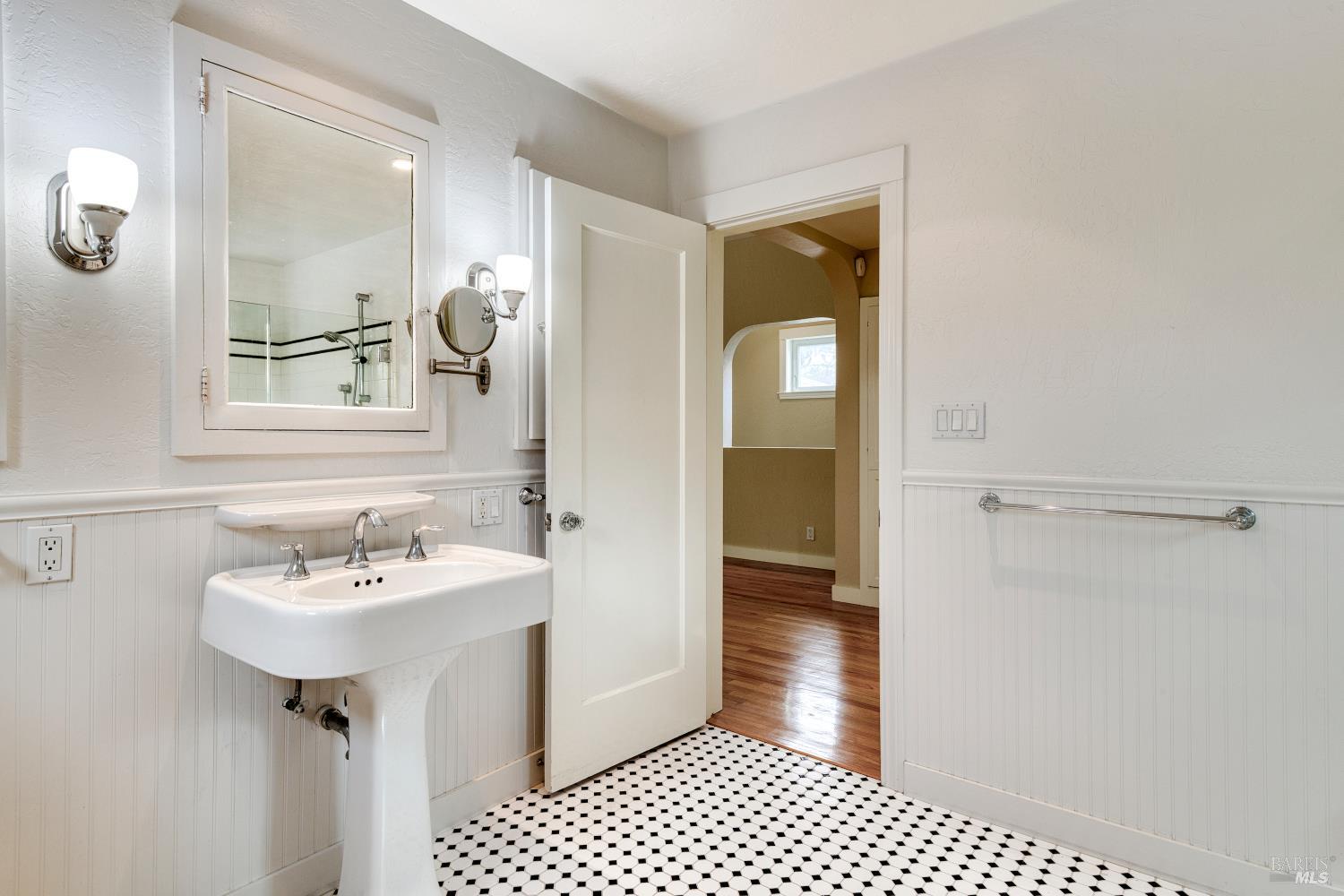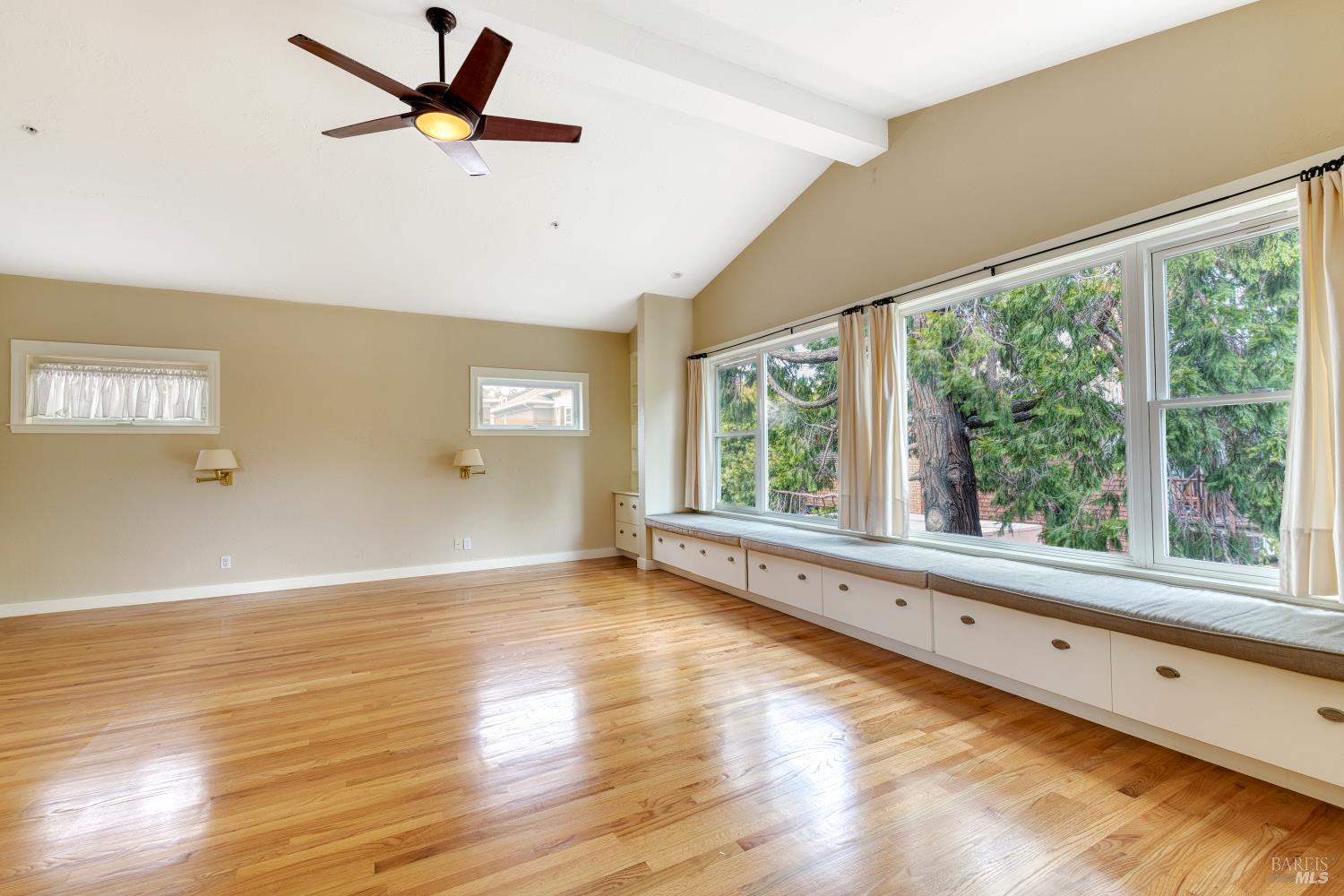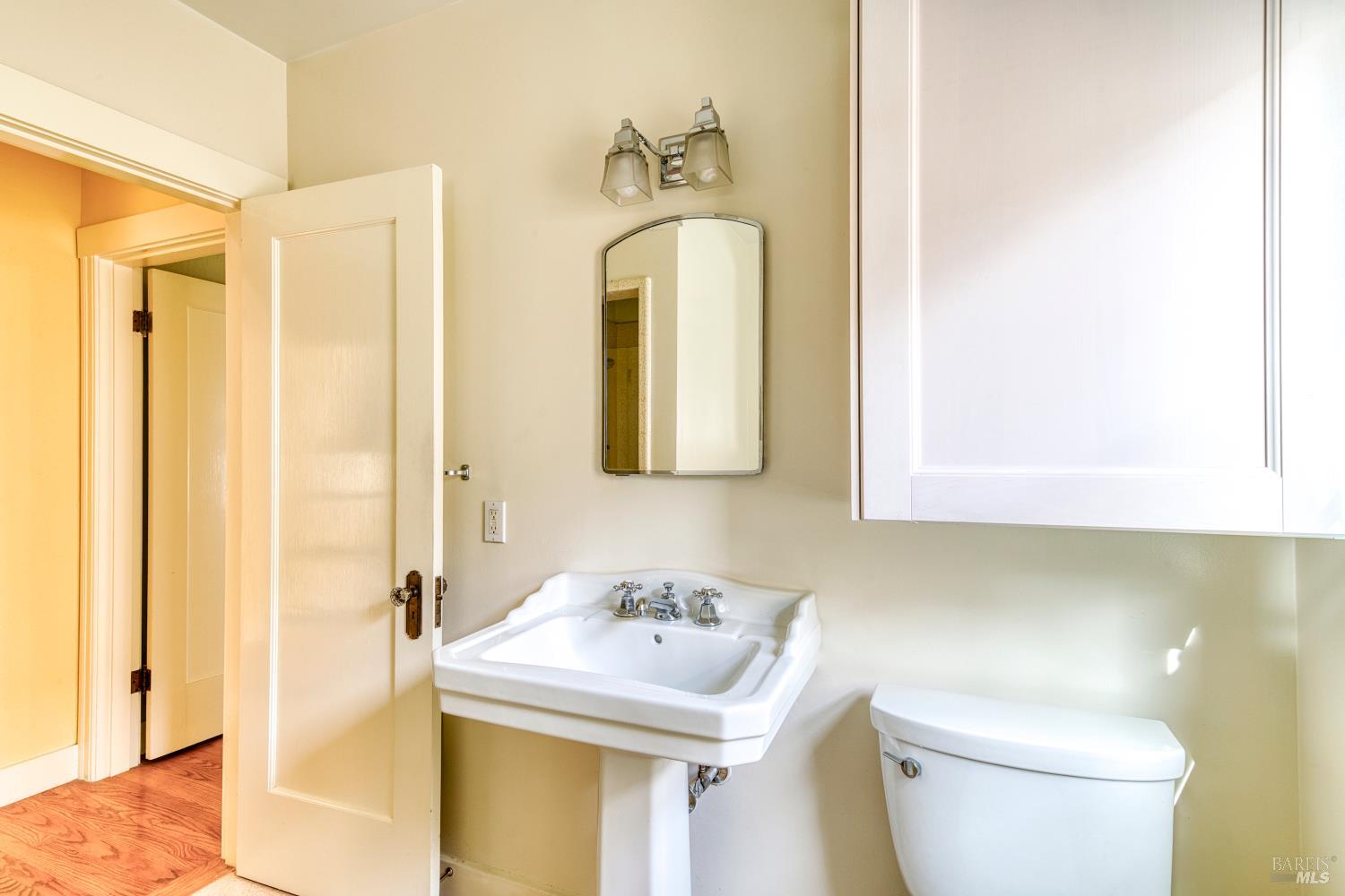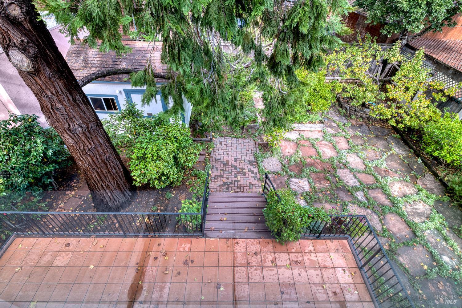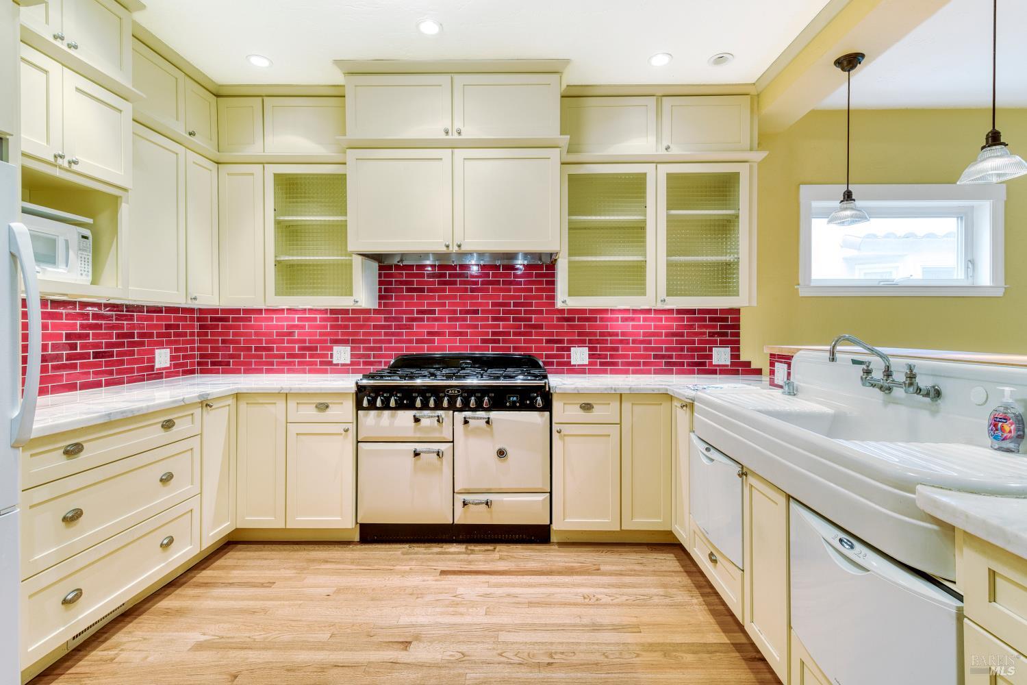 LARGER than it looks NOW 2,339 SQ. FT. - Owners have done major upgrades to this home by expanding the rear walls, raising the family room/dining, kitchen ceilings and adding a large primary suite upstairs w/ spacious bathroom, large closet, vaulted ceilings, wall of windows, window seats with additional storage cabinets below. All modifications and details were permitted and planned to accent the original 1936 period of construction. Hardwood floors throughout, interior sprinkler system, recessed lighting, newer electrical panel, OWNED SOLAR, dual pane windows (excluding older garage windows) and small wood stove with decorative tile surrounding. Marble counters in the kitchen with tasteful subway tile backsplash and unique 6 burner gas stove. Two separate pull out dishwashers, farmhouse sink, wood bar counter and wainscot molding. Nicely tiled rear deck, flagstone patio and walkways with fruit trees bordering. Two interior attic pull down ladders for additional storage (one in the main hallway and one in the upstairs primary closet) Interior door goes down to the one car garage. Garage has separate toilet, nearby sink and washer & dryer, additional cabinets and rear door to yard. Well built shed with storage shelves and work bench. Tasteful improvements ready for you to enjoy.