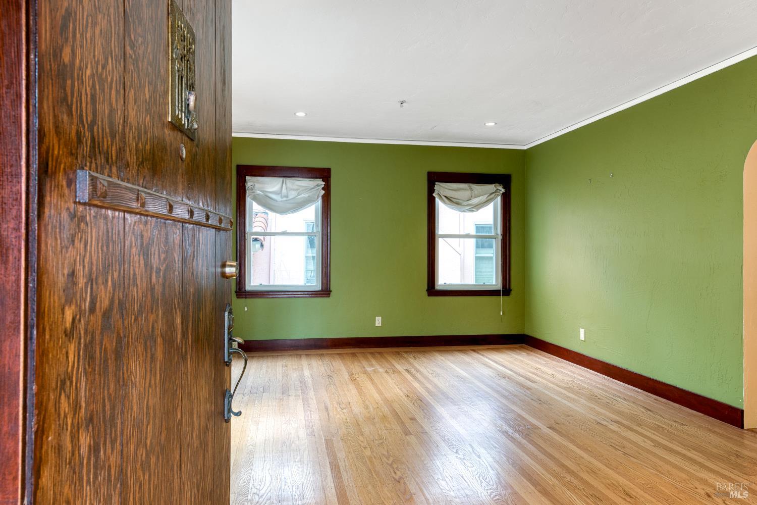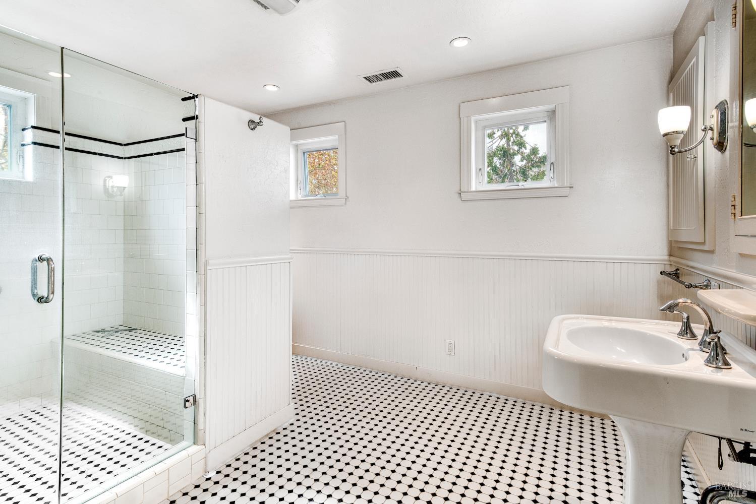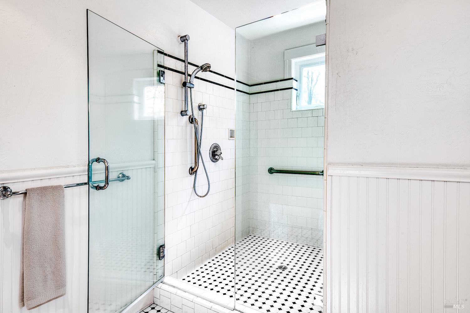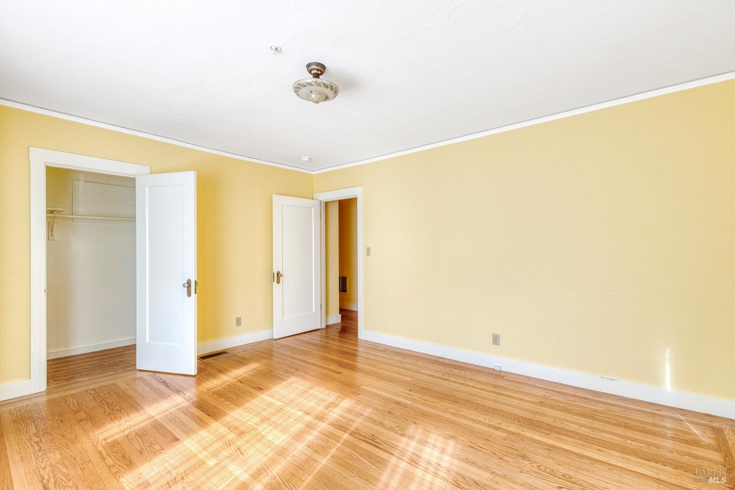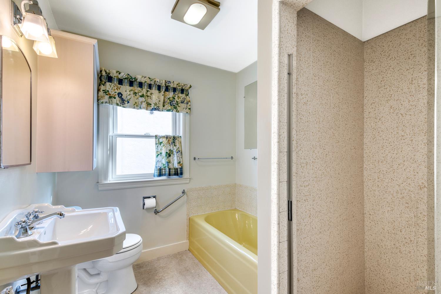 LARGER than it looks NOW 2,339 SQ. FT. - Owners have done major upgrades to this home by expanding the rear walls, raising the family room/dining, kitchen ceilings and adding a large primary suite upstairs w/ spacious bathroom, large closet, vaulted ceilings, wall of windows, window seats with additional storage cabinets below. All modifications and details were permitted and planned to accent the original 1936 period of construction. Hardwood floors throughout, interior sprinkler system, recessed lighting, newer electrical panel, OWNED SOLAR, dual pane windows (excluding older garage windows) and small wood stove with decorative tile surrounding. Marble counters in the kitchen with tasteful subway tile backsplash and unique 6 burner gas stove. Two separate pull out dishwashers, farmhouse sink, wood bar counter and wainscot molding. Nicely tiled rear deck, flagstone patio and walkways with fruit trees bordering. Two interior attic pull down ladders for additional storage (one in the main hallway and one in the upstairs primary closet) Interior door goes down to the one car garage. Garage has separate toilet, nearby sink and washer & dryer, additional cabinets and rear door to yard. Well built shed with storage shelves and work bench. Tasteful improvements ready for you to enjoy.