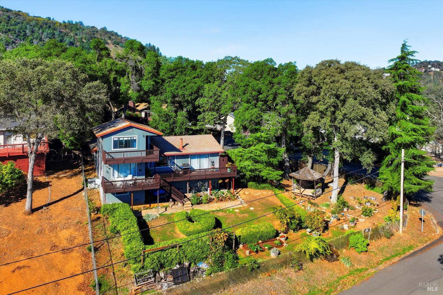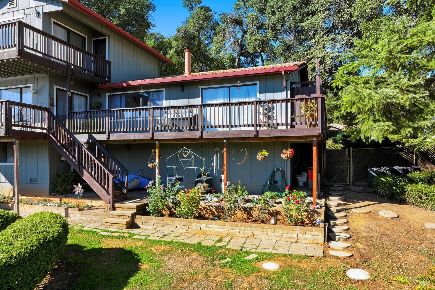 Experience the best of Lake County living in this beautifully refreshed home on a scenic quarter acre in the desirable Buckingham Park community. Enjoy stunning lake views, modern updates, and lush, mature gardens designed for relaxation and entertaining. Inside, a bright open-concept living area features large windows framing the lake and an antique wood stove for cozy evenings. The remodeled kitchen offers new stainless appliances, updated cabinetry, and plenty of prep space. Upstairs, the serene primary suite includes a private bath and balcony overlooking the lakeperfect for morning coffee or sunset views. The main level includes two spacious, freshly painted bedrooms and new flooring throughout much of the home. Recent improvements include freshly painted decks and doors, new garage doors with battery backup, new gutters, a remodeled downstairs bath with soaking tub, and updated window coverings and ceiling fans. The fenced yard with fruit trees and vibrant gardens completes this charming Buckingham retreat.