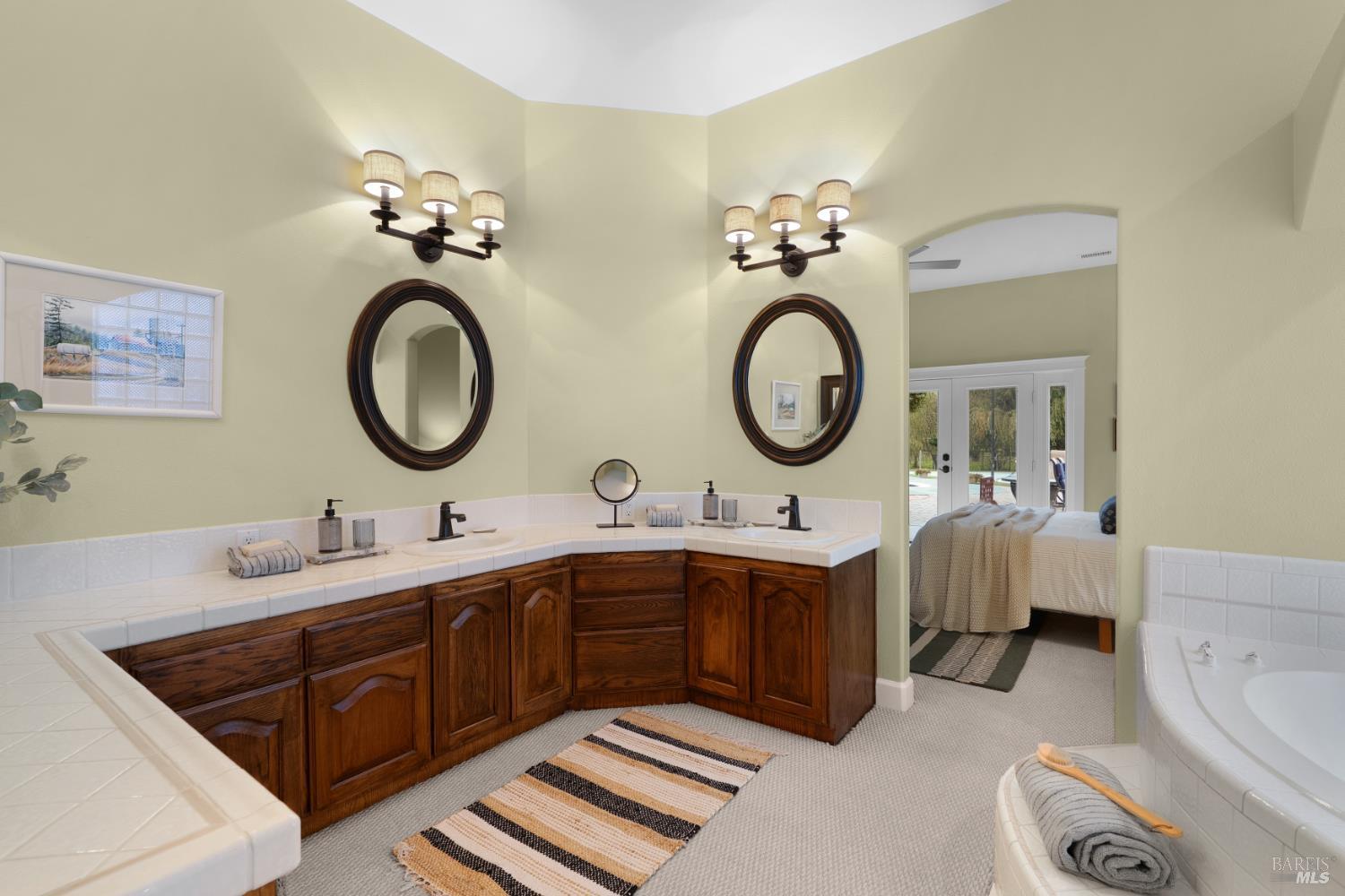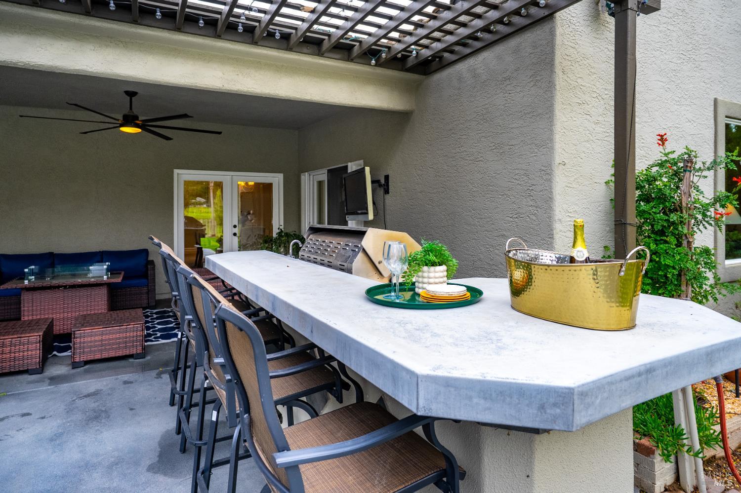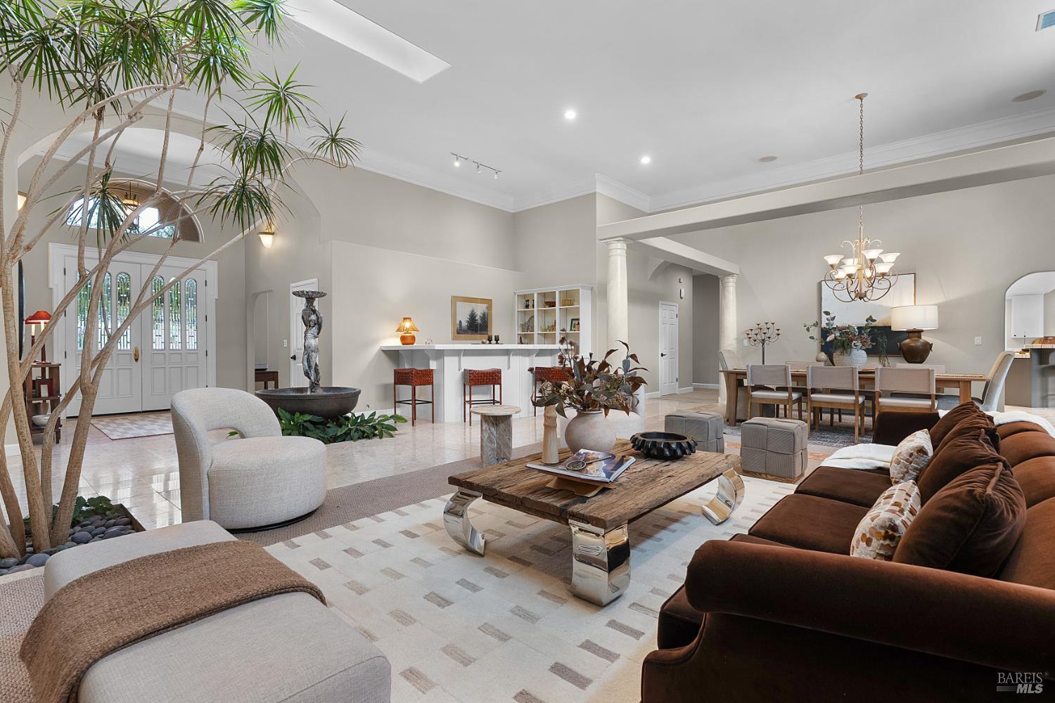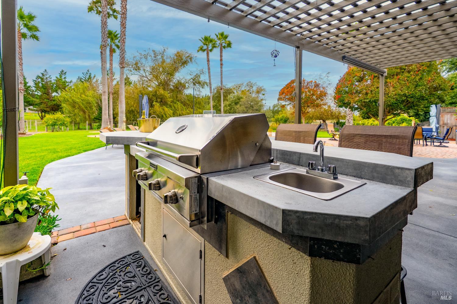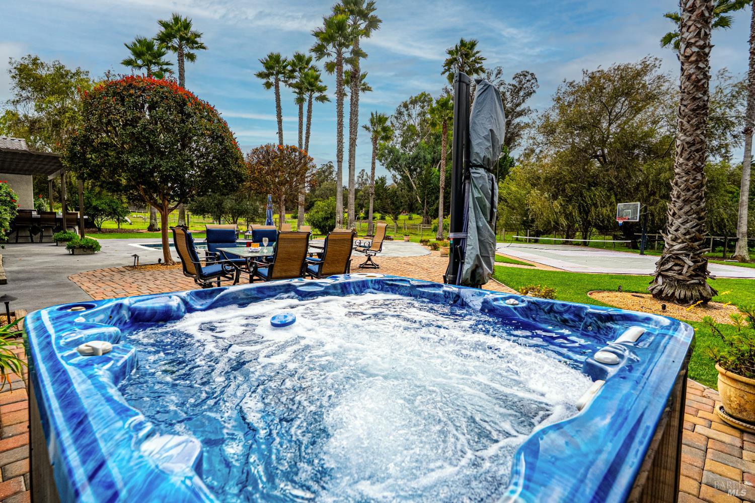Nestled along a private, cypress-lined gated drive in Sebastopol, this Mediterranean estate blends privacy, elegance, and resort-style living on over 2 acres. Spanning approximately 4,500 sq. ft. with 4 bedrooms and 4.5 baths, the home exudes elegance and comfort with grand open spaces, high ceilings, and seamless indoor-outdoor flow, and a seamless open-concept layout. The grand great room invites you in with a tiled fireplace, built-in wet bar, and walls of windows that flood the space with natural light. The kitchen connects to the family and dining areas, creating the perfect flow for entertaining. The primary suite features French doors to the patio, a jetted soaking tub, a walk-in closet, a private fitness room, and a serene sitting area. Step outside to your own Sonoma County oasiscomplete with a sparkling pool, spa, covered outdoor kitchen, and multiple patios for al fresco dining. Enjoy a lighted sport court, cozy firepit, and fountains framed by majestic palm trees. A three-car garage with a temperature-controlled wine vault and ample RV and boat parking add to the property's appeal. Experience resort living every day with poolside sunsets, elegant gatherings, and peaceful privacyall just minutes from the heart of Sebastopol.