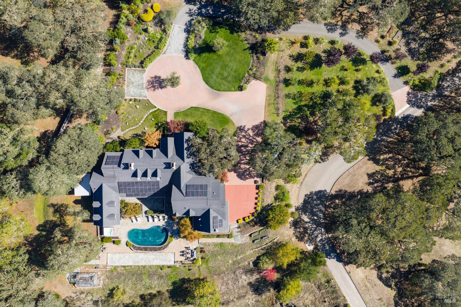 Behind gates and oriented to lake and vineyard vistas, this elegant estate pairs resort-style amenities with space to cultivate your own Wine Country lifestyle - think gardens, orchard, and room for animals - minutes from acclaimed wineries, dining, and luxury amenities. Inside, a chef's kitchen with large island and dual pantries opens to a vaulted dining room with fireplace. The living room's open-beam ceilings and dramatic fireplace frame wall - length accordion doors that blend indoors and out. Down a spiral stair, a wine cellar adds true Wine Country character. On the main floor, the primary wing offers a suite with fireplace, walk-in closet room, steam shower, soaking tub, plus a sunroom ideal as a gym or studio stepping out to the pool and hot tub. A main-floor office with full bath adds flexibility. Upstairs, two ensuite bedrooms take in hillside and vineyard views. Outdoors, enjoy a built-in BBQ kitchen, covered dining patio, bocce court, pool, hot tub, raised garden beds, and substantial orchard. Equestrian amenities include run-in shed, pasture, tack room with electricity and water, and access to nearby riding trails. Roughly 1hr from the Golden Gate, & 10min to Healdsburg square & the airport, your private Wine Country retreat offers every comfort close at hand.
