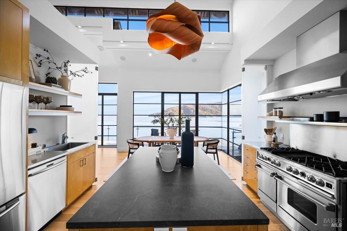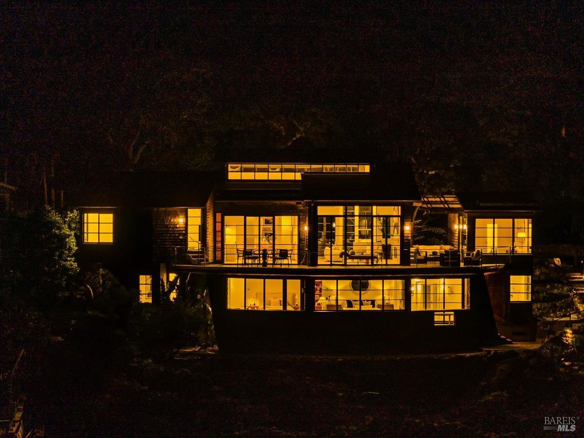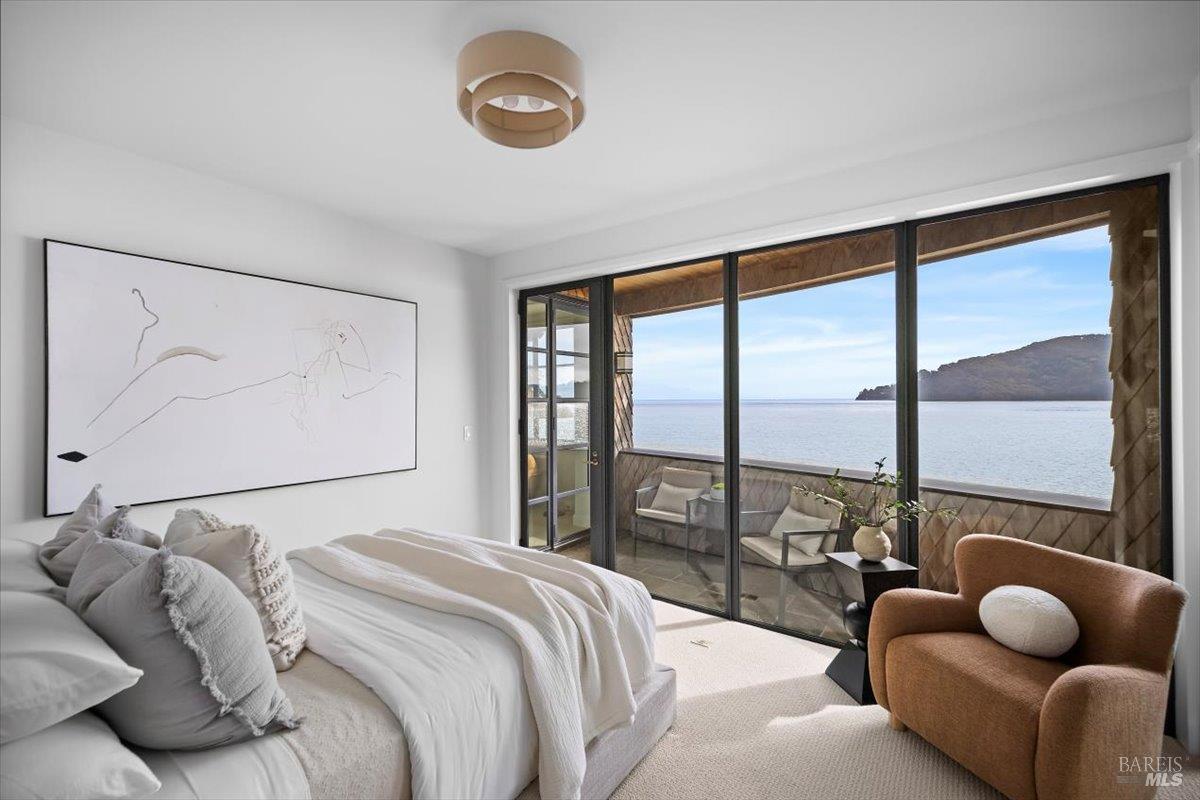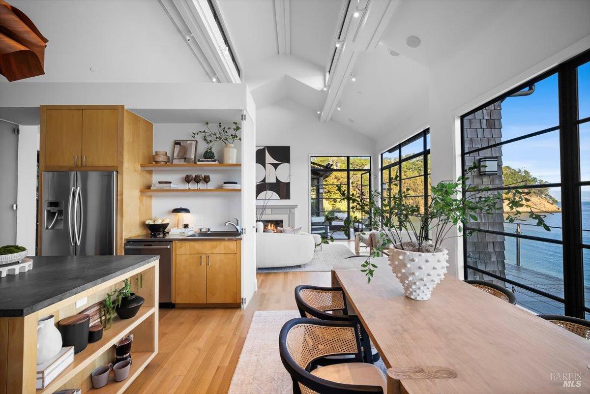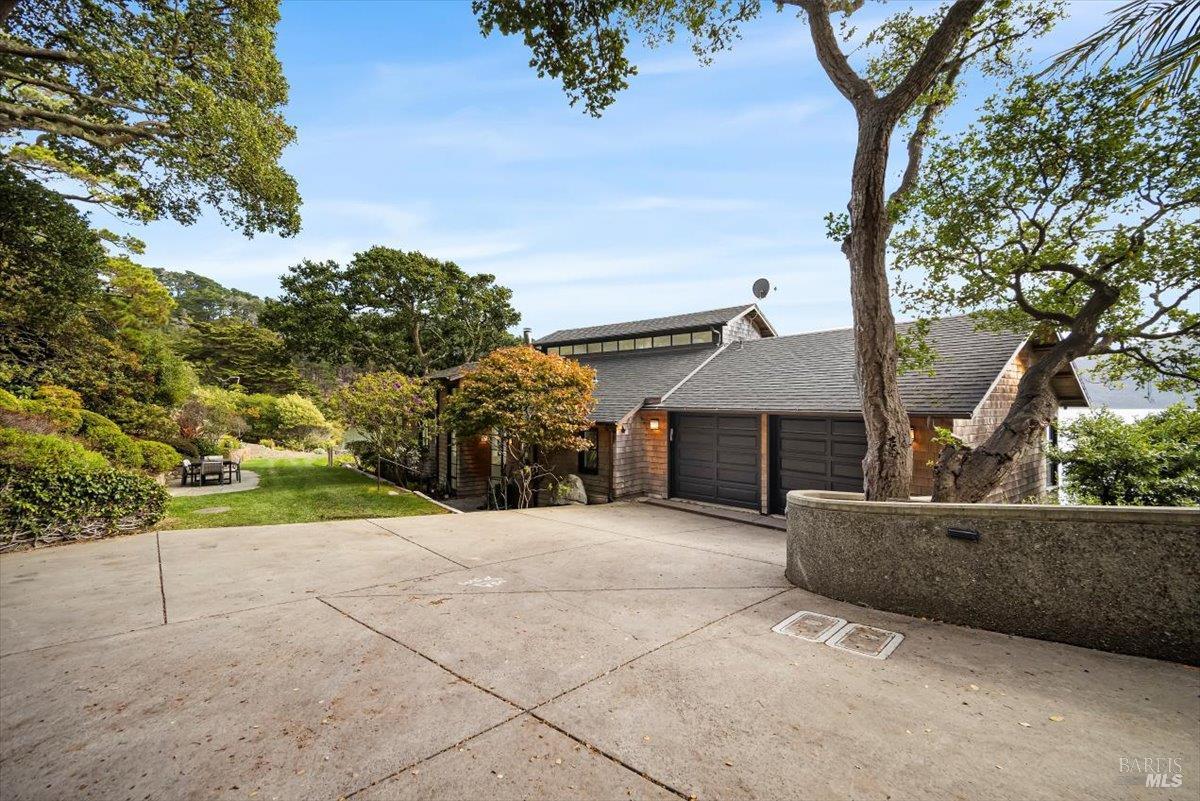 Rarely does a home of this architectural integrity become available. Inspired by Frank Lloyd Wright's Taliesin West and Fallingwater, this one-of-a-kind Tiburon retreat was designed by a local architect and her husband as their dream coastal sanctuary. Completed in 2001 with Mayta & Jensen Inc., the home embodies Wright's philosophy of organic architecture, living in harmony with its surroundings and evolving with light, air, and time. Cedar shingles have weathered to a silvery patina, blending naturally into the landscape. Expansive windows frame sweeping views across to Angel Island, filling the interiors with warmth and movement throughout the day. A breezeway connects the main living area to a tranquil office, creating a seamless transition between work and rest. The chef's kitchen and living spaces have been gracefully updated, honoring the original design while enhancing flow. Thoughtful details include a steam shower, built-in vacuum system, and herb garden, echoing the home's coastal setting. A private beach below is perfect for launching kayaks or sunset bonfires. Just minutes from downtown Tiburon, this must-see home offers timeless design, rare waterfront access, and an effortless connection between architecture and nature.