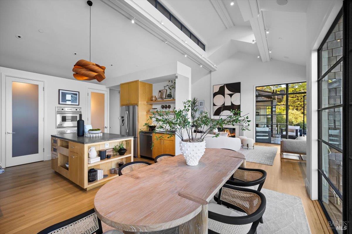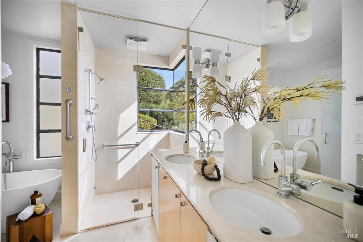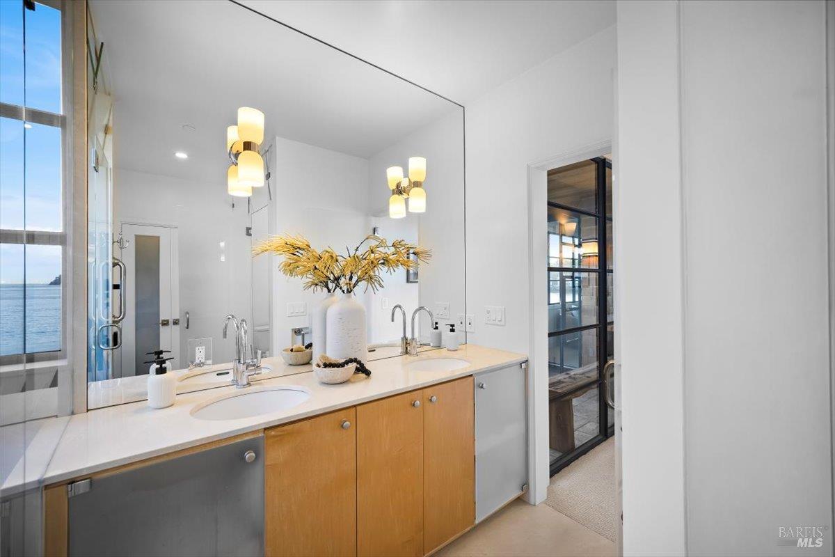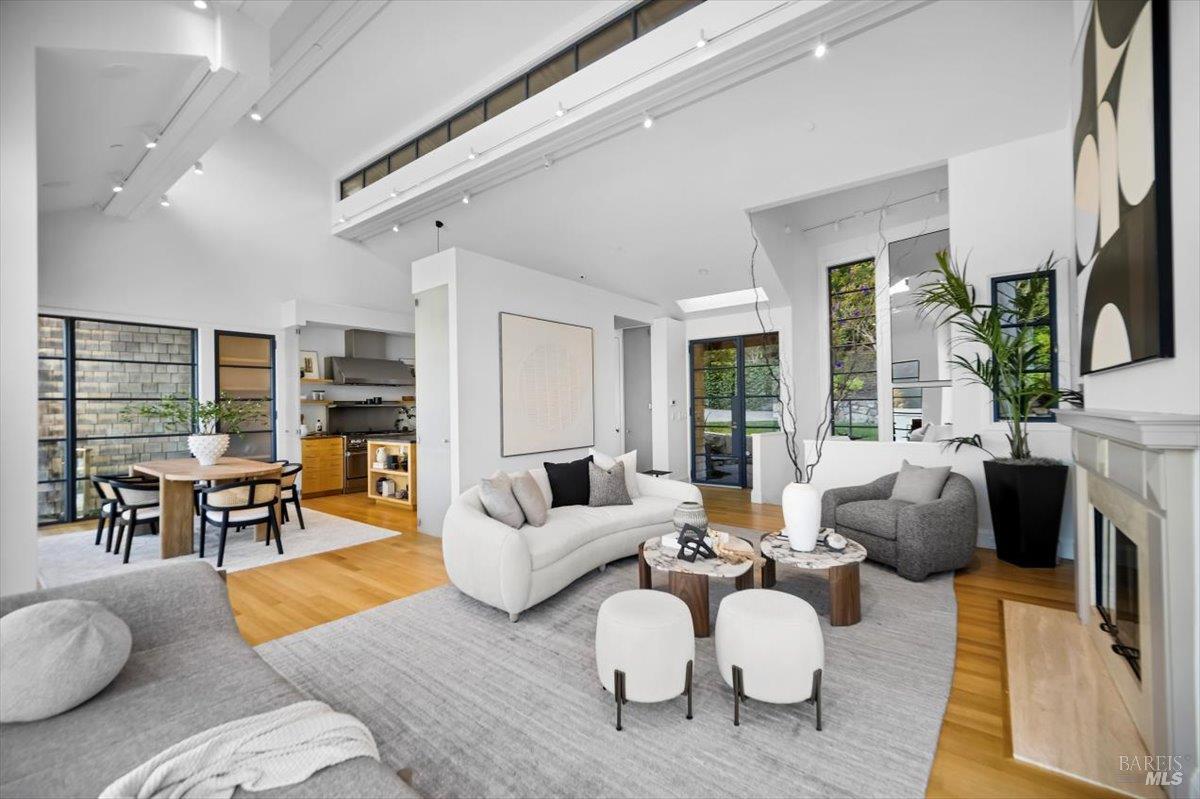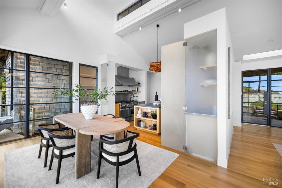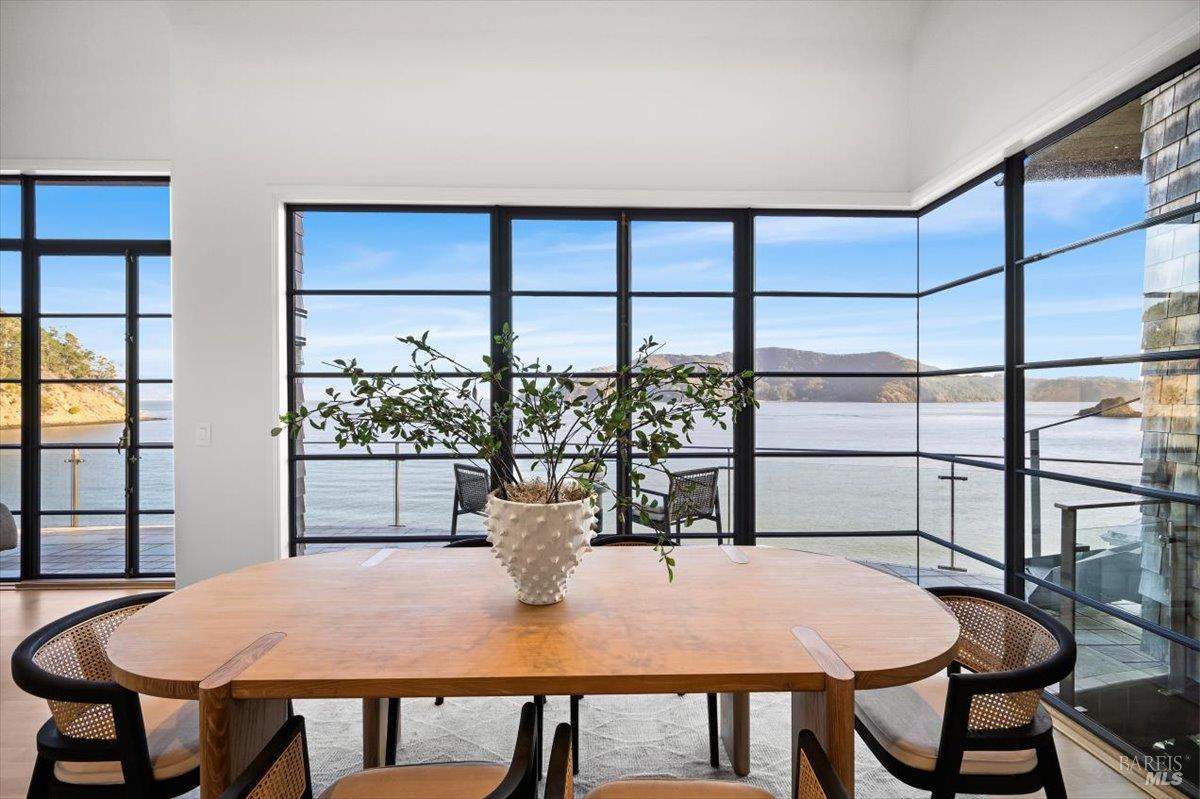 Rarely does a home of this architectural integrity become available. Inspired by Frank Lloyd Wright's Taliesin West and Fallingwater, this one-of-a-kind Tiburon retreat was designed by a local architect and her husband as their dream coastal sanctuary. Completed in 2001 with Mayta & Jensen Inc., the home embodies Wright's philosophy of organic architecture, living in harmony with its surroundings and evolving with light, air, and time. Cedar shingles have weathered to a silvery patina, blending naturally into the landscape. Expansive windows frame sweeping views across to Angel Island, filling the interiors with warmth and movement throughout the day. A breezeway connects the main living area to a tranquil office, creating a seamless transition between work and rest. The chef's kitchen and living spaces have been gracefully updated, honoring the original design while enhancing flow. Thoughtful details include a steam shower, built-in vacuum system, and herb garden, echoing the home's coastal setting. A private beach below is perfect for launching kayaks or sunset bonfires. Just minutes from downtown Tiburon, this must-see home offers timeless design, rare waterfront access, and an effortless connection between architecture and nature.