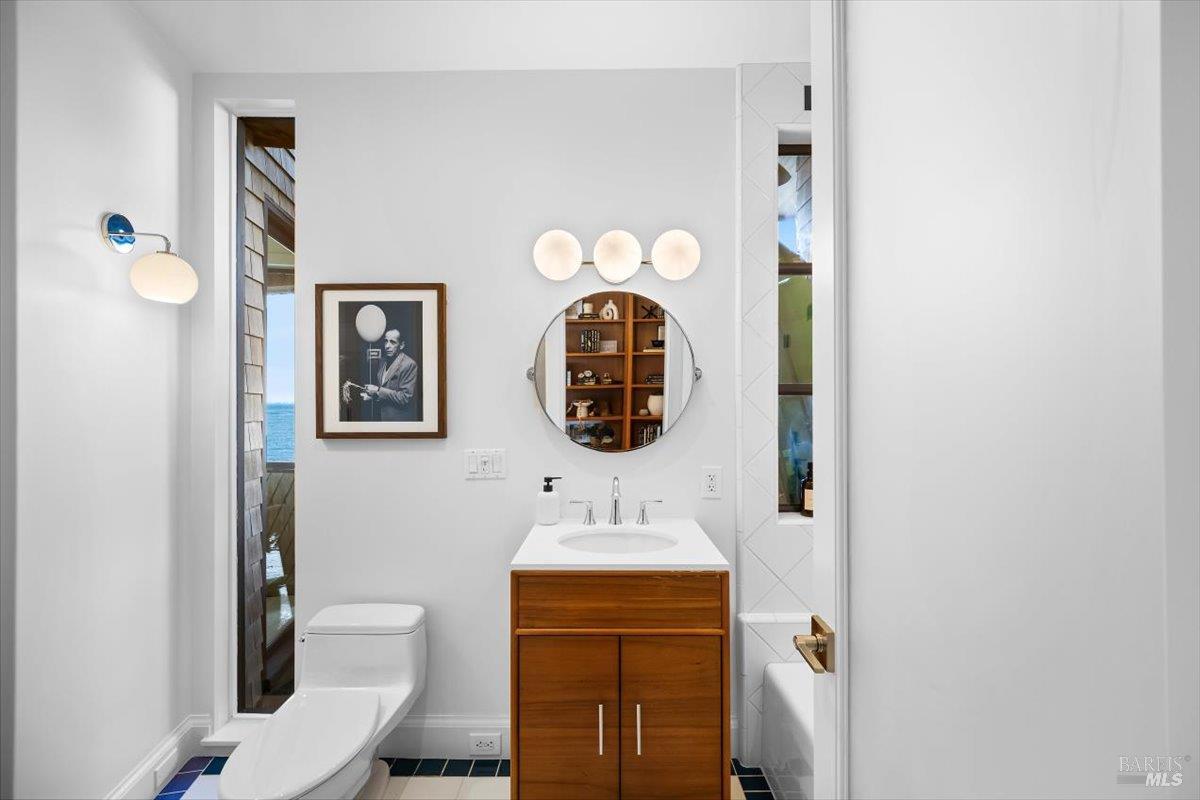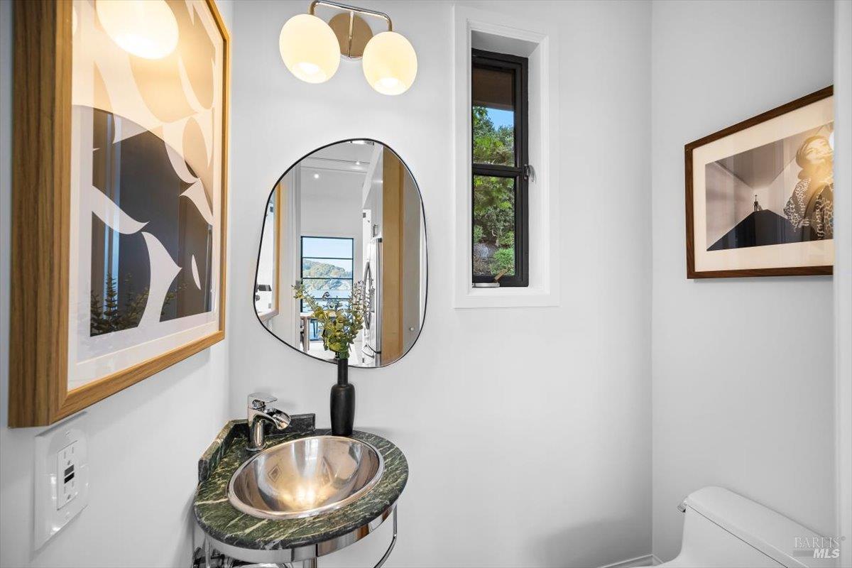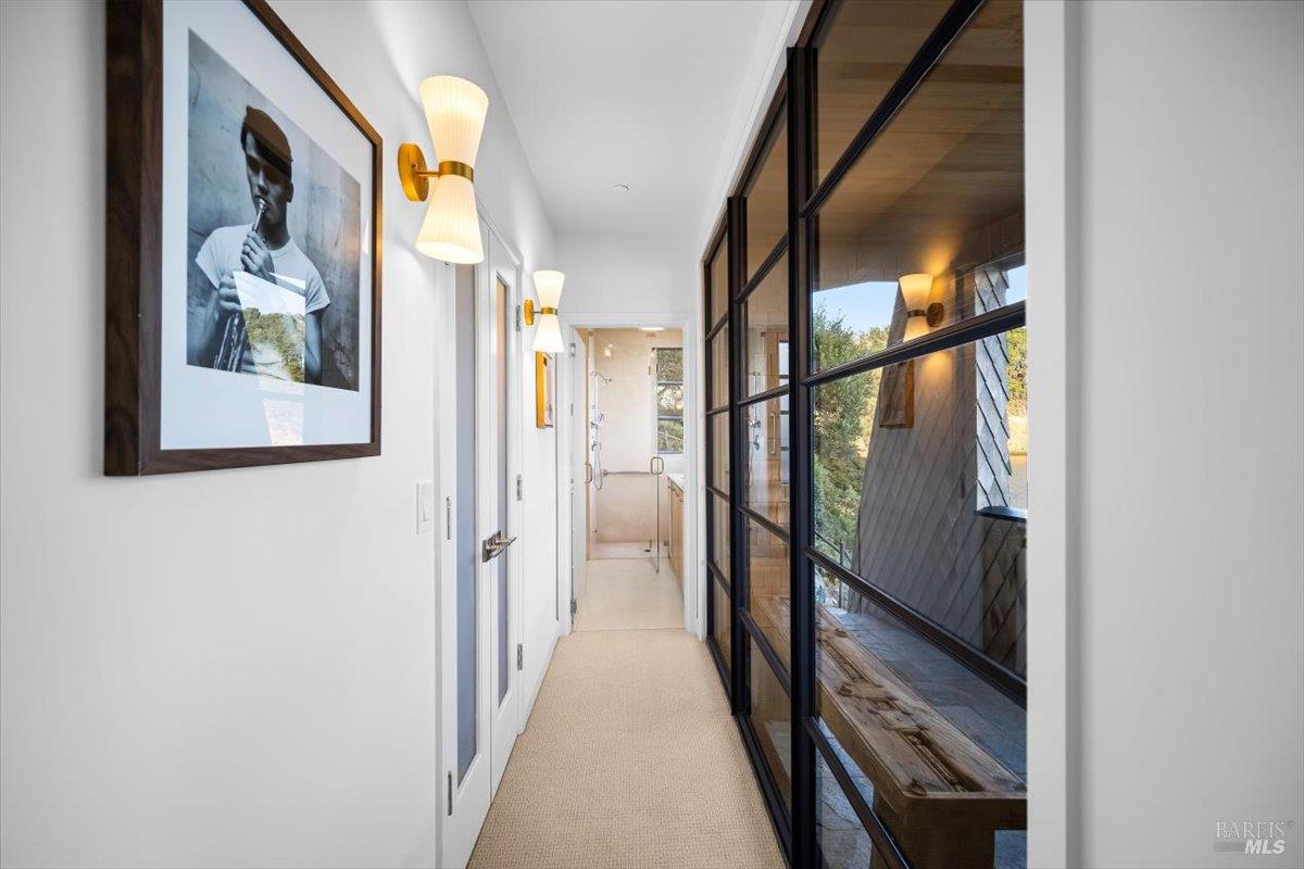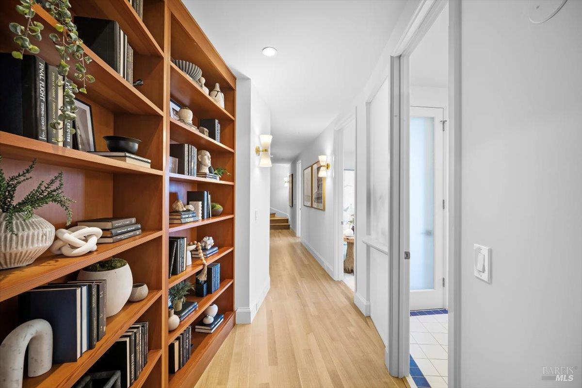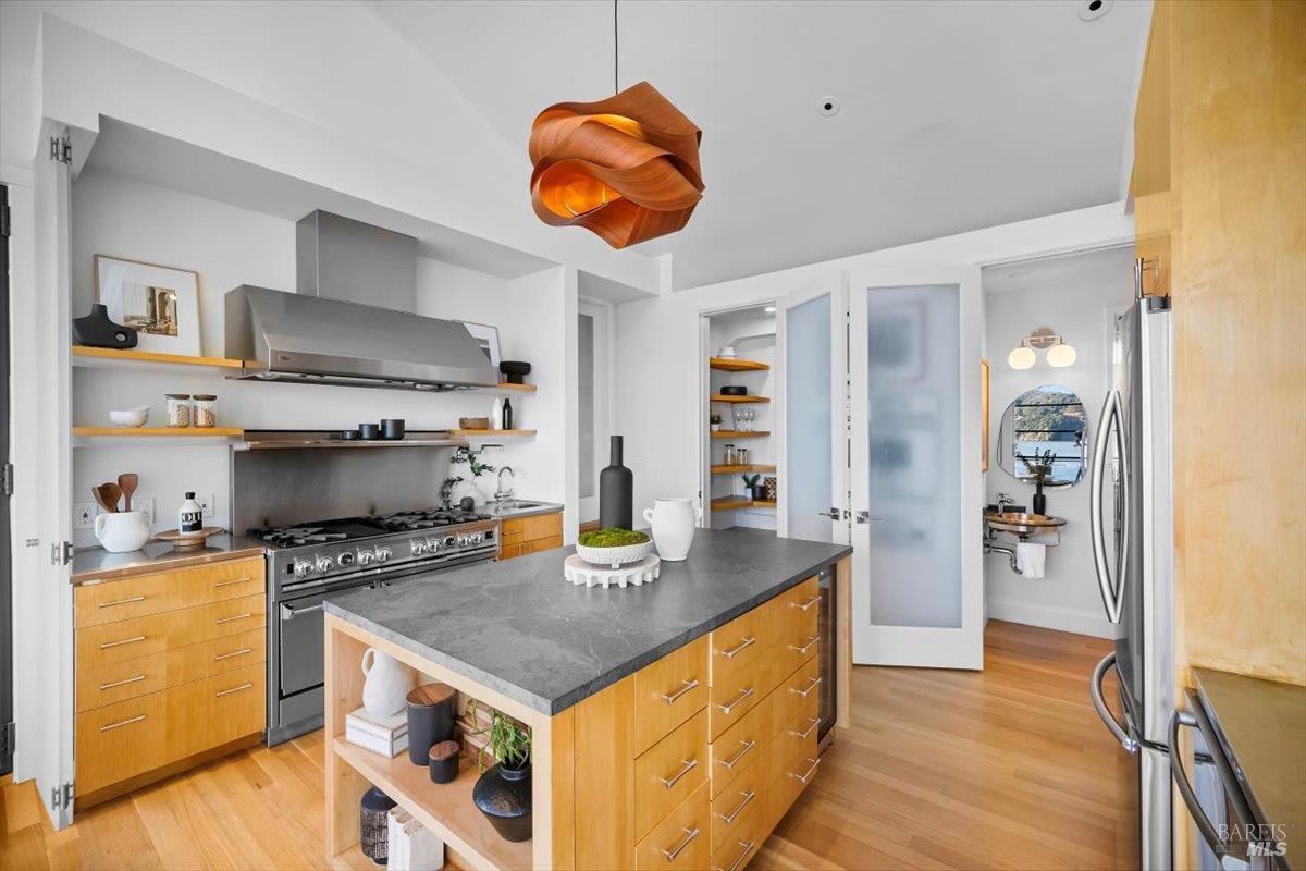 Rarely does a home of this architectural integrity become available. Inspired by Frank Lloyd Wright's Taliesin West and Fallingwater, this one-of-a-kind Tiburon retreat was designed by a local architect and her husband as their dream coastal sanctuary. Completed in 2001 with Mayta & Jensen Inc., the home embodies Wright's philosophy of organic architecture, living in harmony with its surroundings and evolving with light, air, and time. Cedar shingles have weathered to a silvery patina, blending naturally into the landscape. Expansive windows frame sweeping views across to Angel Island, filling the interiors with warmth and movement throughout the day. A breezeway connects the main living area to a tranquil office, creating a seamless transition between work and rest. The chef's kitchen and living spaces have been gracefully updated, honoring the original design while enhancing flow. Thoughtful details include a steam shower, built-in vacuum system, and herb garden, echoing the home's coastal setting. A private beach below is perfect for launching kayaks or sunset bonfires. Just minutes from downtown Tiburon, this must-see home offers timeless design, rare waterfront access, and an effortless connection between architecture and nature.