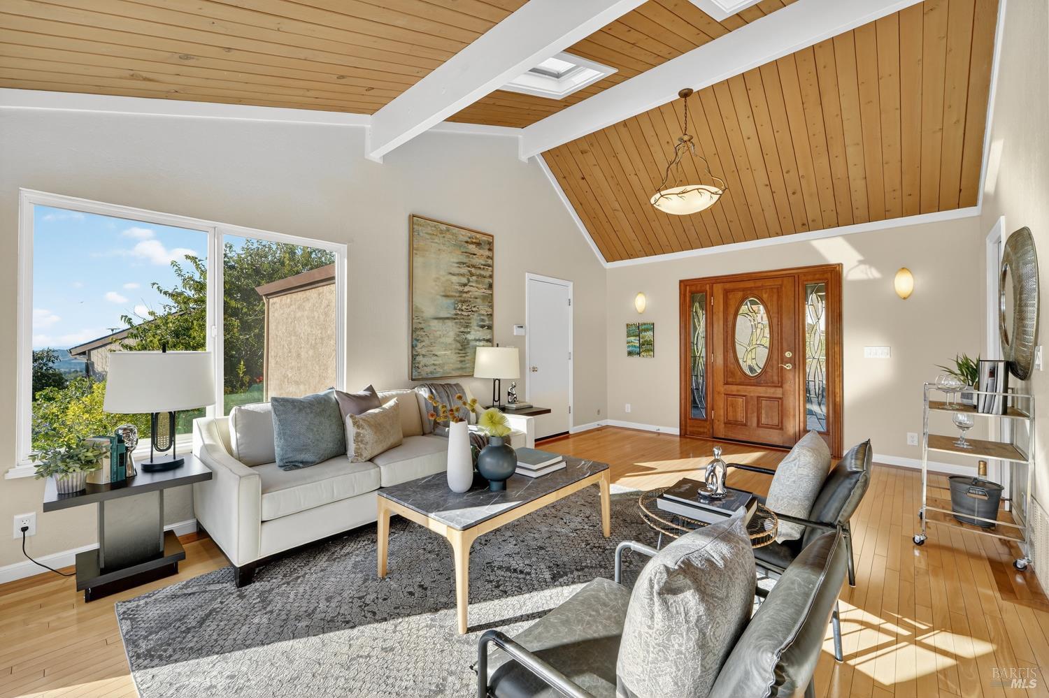 Welcome home to understated elegance in this open floorplan home filled with warm, natural light beaming through the large skylights, windows and sliders opening to expansive decks, views of the Strait and surrounding hills. Truly an entertainer's delight, the kitchen is situated so as to be able to interact with guests whether they are in the kitchen, family room or living room. The combo dining/family room with fireplace has a great room feel making it a perfect gathering space for family and friends. 5 bedrooms and 2.5 baths, offer possible multi-generational living, office/home work space, you name it. Don't miss this beautiful water-view home at an unbelievable price.
