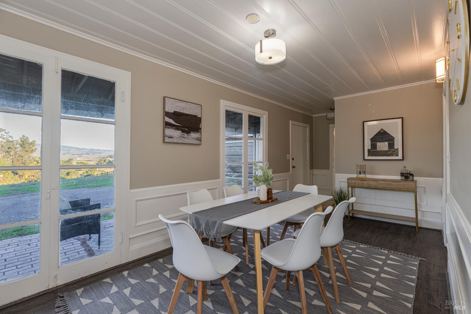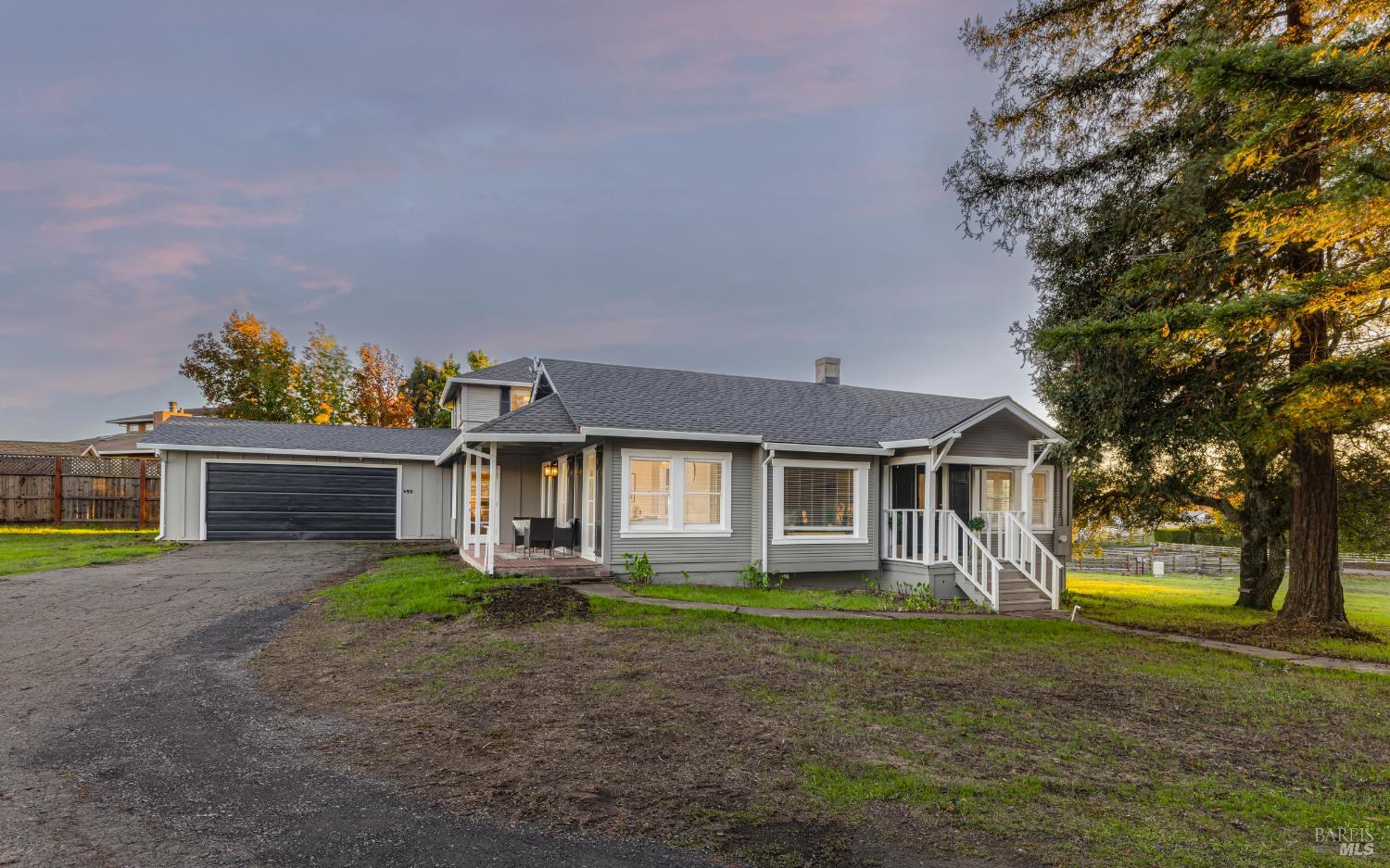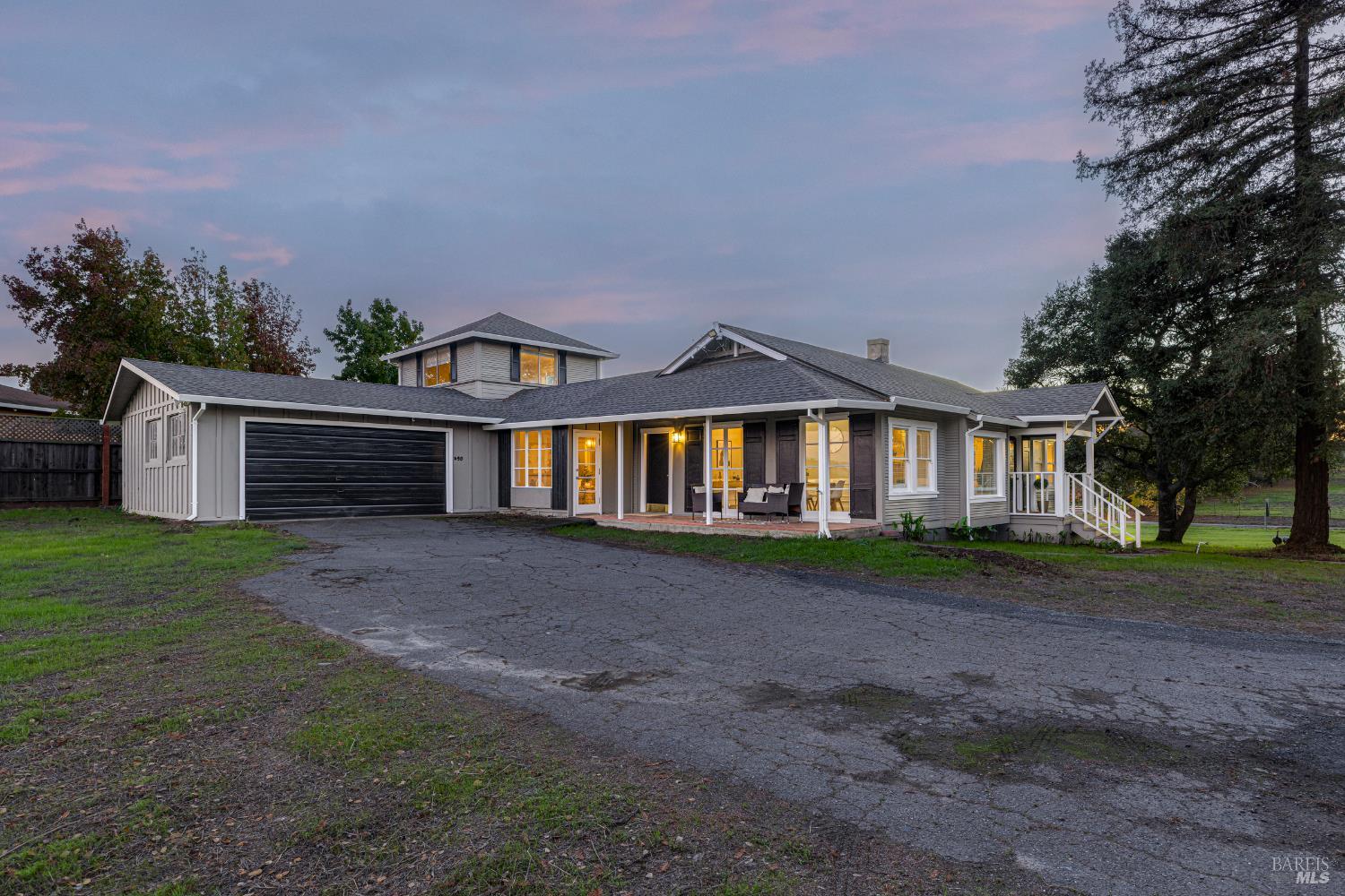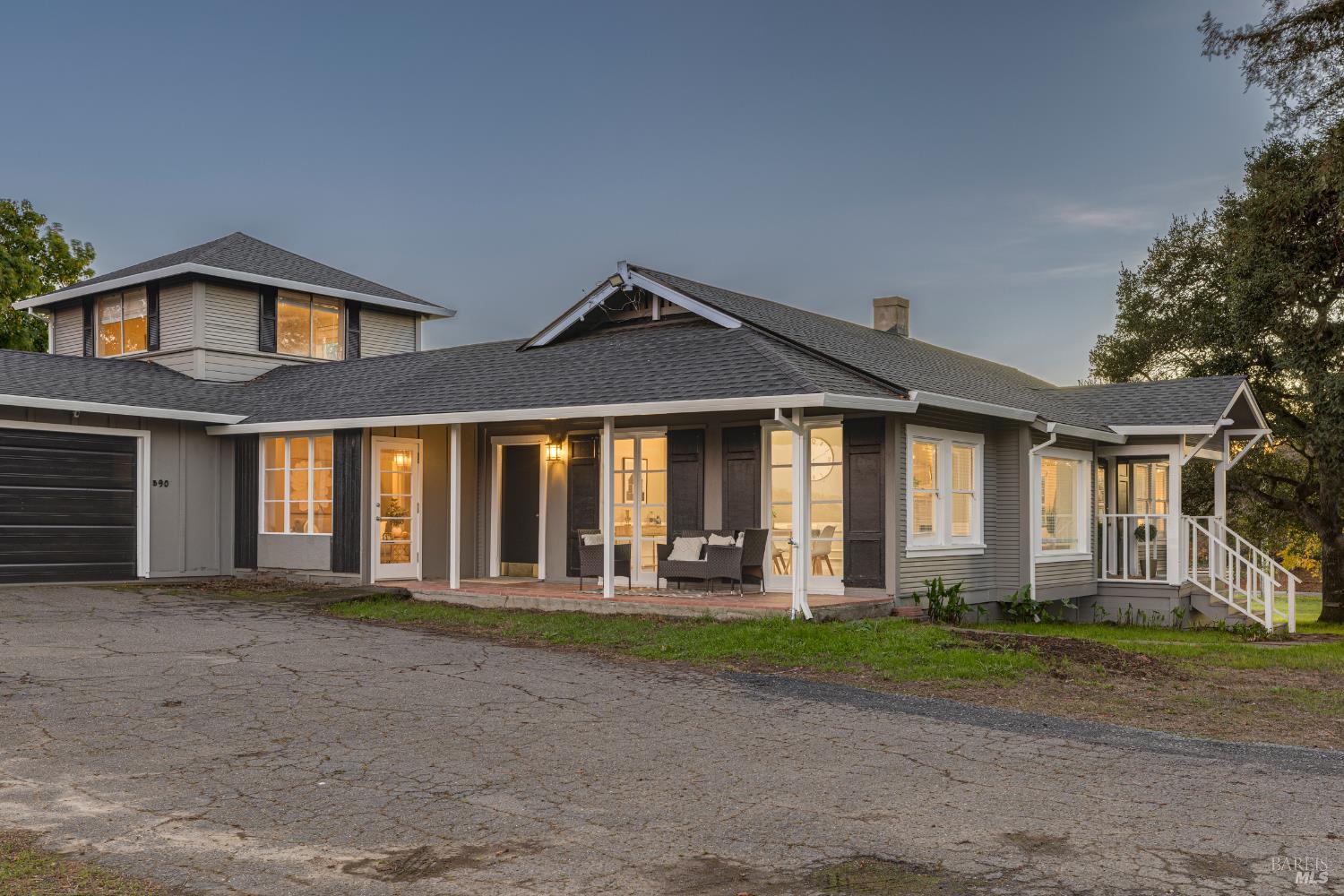 Welcome home to the charming story-book town of Penngrove! Enjoy country living in Sonoma County's world-renowned wine region w/incredible near panoramic views and a tree-lined driveway in this updated 1935 built Farmhouse (mostly single level) 3-bedroom, 2-bathroom home (only one room on upper level). This home is flooded w/natural light and features 1,887 square feet of living space on 1.21 acres (mostly flat & usable). Features include a newer roof and well, two covered porches, laminate floors, formal dining room w/custom wall, ceiling and window trim finishes, French doors, Living room w/front entry, fireplace, custom trim surrounding doors and windows and perimeter fencing. Two bedrooms are located on the main level at either side of the home with two remodeled bathrooms. The kitchen features an eat-in room surrounded by windows, a double-sink w/window, stainless-steel appliances, ceiling fan and plenty of cabinet space. The Family room includes custom built-ins, a ceiling fan, storage closet and access to the garage and exterior. The primary bedroom is located on the main level and features built-in shelves and a remodeled primary bathroom with a tiled shower over the bathtub. A spiral staircase leads to the only room upstairs with incredible views of the Sonoma mountains.