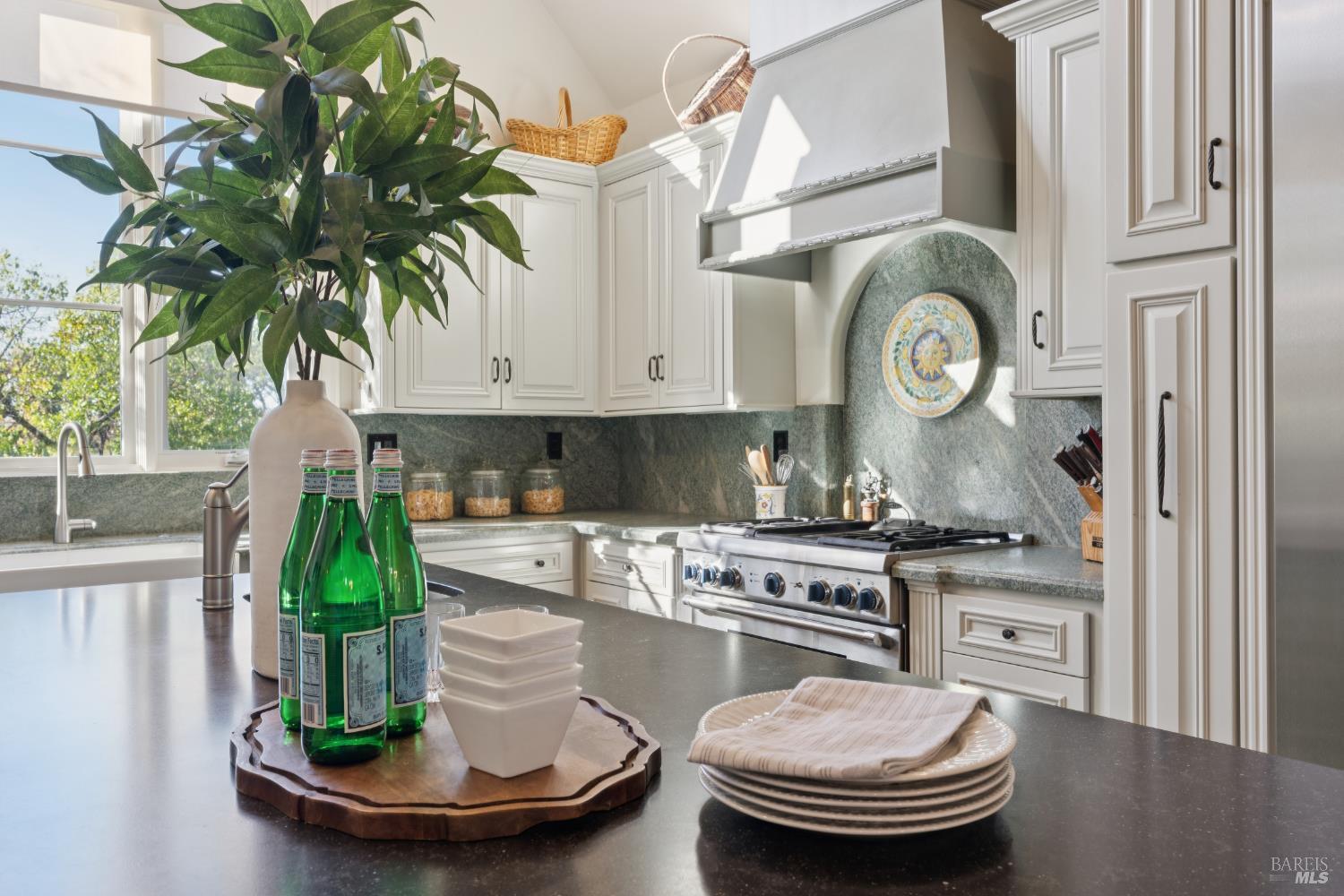 Behind gates and oriented to lake and vineyard vistas, this elegant estate pairs resort-style amenities with space to cultivate your own Wine Country lifestyle - think gardens, orchard, and room for animals - minutes from acclaimed wineries, dining, and luxury amenities. Inside, a chef's kitchen with large island and dual pantries opens to a vaulted dining room with fireplace. The living room's open-beam ceilings and dramatic fireplace frame wall - length accordion doors that blend indoors and out. Down a spiral stair, a wine cellar adds true Wine Country character. On the main floor, the primary wing offers a suite with fireplace, walk-in closet room, steam shower, soaking tub, plus a sunroom ideal as a gym or studio stepping out to the pool and hot tub. A main-floor office with full bath adds flexibility. Upstairs, two ensuite bedrooms take in hillside and vineyard views. Outdoors, enjoy a built-in BBQ kitchen, covered dining patio, bocce court, pool, hot tub, raised garden beds, and substantial orchard. Equestrian amenities include run-in shed, pasture, tack room with electricity and water, and access to nearby riding trails. Roughly 1hr from the Golden Gate, & 10min to Healdsburg square & the airport, your private Wine Country retreat offers every comfort close at hand.
