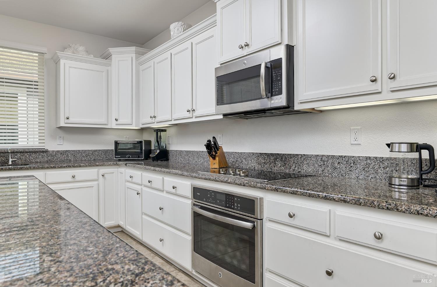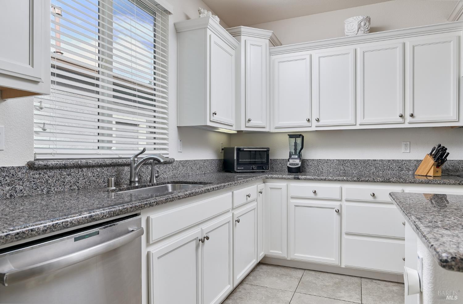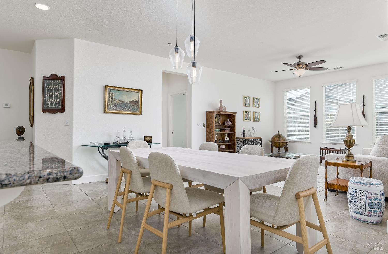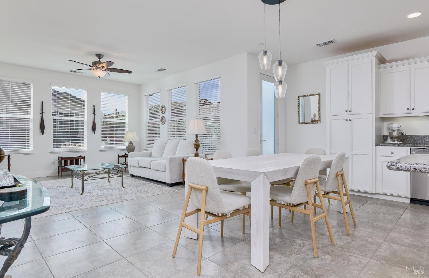 Dreaming of a White Christmas? It would look good in this nice bright Solana plan with light floor tile and a fully upgraded white kitchen! Enjoy an open kitchen to dining and living areas with lots of natural light and views of the tastefully designed rear yard. The kitchen features an abundance of upgraded cabinetry, large island for additional seating with quartz counters, stainless appliances and contemporary pendant lights finishing the look. This home has two bedrooms and two baths with a tech area/den and two car garage. You will appreciate the openness! The primary bedroom continues with a large picture bay window and ensuite bath with large closet. The yard is low maintenance with ample patio for entertaining. Washer and Dryer are included. Ceiling fans, and prepaid solar into 2035, which is a real benefit with rising energy bills. This plan has been a favorite at Trilogy at Rio Vista, a gated 55+ community with so many amenities like a restaurant and cafe, 2 clubhouses, tennis, pickle ball, indoor and outdoor pools, tech center, performance center and a newer health and wellness center and spa. The development is built around an 18-hole golf course with verdant vistas. This home is priced to sell so come see soon. HOA dues to not include golf play.