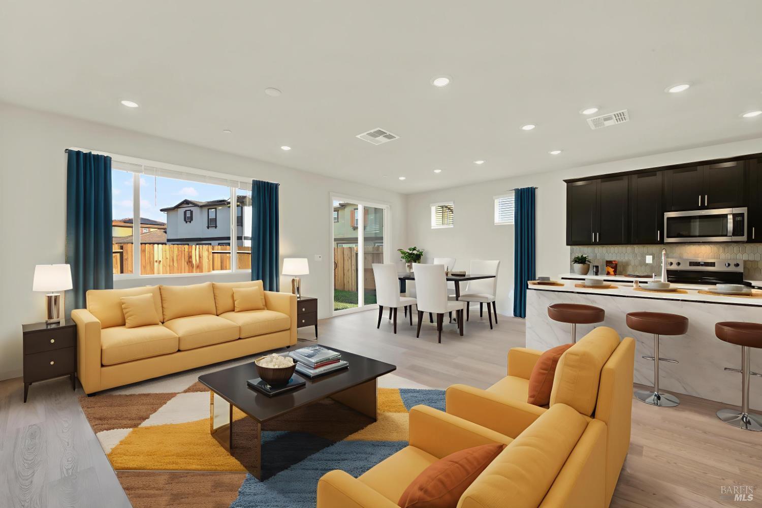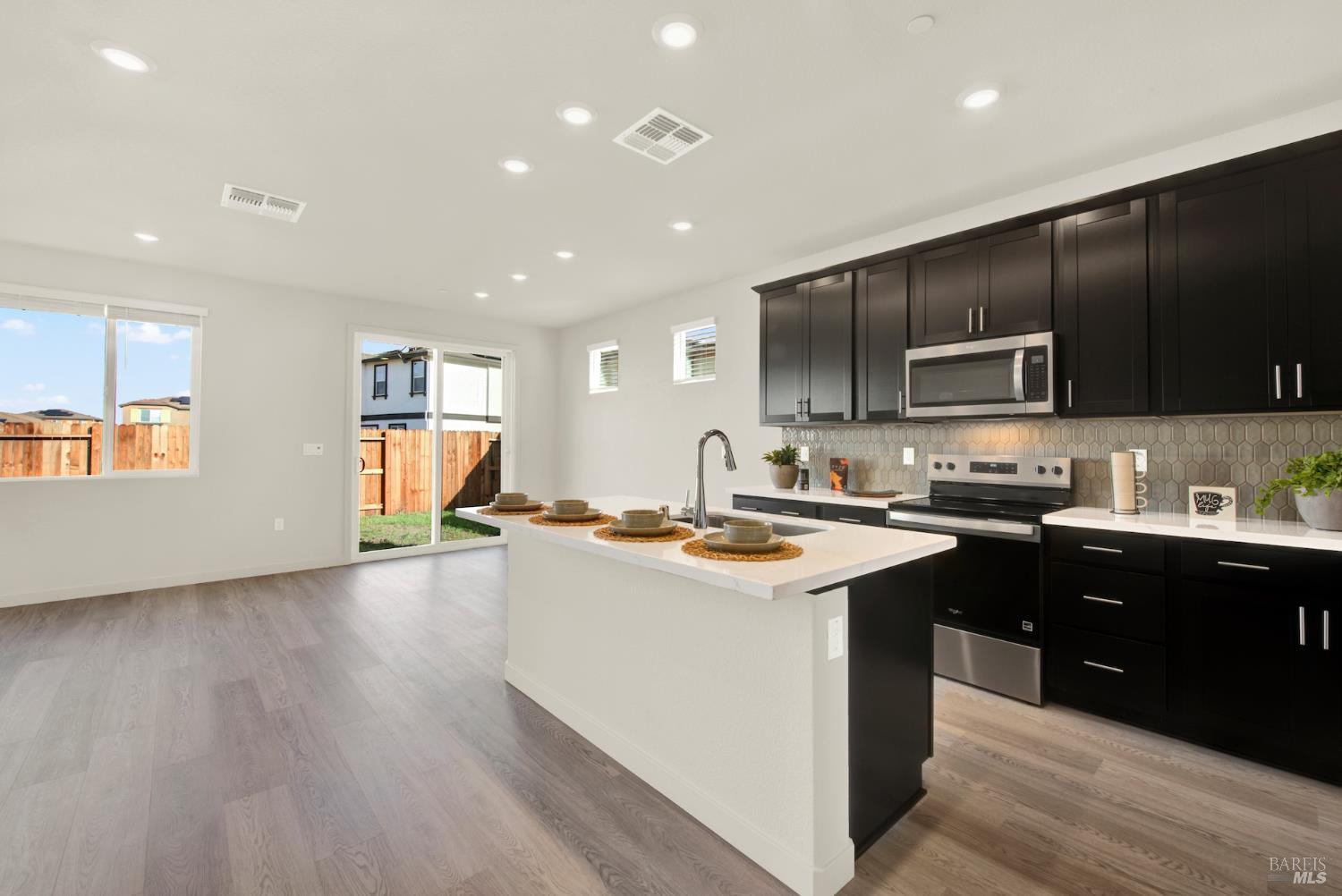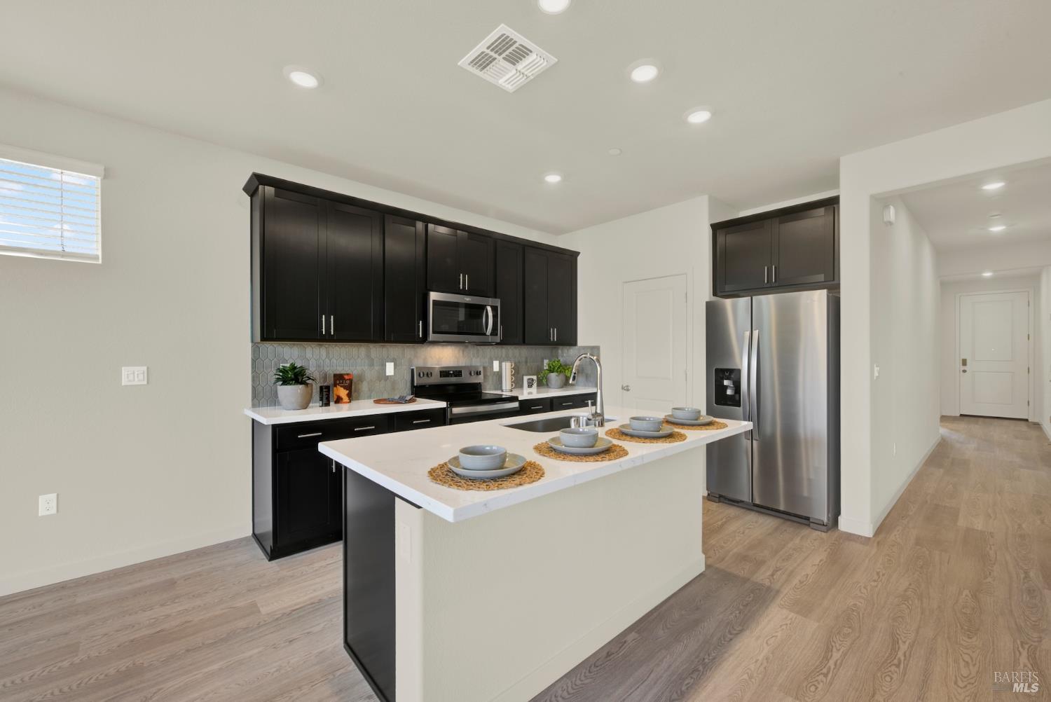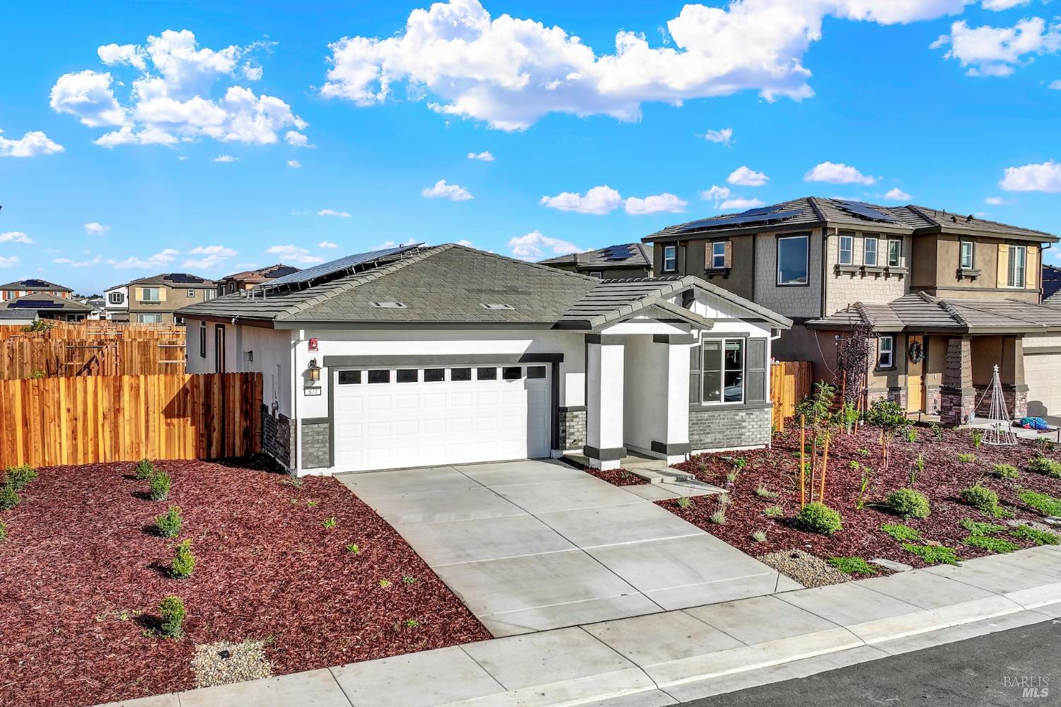 Discover a dreamy blend of comfort and style in this beautiful single-story, four-bedroom home. See the pretty LUSH package inside! The flexible floor plan allows you to create the ideal space for your lifestyle whether that's a private guest suite, a quiet home office, or a hobby room. Entertain with ease in the open dining area, then unwind in the spacious great room just off the kitchenperfect for everyday living and hosting gatherings. The kitchen truly steals the spotlight with its large center island, cabinetry, modern backsplash, and pantry closet. This home features a more private backyard because of the way the homes are situated behind. Located in Vacaville's desirable Tramore Village at Vanden Meadows, you'll enjoy quick access to top restaurants, shopping, recreation, and entertainment. Spend sunny afternoons at Magnolia Park or explore the nearby outlets for some retail therapy. Part of the Travis Unified School District and minutes from TAFB, CMF, and HWY 80, this location offers excellent convenience for commuters and families alike. Every Meritage home is thoughtfully designed with innovative, energy efficient features to help reduce utility costsso you can spend more on the things you love. For over 40 years, Meritage has believed in Life. Built.