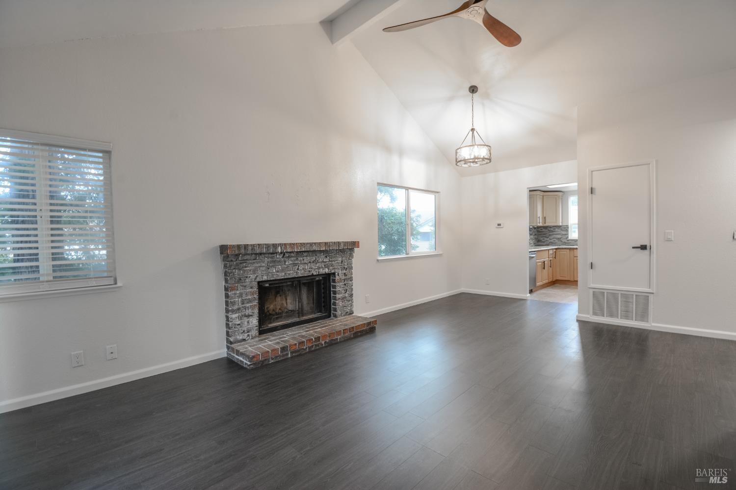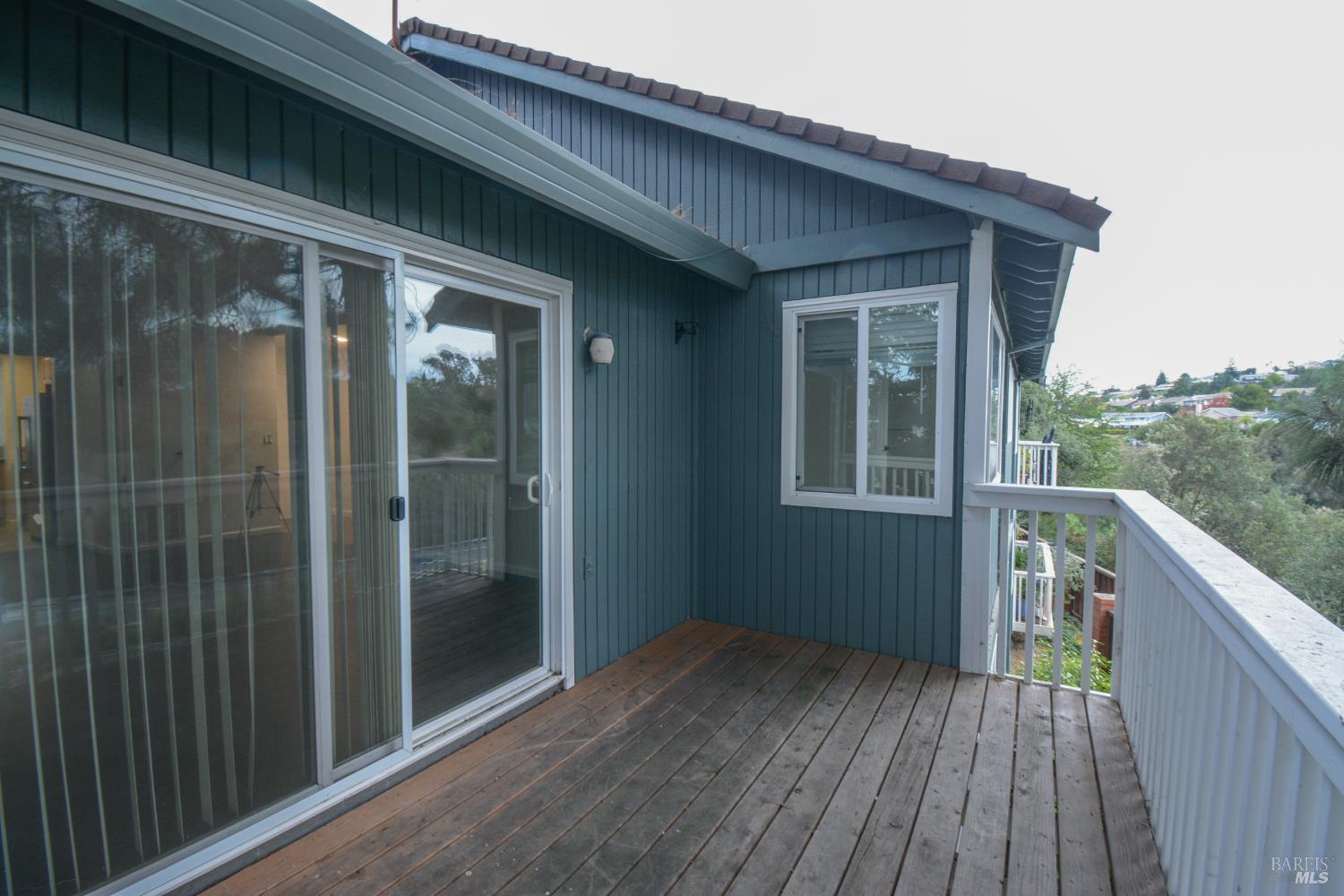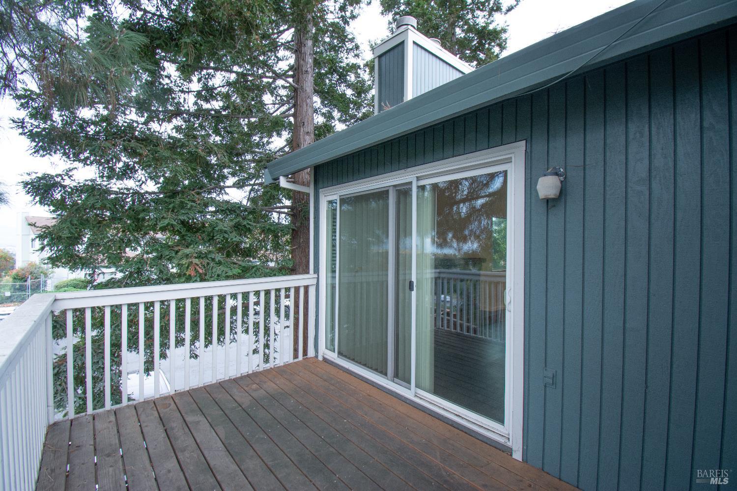 Top floor with soaring vaulted ceilings, corner unit with extra natural light and a deck with views of Suisun Bay! Step inside and you will be greeted by a light and bright open space. A wood burning fireplace is a nice focal point in the living room and adds a touch of warmth to the room. The kitchen features updated cabinets, granite counters, and stainless steel appliances with a refrigerator included! Bedrooms have been re-carpeted with luxury carpet and new pad. Washer and dryer hookups located inside the unit. Large, private deck for relaxing. The 1-car garage is conveniently located right in front of the home. Easy commute location, convenient to shopping and amenities. This home will not last!