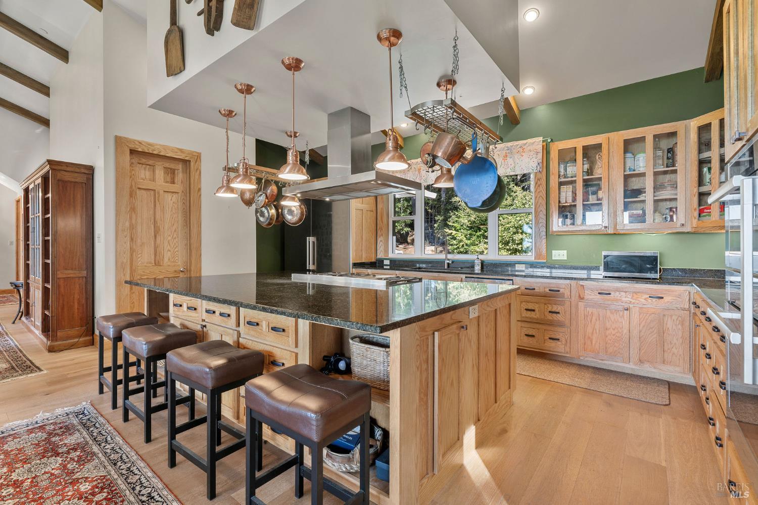 Exceptional 4-acre private estate offered for sale for the first time. The home, garage, studio, greenhouse and outdoor grilling kitchen was built between 2022-2024. Tucked away for privacy yet just minutes from downtown Gualala,the home enjoys ocean views over Cooks Beach. Inside,an open-concept layout connects the kitchen,dining and living areas. The chef's kitchen features Miele stainless appliances, including a steam oven and wine refrigerator and an oversized island ideal for gatherings. Expansive west-facing windows and glass doors fill the home with natural light and ocean views. The first floor also offers 2-bedrooms,1.5 bathrooms,laundry and pantry. Upstairs,a primary suite with bath and office. Oak doors, trim and beautiful wood flooring highlight expert craftsmanship. There is a solar array with battery backup for energy efficiency. Adjacent to the main house,a detached studio provides flexible space for art,fitness or work. Next to it,the greenhouse constructed of stone,glass & concrete invites year-round gardening. Outdoors,a custom grilling kitchen features granite countertops,stacked-stone walls, and a grill with copper hood imported from Argentina-perfect for coastal gatherings under the open sky. Come experience Coastal Mendocino living at its finest.