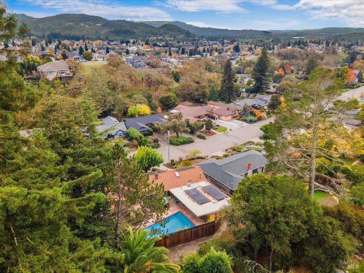 Located in Northeast Santa Rosa's desirable St. Francis neighborhood, this single-story residence is a private retreat designed for effortless living and entertaining. The sprawling 2,450 sq. ft. floor plan connects generous living spaces to an incredible backyard sanctuary with a distinct Palm Springs feel. Enhanced by an extra privacy fence, this outdoor oasis features multiple patios for dining and/or lounging. The sparkling pool, complete with a new filter, is heated by both solar and a heat pump for year-round enjoyment. The backyard space also offers dedicated gardening areas and a versatile side yard, perfect for a bocce court, hobby space, or extra storage. Inside, the home provides a comfortable and functional layout with three spacious bedrooms and three full baths. Recent major upgrades provide true peace of mind, including a newer, high efficiency HVAC system and ducting to ensure comfort in every season. Enjoy the paid for solar system installed just a few years ago! Situated on a sprawling quarter acre lot, the property provides ample room to breathe. This home presents a unique opportunity, blending critical system updates with a fantastic canvas to personalize and make your own.