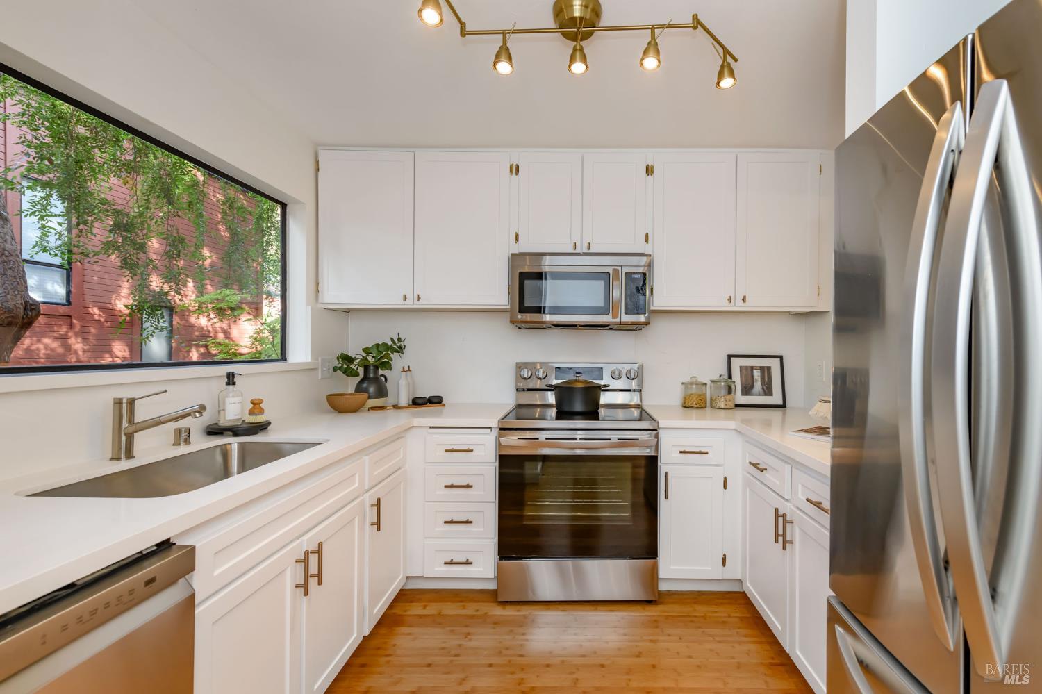Welcome to your dream home! This stunning 2-bedroom, 1.5-bath end-unit townhome at Cypress Creek is an absolute showstopper. Near vibrant downtown Novato, this light-filled gem features upgrades throughout. The updated kitchen features gorgeous quartz countertops and gleaming stainless steel appliances. Fresh carpeting adds comfort, while the spectacular en-suite bathroom is magazine-worthy perfection! The open floor plan flows seamlessly from the vaulted living room with fireplace to the dining area and kitchen. The ground floor also boasts a stylish half bath, full-size washer and dryer, and a private patio oasis. Storage abounds with a kitchen pantry, extra closets, expansive carport storage, outdoor closet, and shed. Upstairs, two spacious bedrooms feature walk-in closets. The primary suite offers a stunning en-suite bathroom and private balcony retreat. This intimate community offers park-like grounds, hot tub, and sauna. Stroll to downtown Novato's shops, restaurants, library, and trails. Move-in ready and meticulously maintained, this exceptional end unit delivers single-family privacy with low-maintenance townhome living!