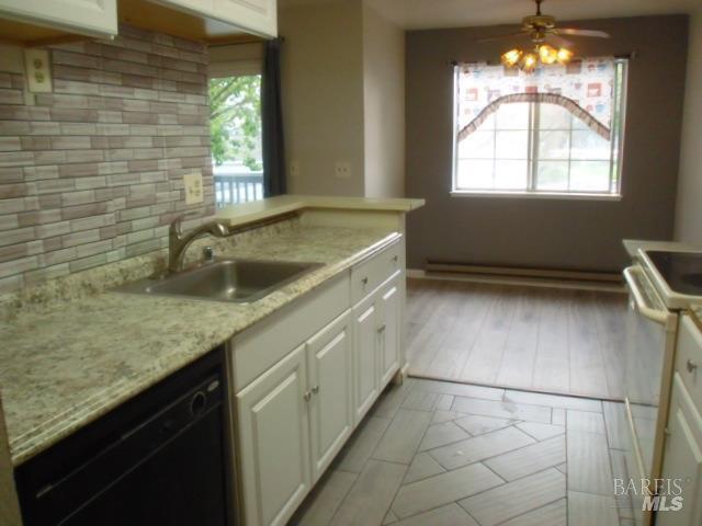 Waterfront location condo in gated community. Corner sunny upper unit with balcony. Has laundry area with washer and dryer. Eating area off kitchen. Sliding door to deck off living room. Spacious walk in closet in bedroom. Unit comes with covered parking space and exterior storage room. Complex has inground pool. EZ freeway access.