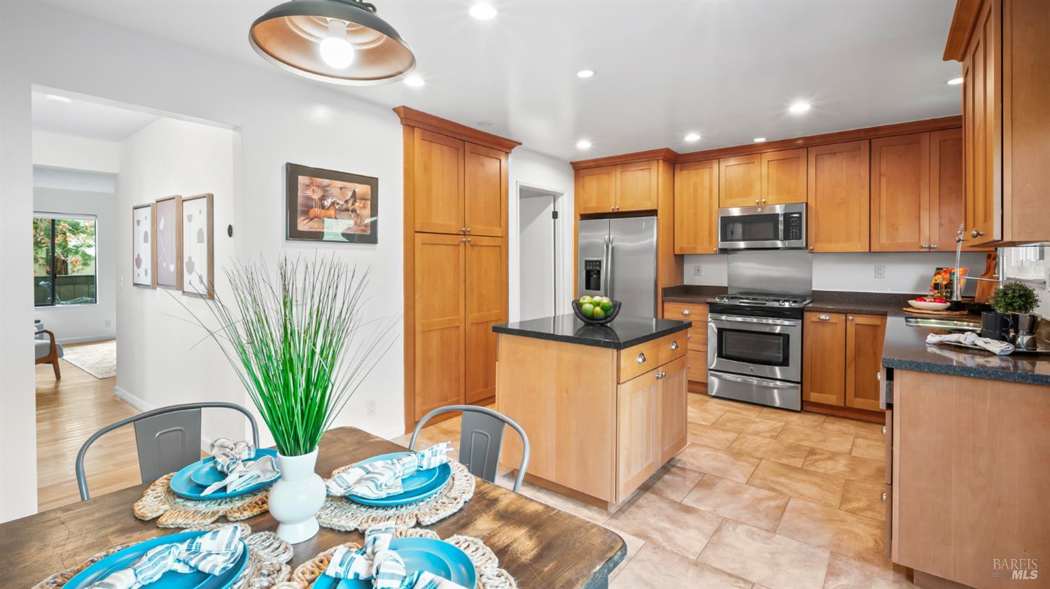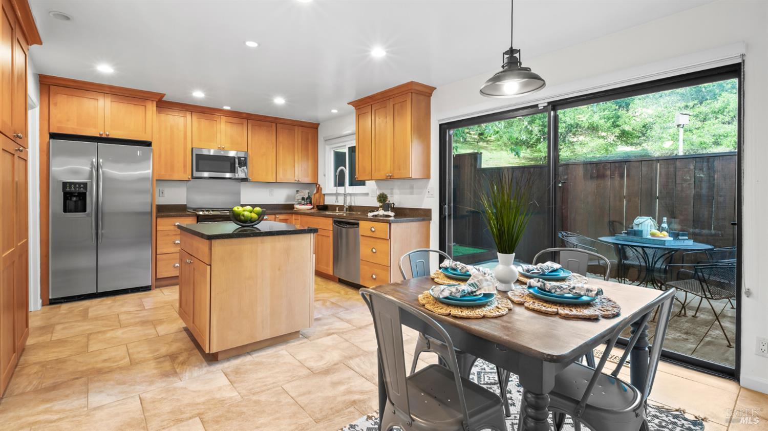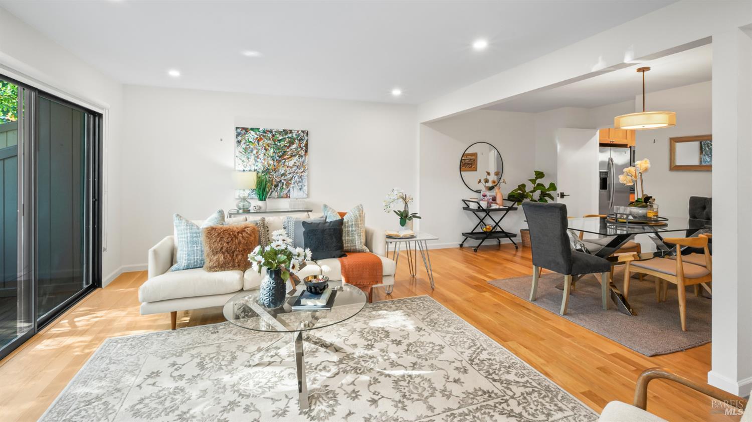 Step inside this exceptional end unit home nestled in desirable Cheda Knolls of Novato. Discover a bright, inviting space featuring three spacious bedrooms and two and a half bathrooms. The attached two-car garage offers convenience. This home welcomes you at entry with elegant tile entry floors and stairs leading up to a generous living room complete with a cozy fireplace. The formal dining room seamlessly connects to the living room and opens onto a front deck, perfect for enjoying views of the peaceful cul-de-sac and beyond. The thoughtfully designed kitchen boasts ample cabinetry, a central island, stainless steel appliances, and a sunny breakfast nook. Sliding glass doors lead to a tiled patio and turf area, ideal for year-round outdoor living and entertaining, backs up to open space. Upstairs, the primary suite features a walk-in closet and a beautifully updated ensuite bathroom. Two additional bedrooms and a stylish hall bathroom with modern tilework complete the upper level. Recent upgrades include a newer furnace and air conditioning system with updated ductwork, a newer water heater, dual-pane windows and sliding doors, a three-stage whole-house water filtration system, and a multi-use outlet for electric vehicle charging in the garage. A definite Must See!