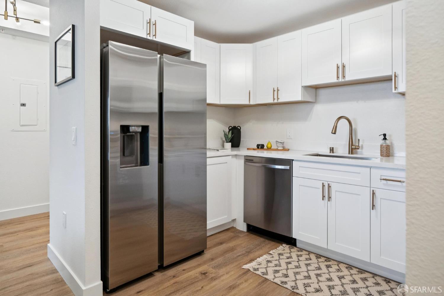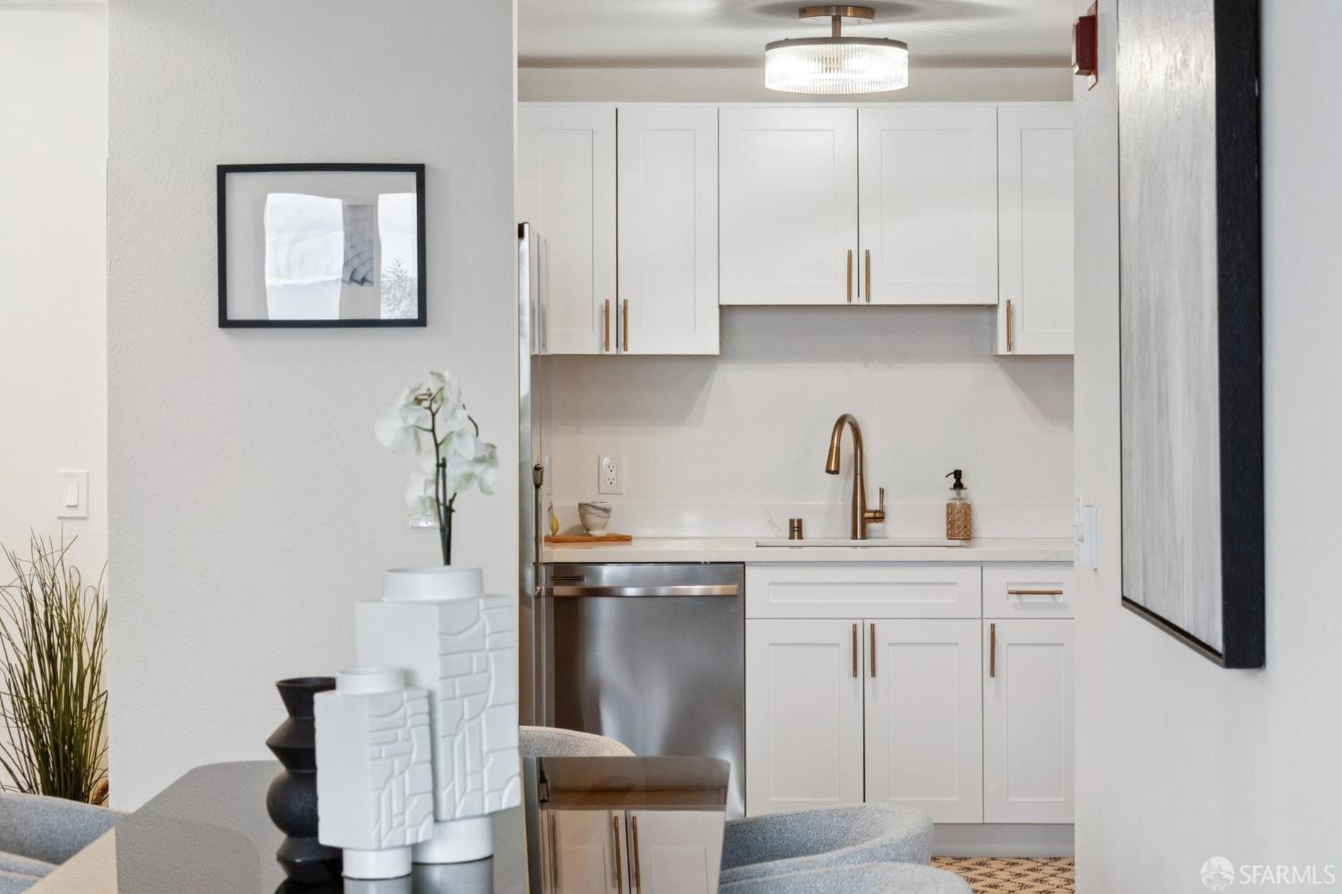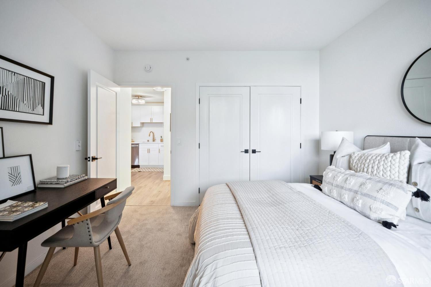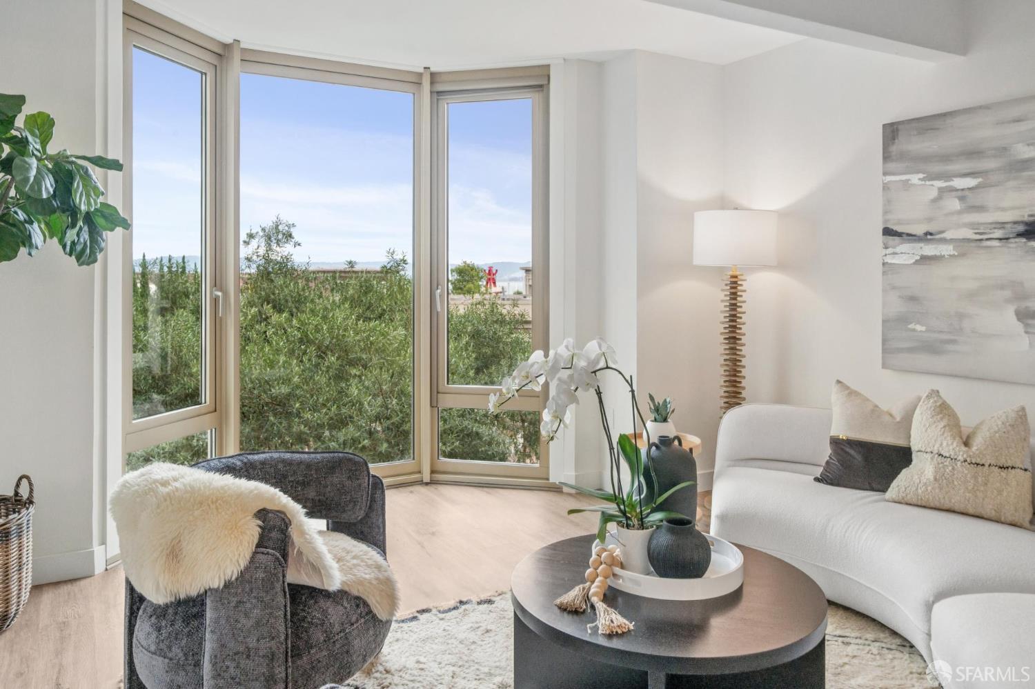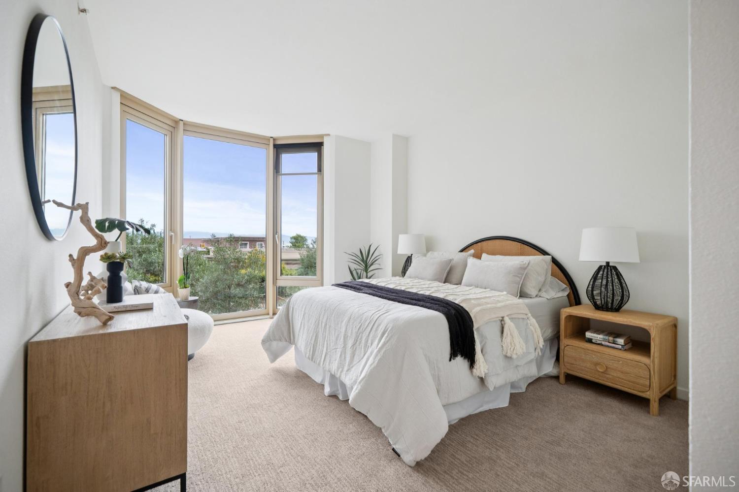 Welcome to luxurious urban living at 88 King Street, where a sleek, modern design awaits. This stylish condominium has been recently renovated to perfection, featuring upgrades including new flooring, kitchen cabinets, countertops, and appliances, ensuring a seamless blend of functionality and elegance. The residence boasts two spacious bedrooms, two elegantly appointed bathrooms, and an in-unit washer/dryer. The primary suite is a sanctuary of its own, complete with a walk-in closet offering ample storage and convenience. The unit's bay windows and private deck off the living space provide peek views of the bay, creating a serene backdrop for your daily life. This full-service complex is rich with amenities, including a barbecue area, common roof deck, and a convenient business center. For the fitness-minded, enjoy the pool, gym, and sauna. Commuting is a breeze with easy access to I-280 and the Bay Bridge. Sports enthusiasts will love being so close to Giants and Warriors games. Renowned dining and UCSF are within reach. The Ferry Building Farmers Market and grocery stores are part of the community, along with a dog park, kids park, and the Yacht Club right across the street. Experience the ultimate in city living at 88 King Streetwhere elegance meets unmatched convenience.
