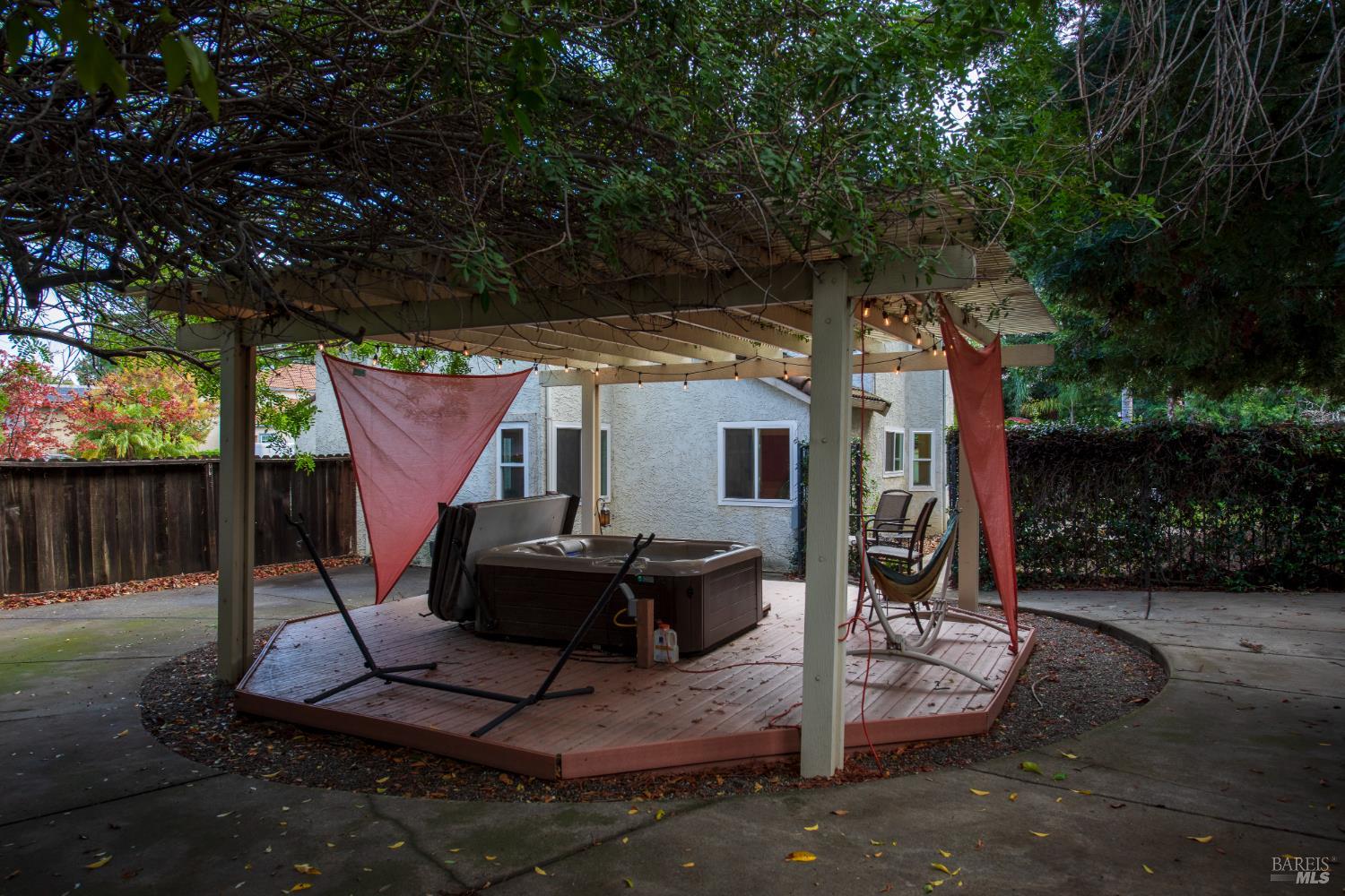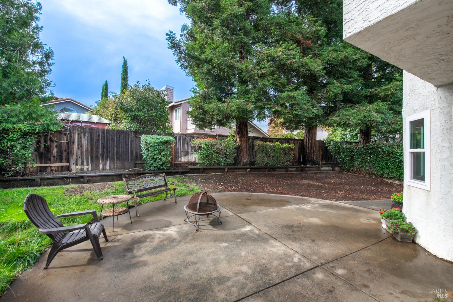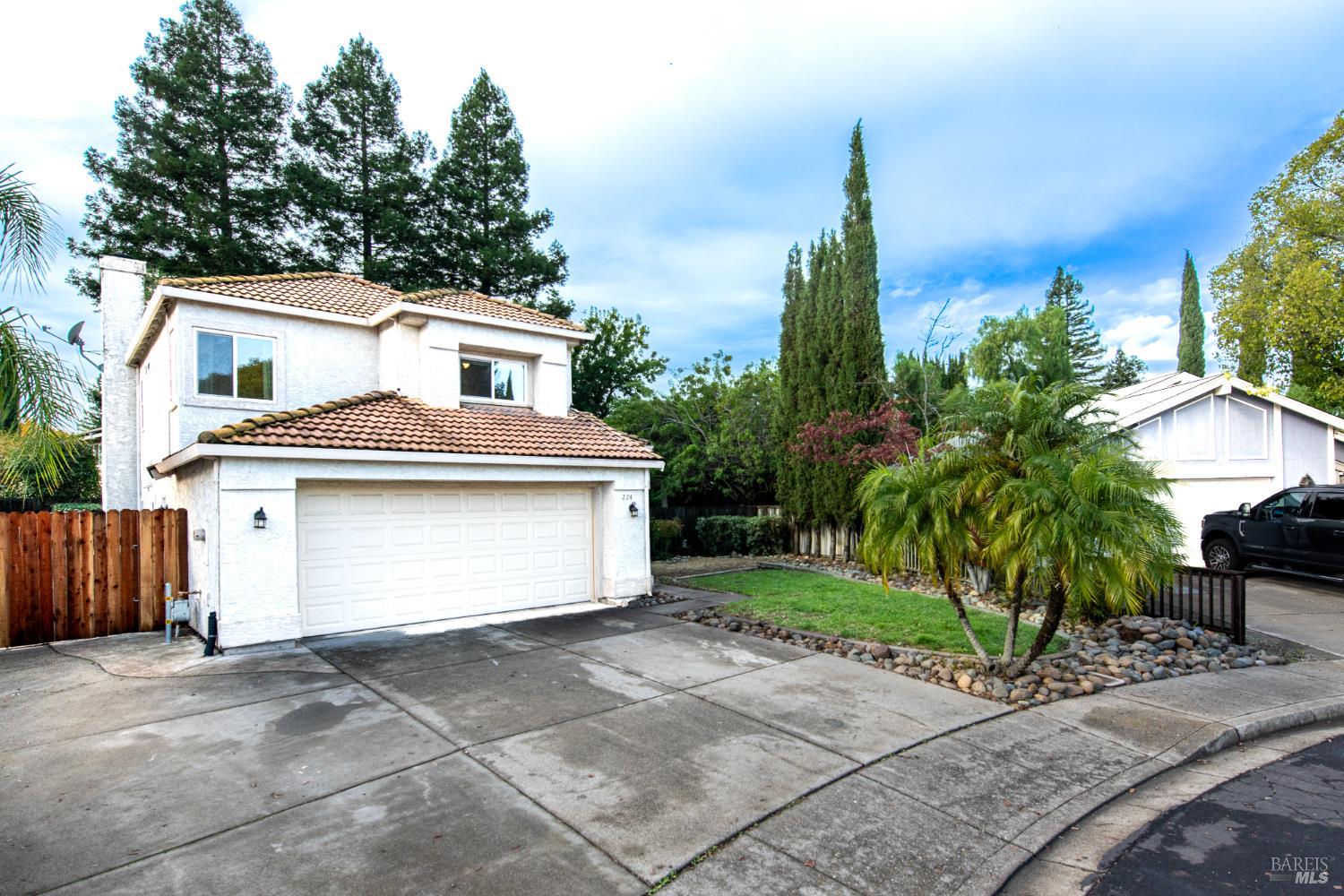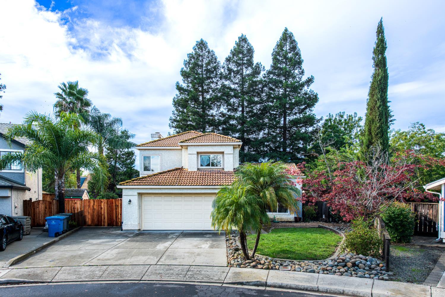 Beautifully Updated AND Ideally Located, this 3-bedroom, 2.5-bath, 1,725 sq ft home sits on 0.16 acre in a peaceful cul-de-sac around the corner from Woodstock Cir Park & Playground. Recent improvements incl. fresh interior paint in Origami White and Sealskin accent walls, new baseboards, oak laminate flooring on the main level, upgraded interior doors, refreshed bathrooms, updated lighting, and a newly refinished kitchen with painted cabinets and newer Samsung appliances. Newer carpet upstairs! All dual-pane windows, sliders, & exterior doors were replaced in 2022-2023 w/a transferable 20-year warranty. Roof repairs completed. This Pie-Shaped lot offers two spacious backyard areas perfect for entertaining on both sides! There's a composite deck, metal pergola, established redwoods & palms! Dog run! Concrete pad on front & back side of double gate for RV, car, boat, etc. Refrigerator, washer, dryer, 5 yr old hot tub, & shed all convey. HOA is just $20/month for park/playground upkeep. Up the street are the famous Vacaville Factory Store Outlets! Enjoy downtown Vacaville happenings, sports facilities, schools, restaurants, retail, Kaiser, NorthBay. Minutes to Hwy 80/12/113 & Travis AFB. Perfectly situated btwn San Francisco & Sacramento for easy commuting & an ideal lifestyle!
