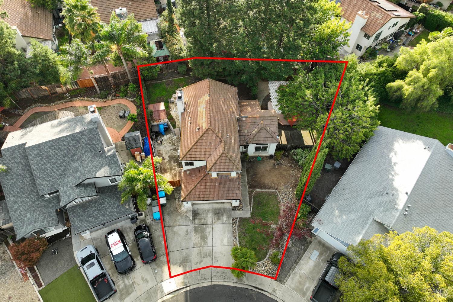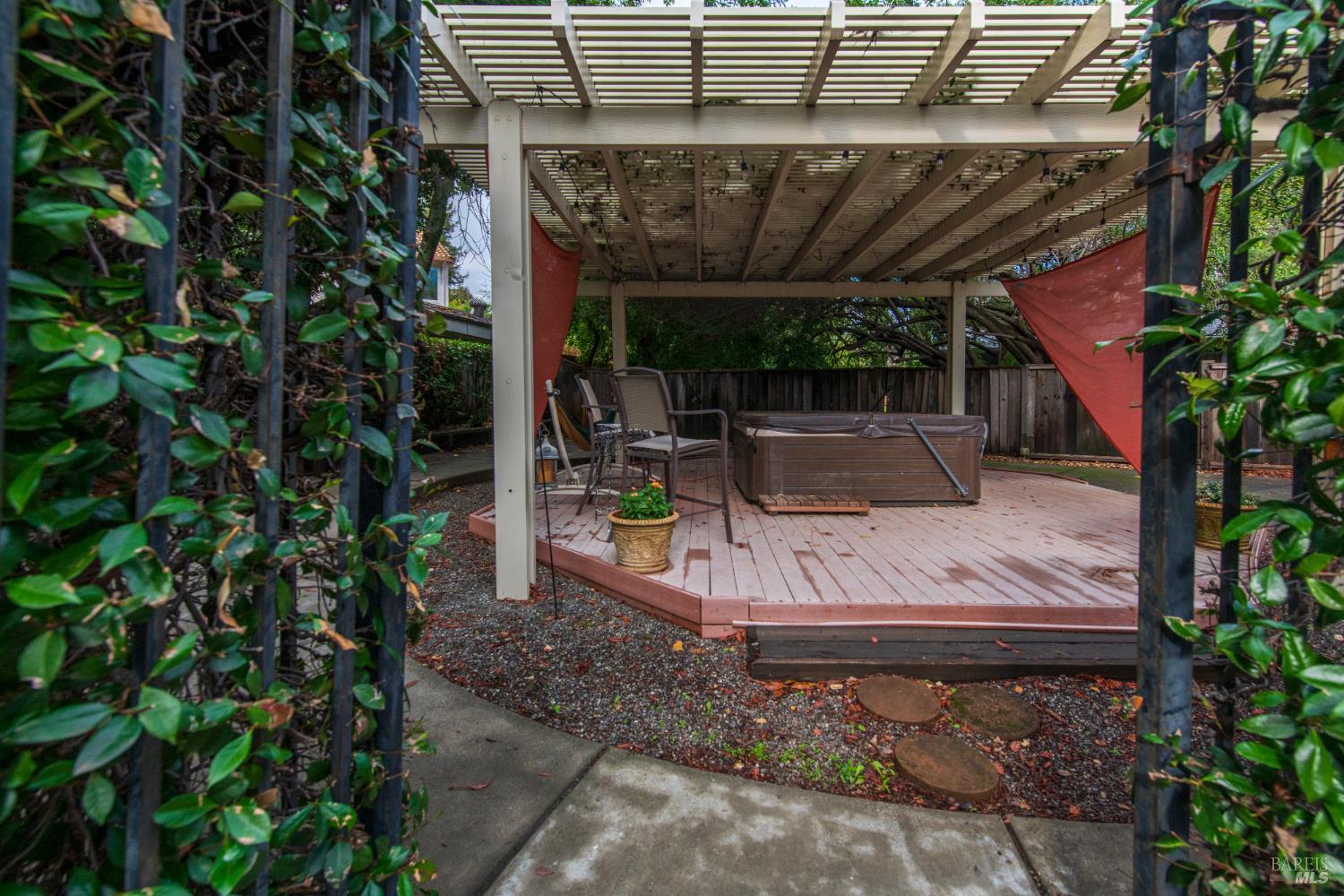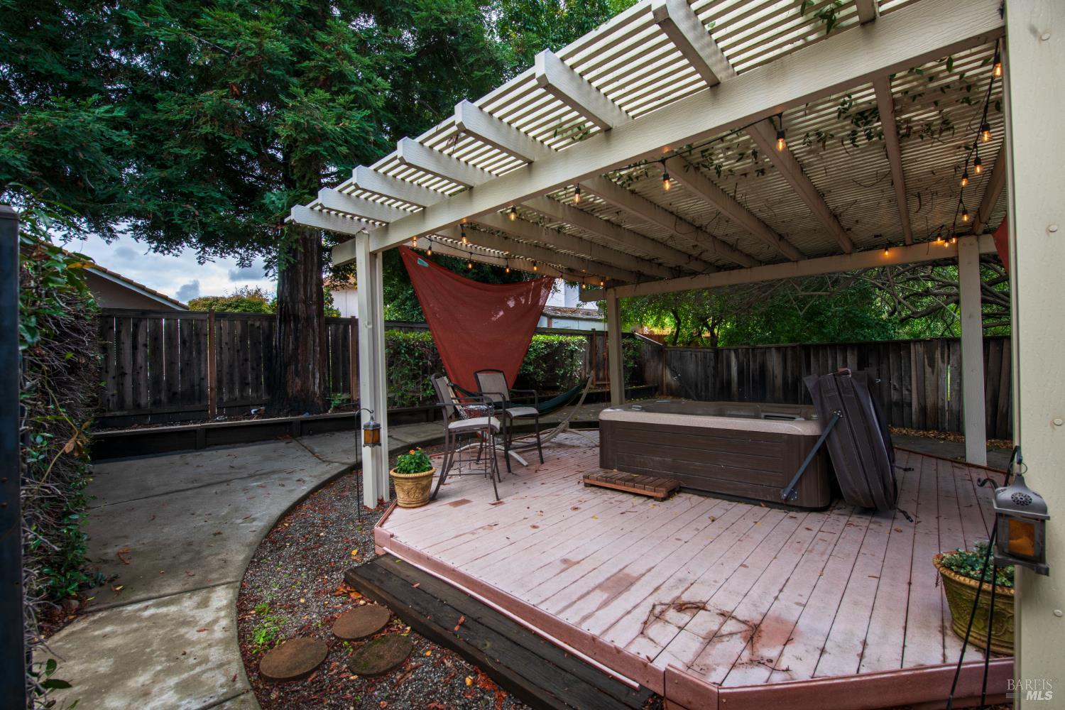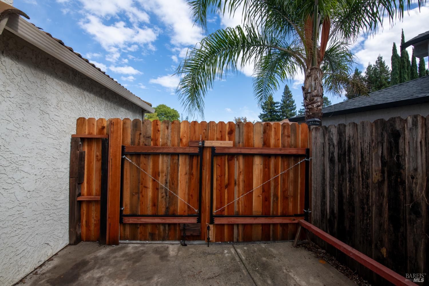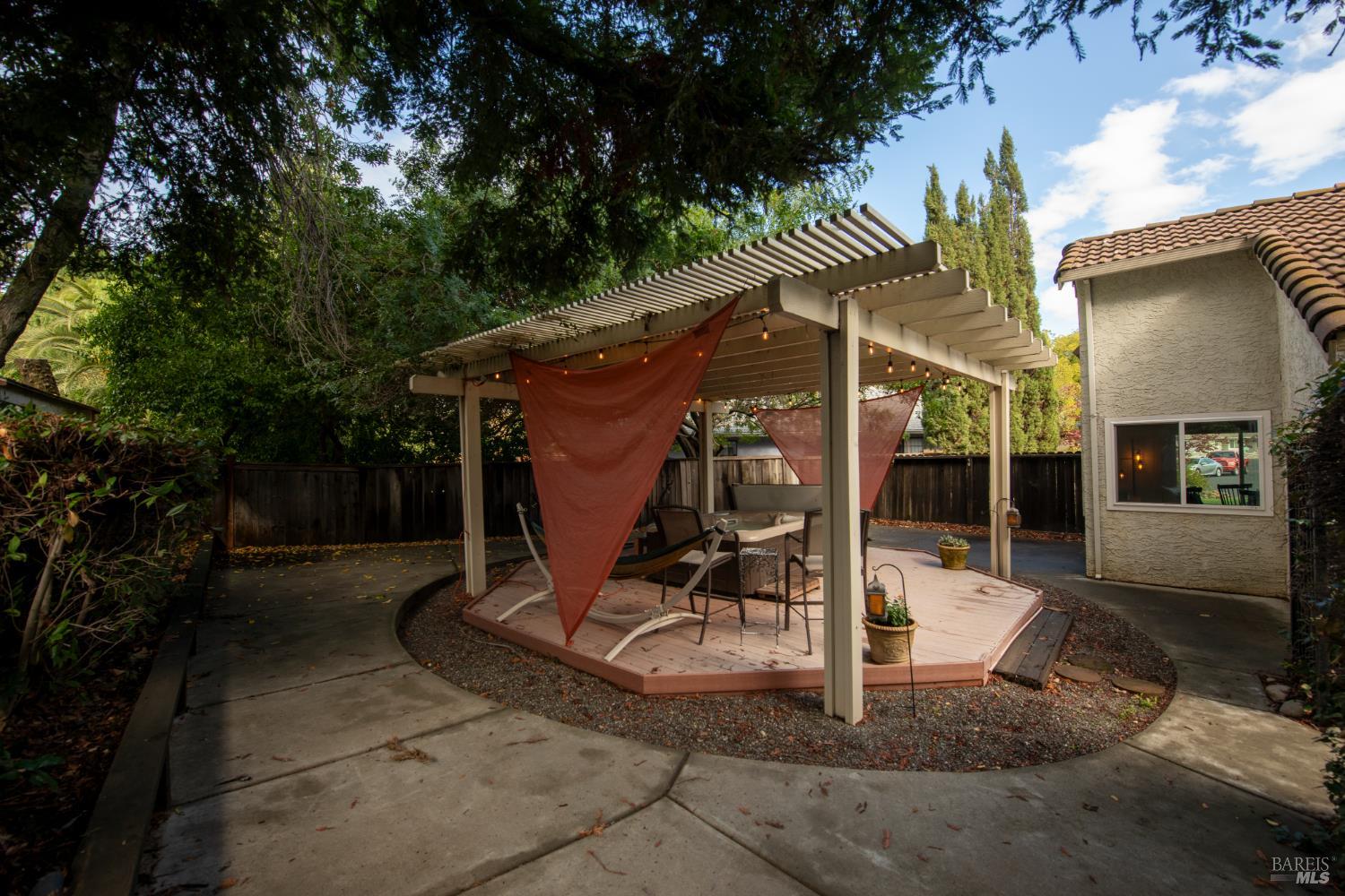 Beautifully Updated AND Ideally Located, this 3-bedroom, 2.5-bath, 1,725 sq ft home sits on 0.16 acre in a peaceful cul-de-sac around the corner from Woodstock Cir Park & Playground. Recent improvements incl. fresh interior paint in Origami White and Sealskin accent walls, new baseboards, oak laminate flooring on the main level, upgraded interior doors, refreshed bathrooms, updated lighting, and a newly refinished kitchen with painted cabinets and newer Samsung appliances. Newer carpet upstairs! All dual-pane windows, sliders, & exterior doors were replaced in 2022-2023 w/a transferable 20-year warranty. Roof repairs completed. This Pie-Shaped lot offers two spacious backyard areas perfect for entertaining on both sides! There's a composite deck, metal pergola, established redwoods & palms! Dog run! Concrete pad on front & back side of double gate for RV, car, boat, etc. Refrigerator, washer, dryer, 5 yr old hot tub, & shed all convey. HOA is just $20/month for park/playground upkeep. Up the street are the famous Vacaville Factory Store Outlets! Enjoy downtown Vacaville happenings, sports facilities, schools, restaurants, retail, Kaiser, NorthBay. Minutes to Hwy 80/12/113 & Travis AFB. Perfectly situated btwn San Francisco & Sacramento for easy commuting & an ideal lifestyle!