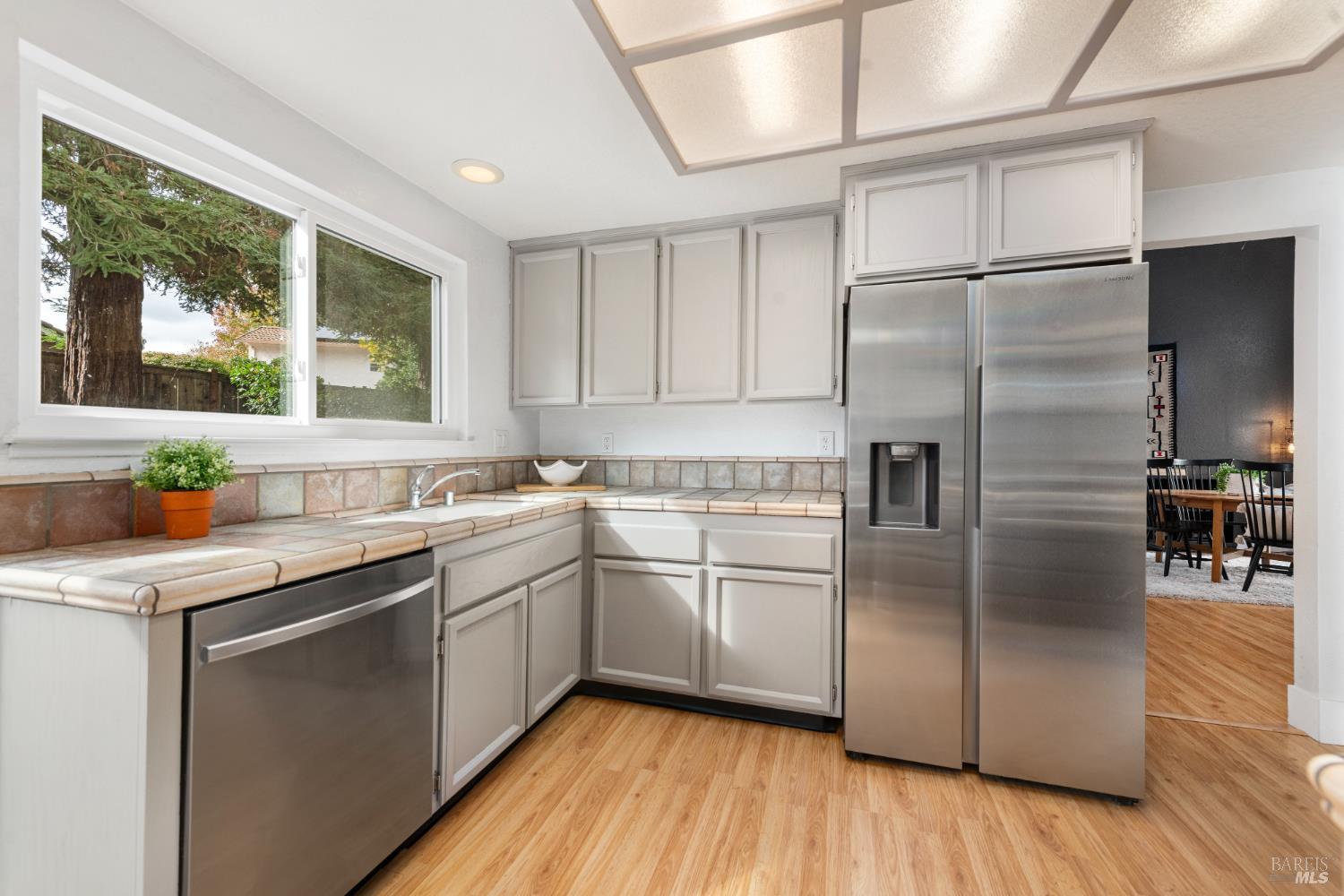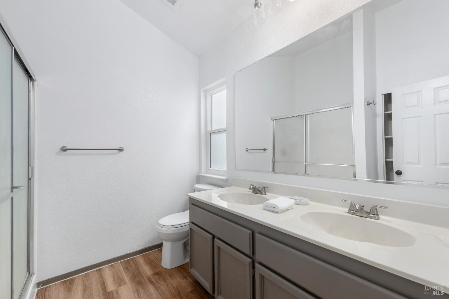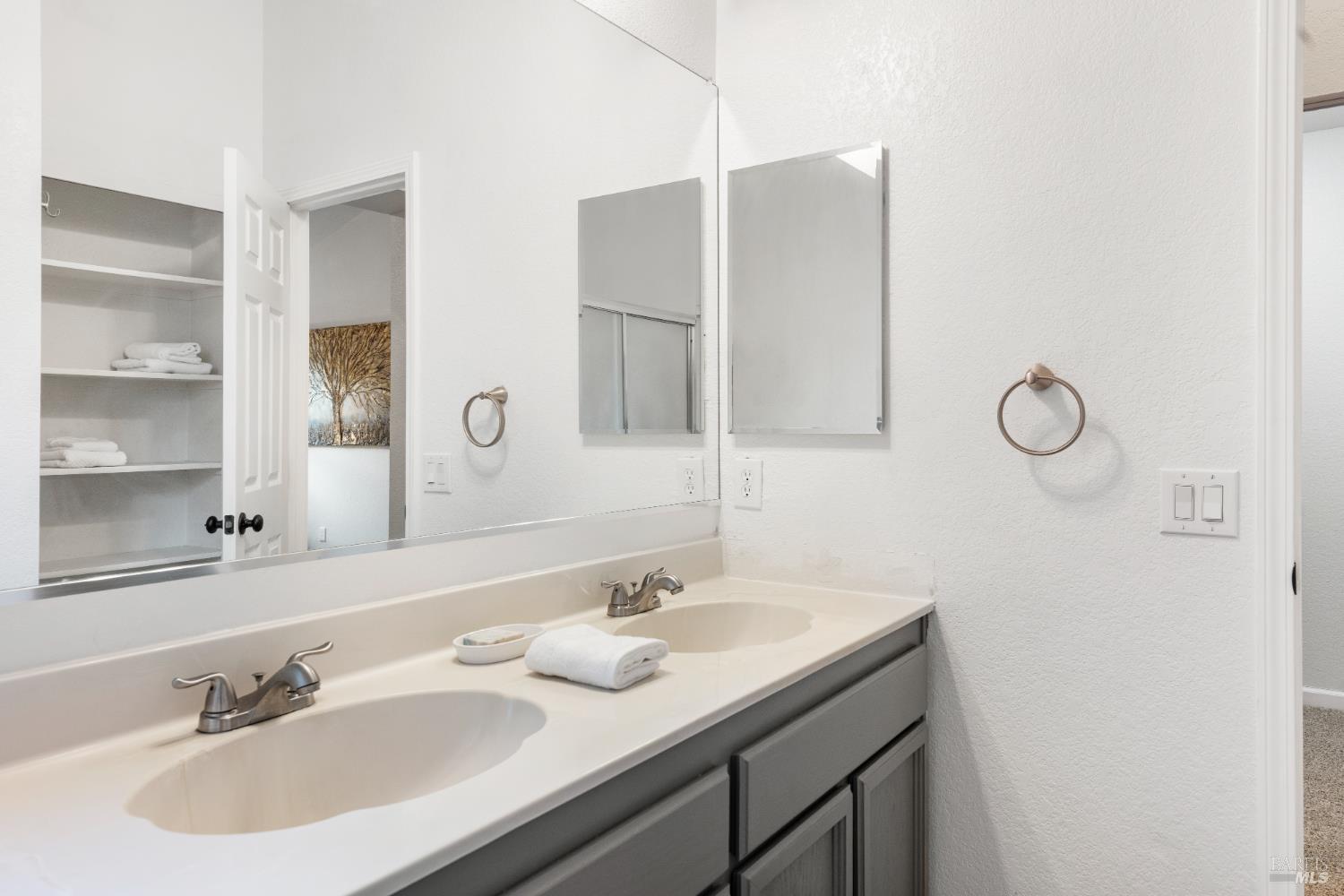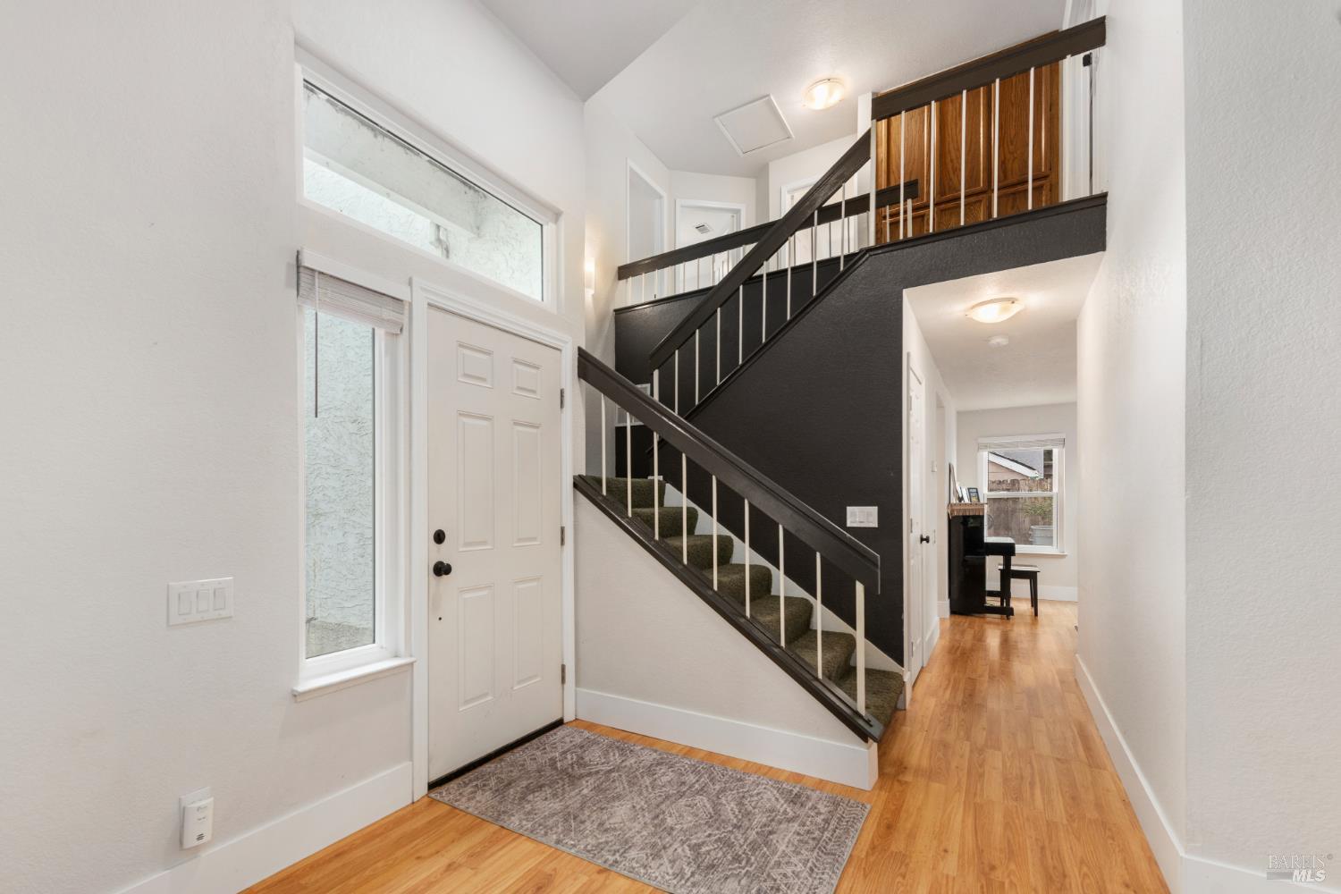 Beautifully Updated AND Ideally Located, this 3-bedroom, 2.5-bath, 1,725 sq ft home sits on 0.16 acre in a peaceful cul-de-sac around the corner from Woodstock Cir Park & Playground. Recent improvements incl. fresh interior paint in Origami White and Sealskin accent walls, new baseboards, oak laminate flooring on the main level, upgraded interior doors, refreshed bathrooms, updated lighting, and a newly refinished kitchen with painted cabinets and newer Samsung appliances. Newer carpet upstairs! All dual-pane windows, sliders, & exterior doors were replaced in 2022-2023 w/a transferable 20-year warranty. Roof repairs completed. This Pie-Shaped lot offers two spacious backyard areas perfect for entertaining on both sides! There's a composite deck, metal pergola, established redwoods & palms! Dog run! Concrete pad on front & back side of double gate for RV, car, boat, etc. Refrigerator, washer, dryer, 5 yr old hot tub, & shed all convey. HOA is just $20/month for park/playground upkeep. Up the street are the famous Vacaville Factory Store Outlets! Enjoy downtown Vacaville happenings, sports facilities, schools, restaurants, retail, Kaiser, NorthBay. Minutes to Hwy 80/12/113 & Travis AFB. Perfectly situated btwn San Francisco & Sacramento for easy commuting & an ideal lifestyle!