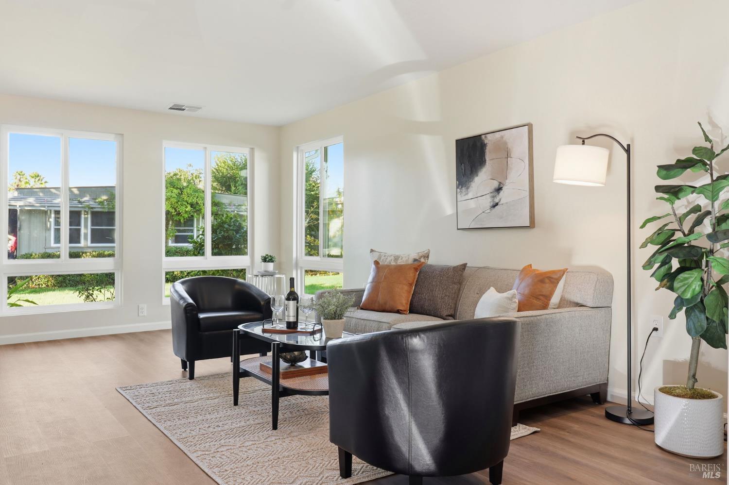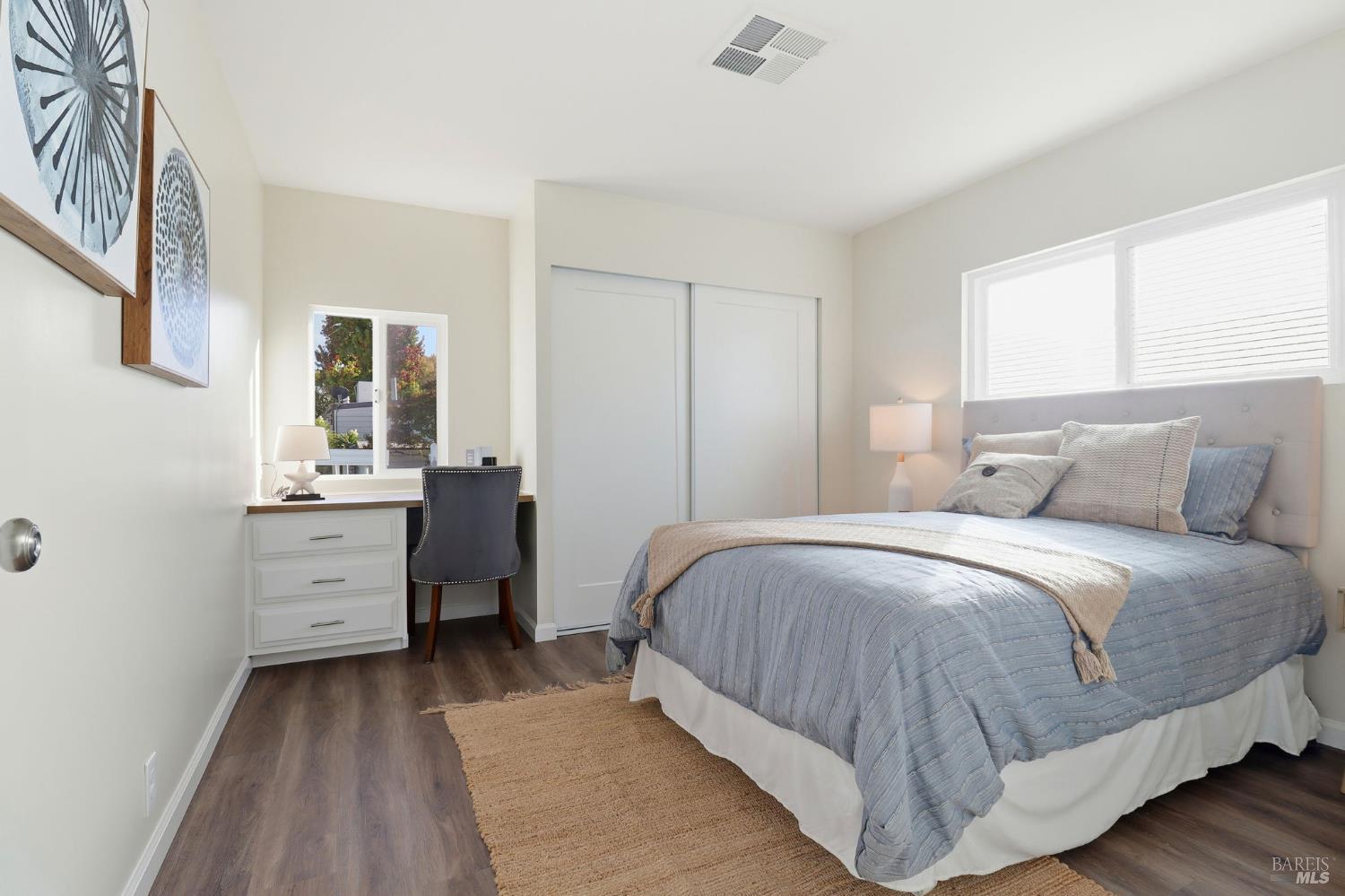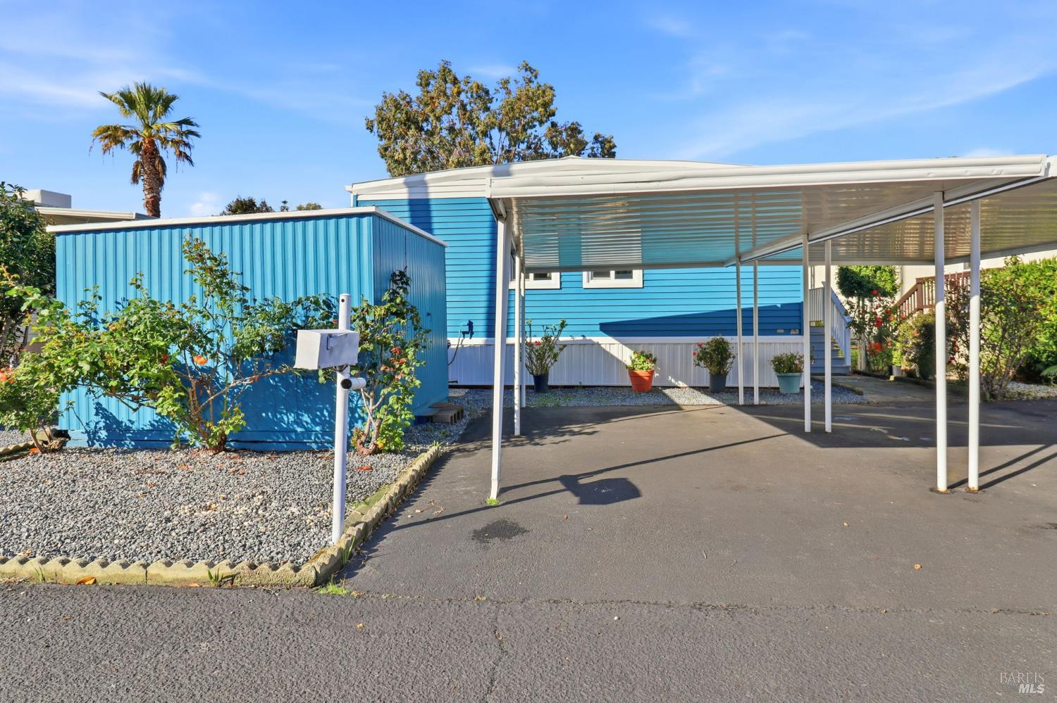 Prepared to be charmed by this idyllic single level home and garden in a quiet natural setting. This 2BR 2BA home is a winner for someone 55+! Its bright and exceptionally sunny, stylishly remodeled. It has an appealing new kitchen, with gas range and wrap around quartz breakfast bar. New bathrooms, new flooring, new windows new wall treatments and even a new wider hallway gives this home a fresh contemporary feeling. Three large windows look out onto the greenbelt. Central heat and AC, 3 parking spots and a shed making living here very comfortable. Notice the many cheerful cottage gardens that line Seville Way as you make your way to #715. No property taxes or HOA fee at Los Robles. Instead you a pay space rent of about $1100 per month that include onsite management, maintenance of the incredible tree lined landscaping, walkways and lawns and weekly trash pickup as well as use of the pool, spa, clubhouse and other facilities. No renters allowed. New owners must be approved for a park lease.