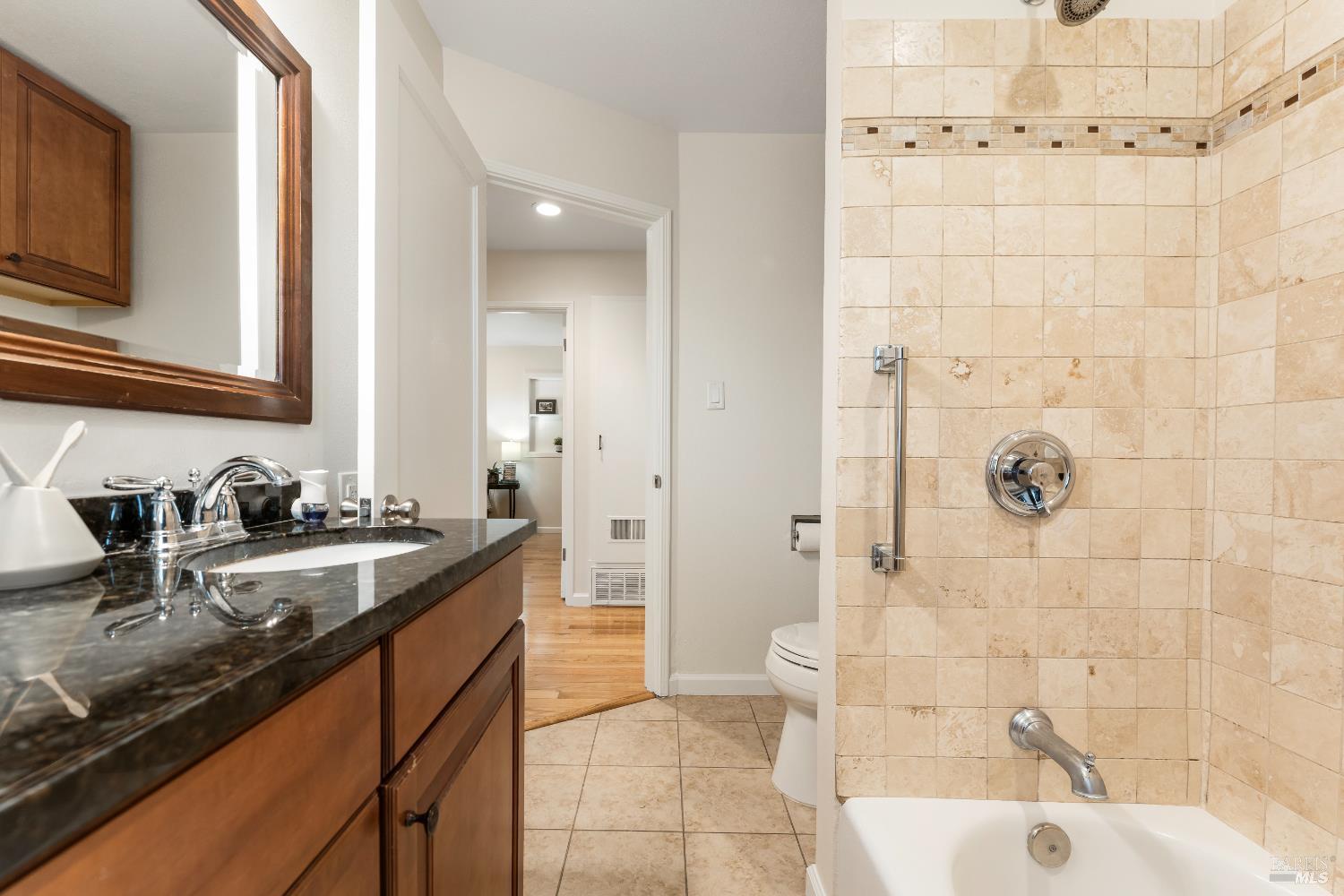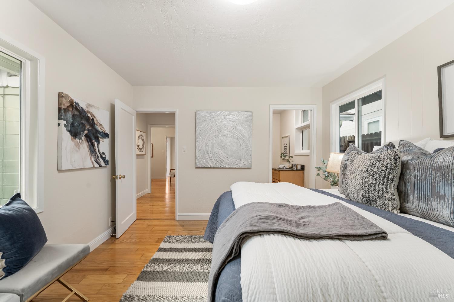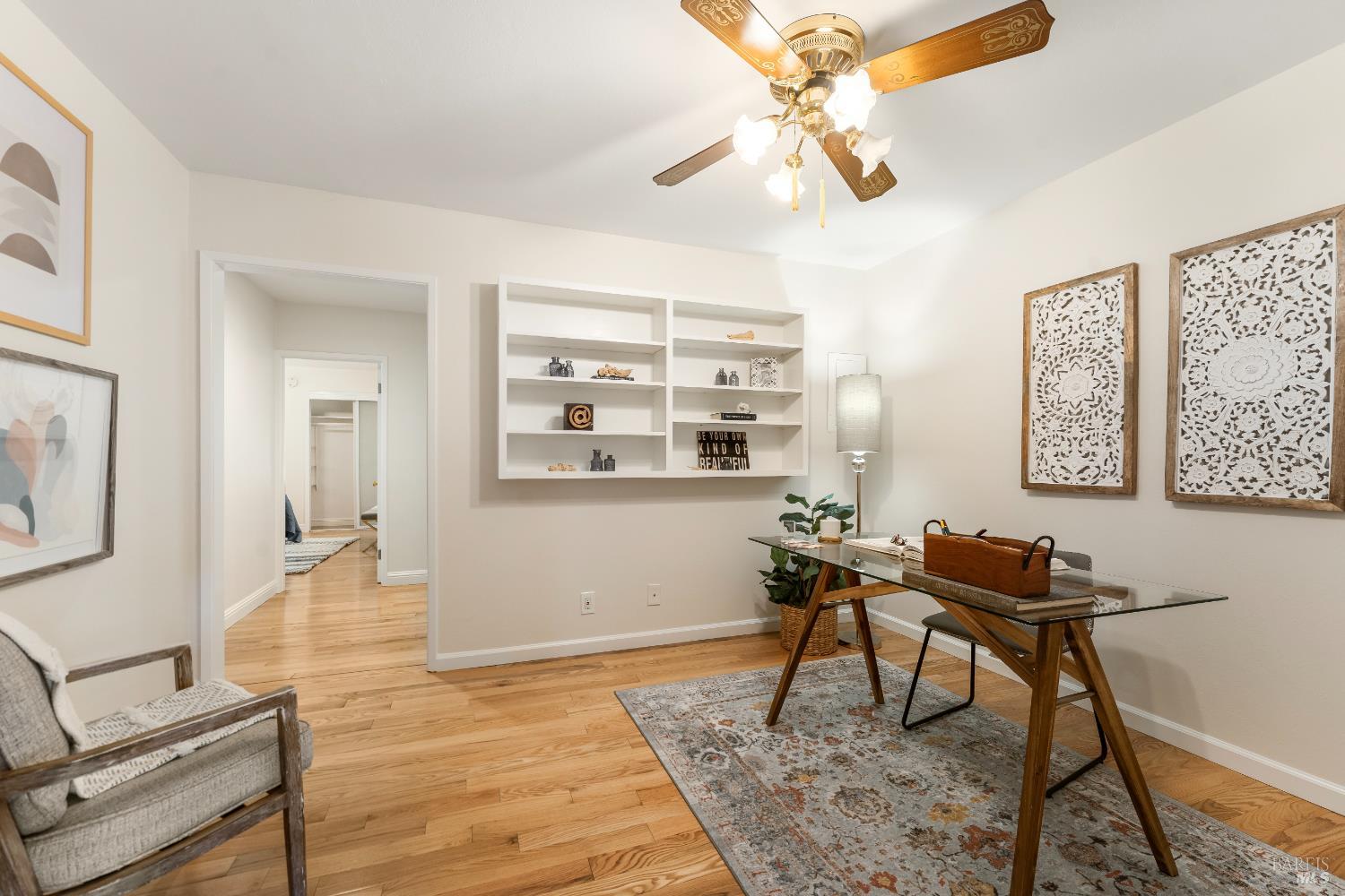 Discover the perfect blend of modern comfort and classic charm in this beautifully updated 3-bedroom + office (potential 4th bedroom), 2-bathroom home located in the heart of Vallejo. Boasting stunning hardwood floors that flow seamlessly throughout, this residence offers a warm and inviting atmosphere from the moment you step inside. The spacious primary suite features an updated en-suite bathroom with modern fixtures, a sleek vanity, and a step-in shower. The two additional bedrooms are generously sized with ample closet space and share a beautifully appointed second full bathroom complete with contemporary tiling and a bathtub/shower combo perfect for family or guests. A versatile office can easily serve as a 4th bedroom, home gym, or creative studio. The updated kitchen is a chef's delight, featuring contemporary finishes, ample storage, and everything you need for effortless meal prep and entertaining. Stay comfortable year-round with central HVAC and enjoy energy efficiency with dual-pane vinyl windows that flood the space with natural light while keeping utility bills in check. This home is move in ready with lots of amenity's.