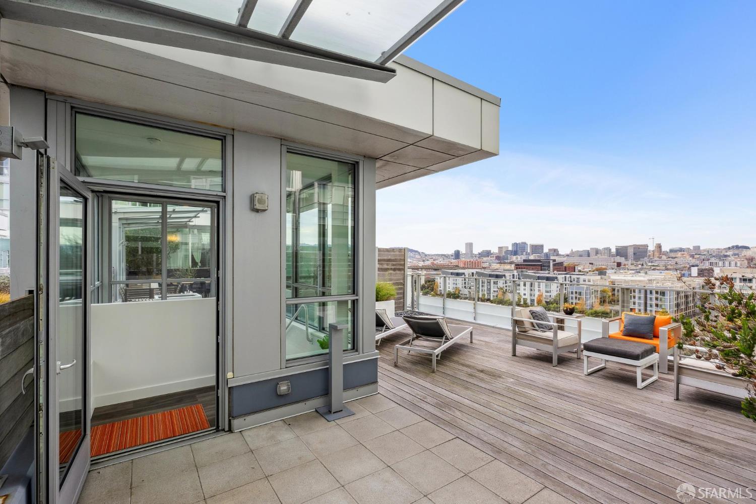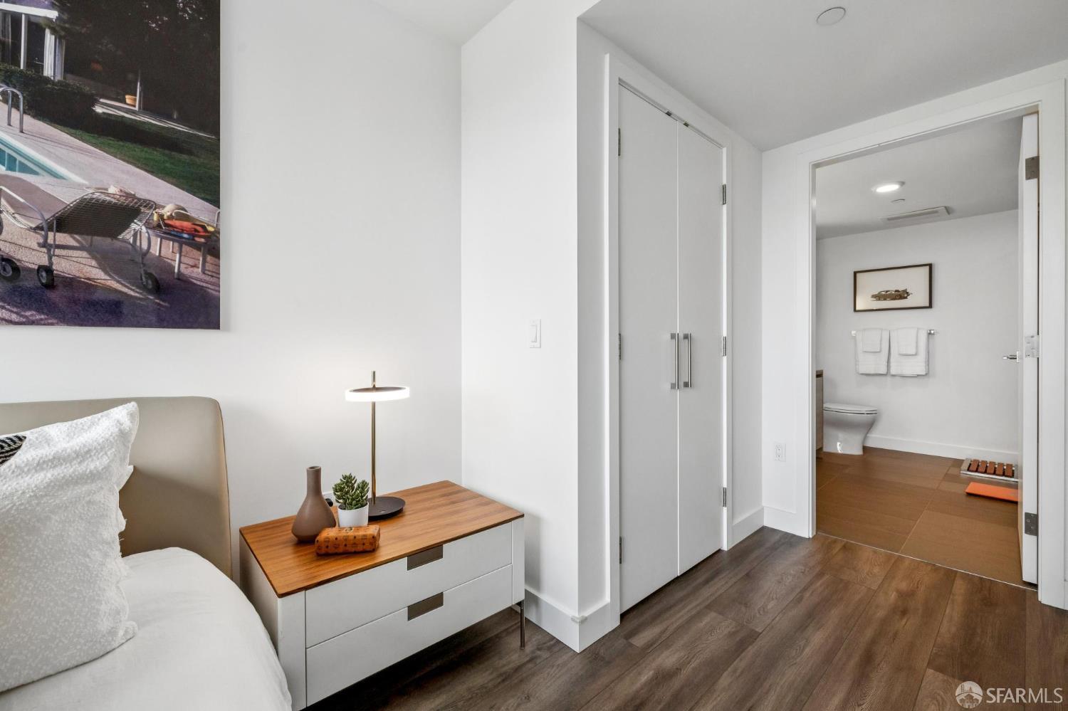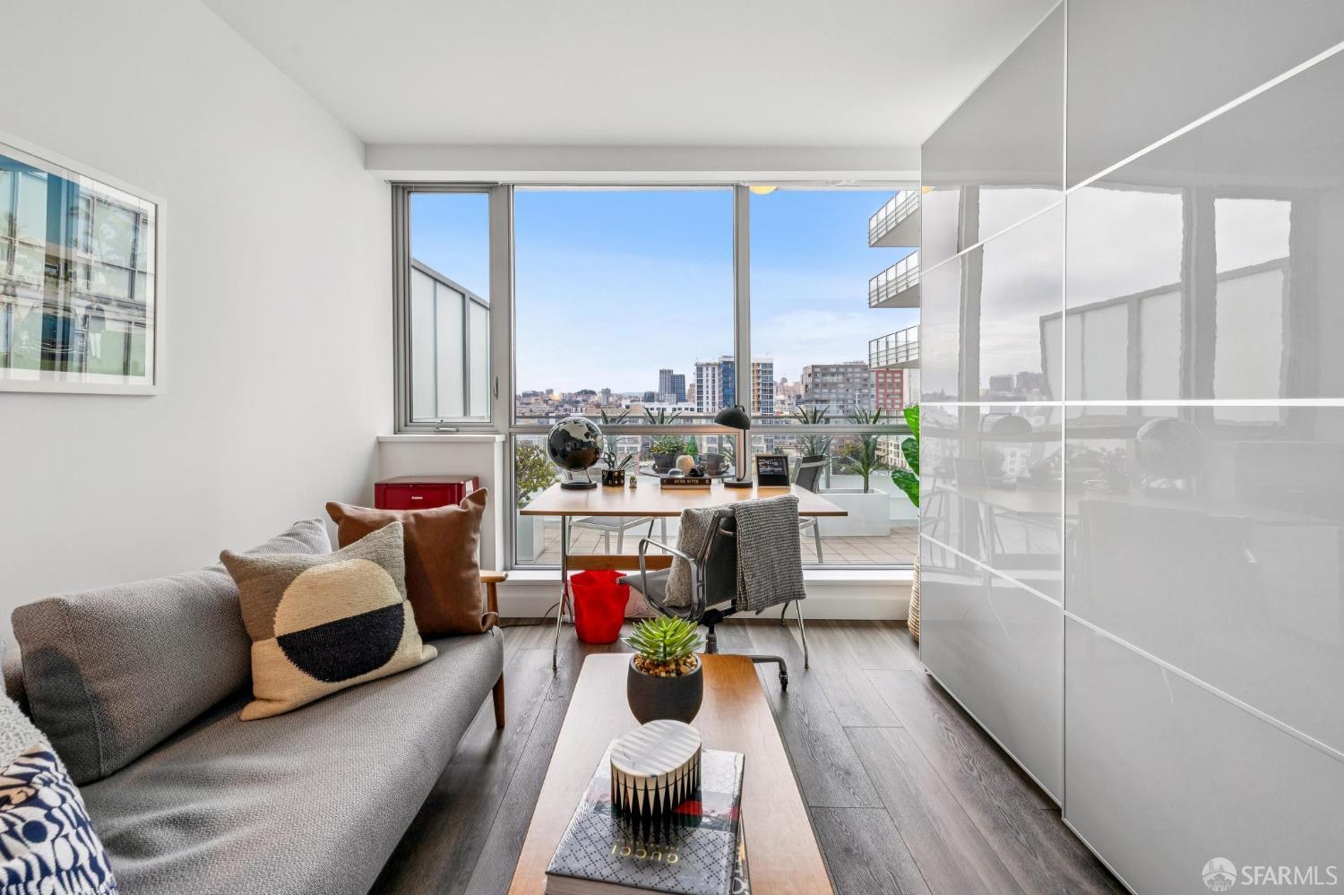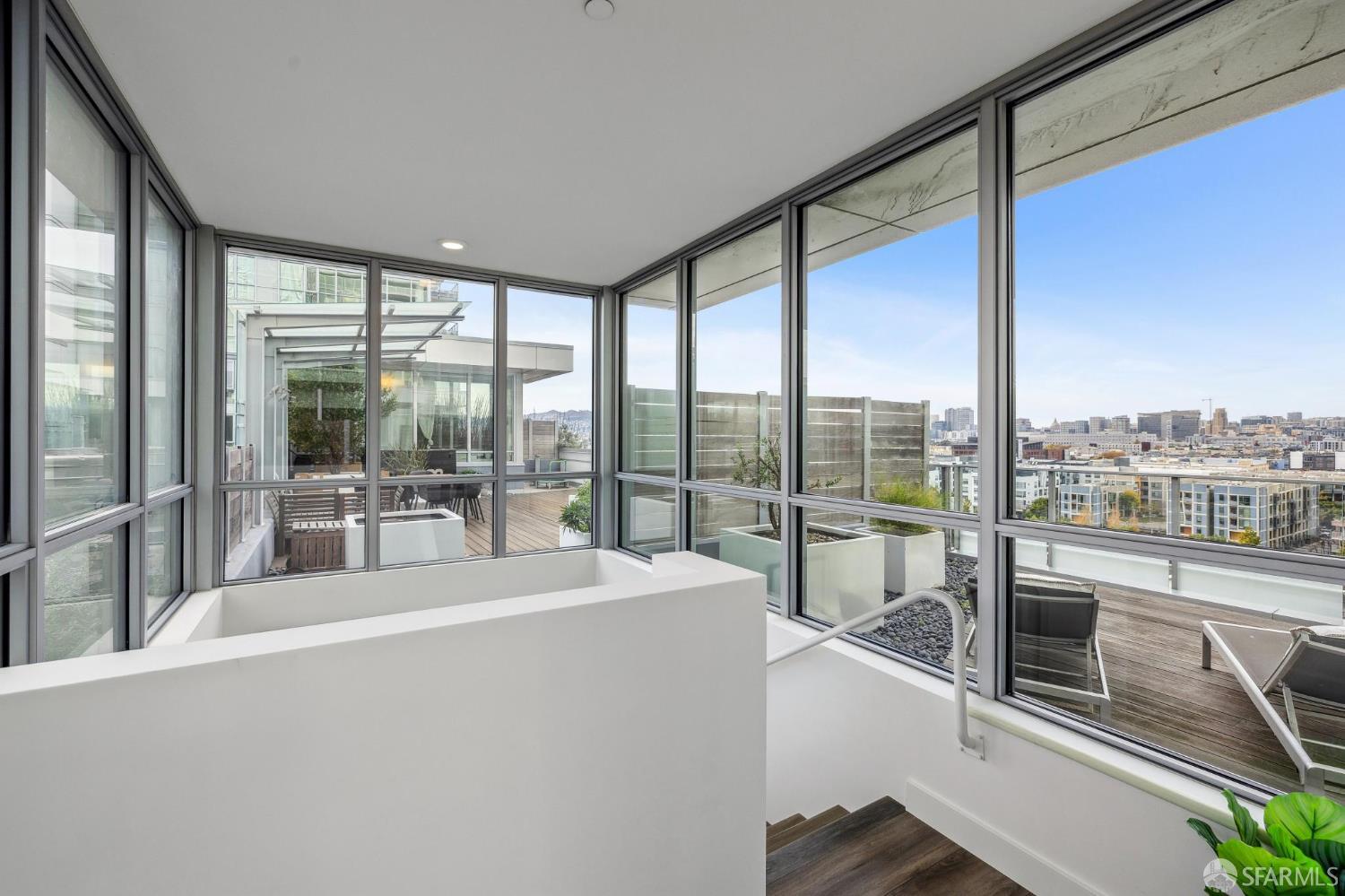 Experience sophisticated city living in this stunning 2-bedroom, 2-bath, view residence at The Arden. Beautiful engineered bamboo hardwood floors flow throughout the open-concept layout, where floor-to-ceiling windows frame sweeping city and Mission Creek views. The modern kitchen, designed for both style and function, anchors the living space and opens to a private balcony. The primary bedroom has an en suite bath with soaking tub and glass enclosed shower. A rare private deeded roof deck on the second level expands your living space perfect for relaxing, entertaining, or enjoying golden sunsets over the skyline. Residents enjoy resort-style amenities, including a 75-foot lap pool, spa, gym, sauna, BBQ lounge, clubhouse, roof deck, and 24-hour front desk attendees. Deeded parking with an EV charger and a private storage closet add convenience and value. Located in the vibrant and thriving Mission Bay Neighborhood, moments from Chase Center, Oracle Park, UCSF, and the city's best dining and parks, this home offers the ultimate in urban luxury and convenience. Mission Bay truly has it all from adjacent dog park to host of 3 professional sports teams to new restaurants and green spaces. Love where you live!