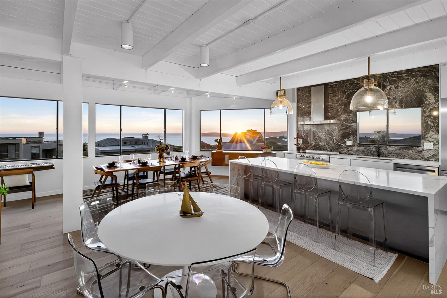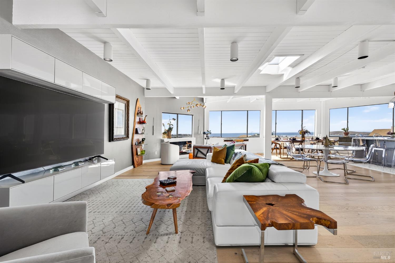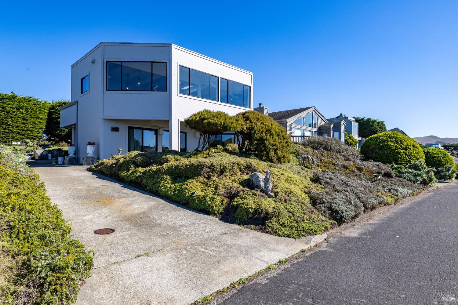 This custom contemporary home showcases the best of Bodega Bay! From the entry, ascend the floating staircase to the main level, featuring panoramic views of the Pacific. High-end upgrades include a smart-speaker system, custom restoration hardware fixtures, & electric fireplaces. The kitchen offers an oversized quartz waterfall island, built-in stainless steel appliances, & granite backsplash. A convenient half-bath completes the level. On the lower level are three bedrooms, each with sliders onto a private patio. The primary suite includes a walk-in closet & fully remodeled bathroom with soaking tub, large rain shower, and custom marble tile. Also on this level are a full guest bathroom and 2-car garage with storage/laundry. The exterior offers multiple seating areas, a hammock with views of the 11th hole, and a Tesla EV charger. Pristine Bodega Harbour amenities are close by - including the clubhouse, restaurant, gym, sauna, heated pool, bocce/tennis/basketball courts, & more. Incredible beaches, tasting rooms, & seafood are minutes away. This home has lived as a full-time residence, weekend getaway, & profitable Airbnb. Thoughtfully upgraded with consideration to preserve coastal tranquility, this is a rare opportunity to slow down & enjoy the simple things, luxuriously!