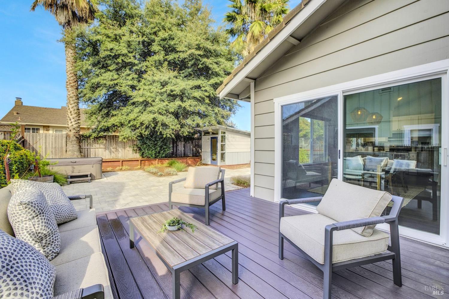 Welcome to this beautifully updated home located just steps from Bond Park, a cherished neighborhood amenity ideal for kids, dogs and outdoor recreation, complete with open green space and a basketball court. Inside, the functional floor plan places all four bedrooms on the upper level, creating a practical and comfortable layout for everyday living. The home features two and a half updated bathrooms, including a spacious primary suite with dual vanities and a generous walk-in closet. The updated kitchen offers stainless appliances and flows seamlessly into the dining area, where tasteful built-ins and updated lighting add charm and convenience. Recessed lighting throughout the home and abundant natural light in the main living spaces create a warm and inviting atmosphere. The expansive backyard is perfect for relaxing or entertaining, with pavers, a deck, a hot tub and a versatile outbuilding. The outbuilding is temperature controlled with a mini split, making it ideal for a private home office, studio or retreat. This property brings together comfort, style and an exceptional location in one impressive offering.