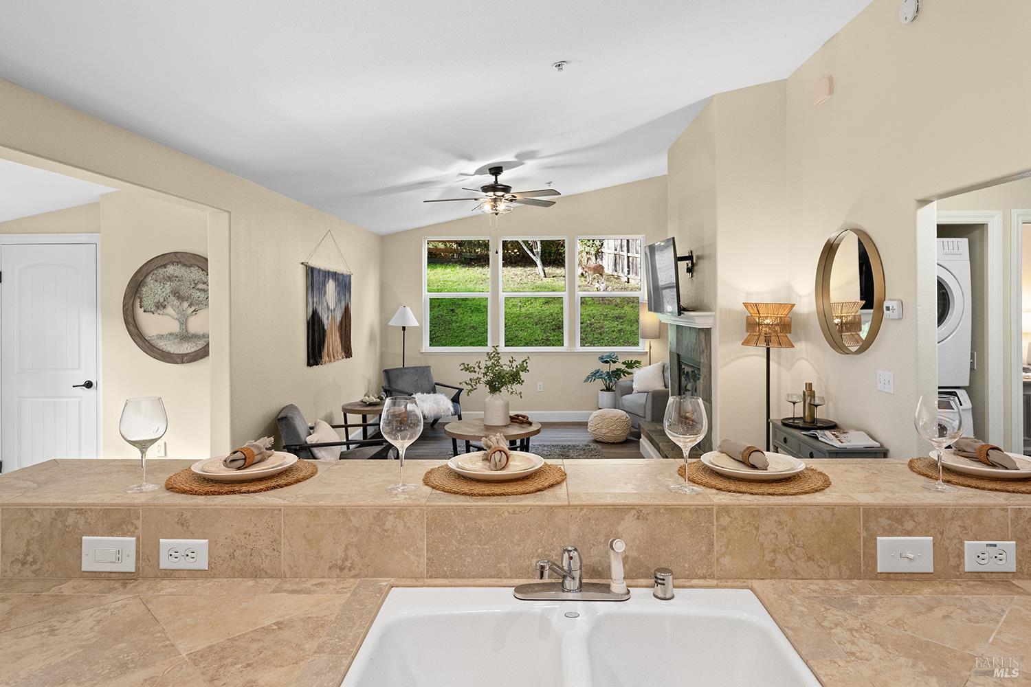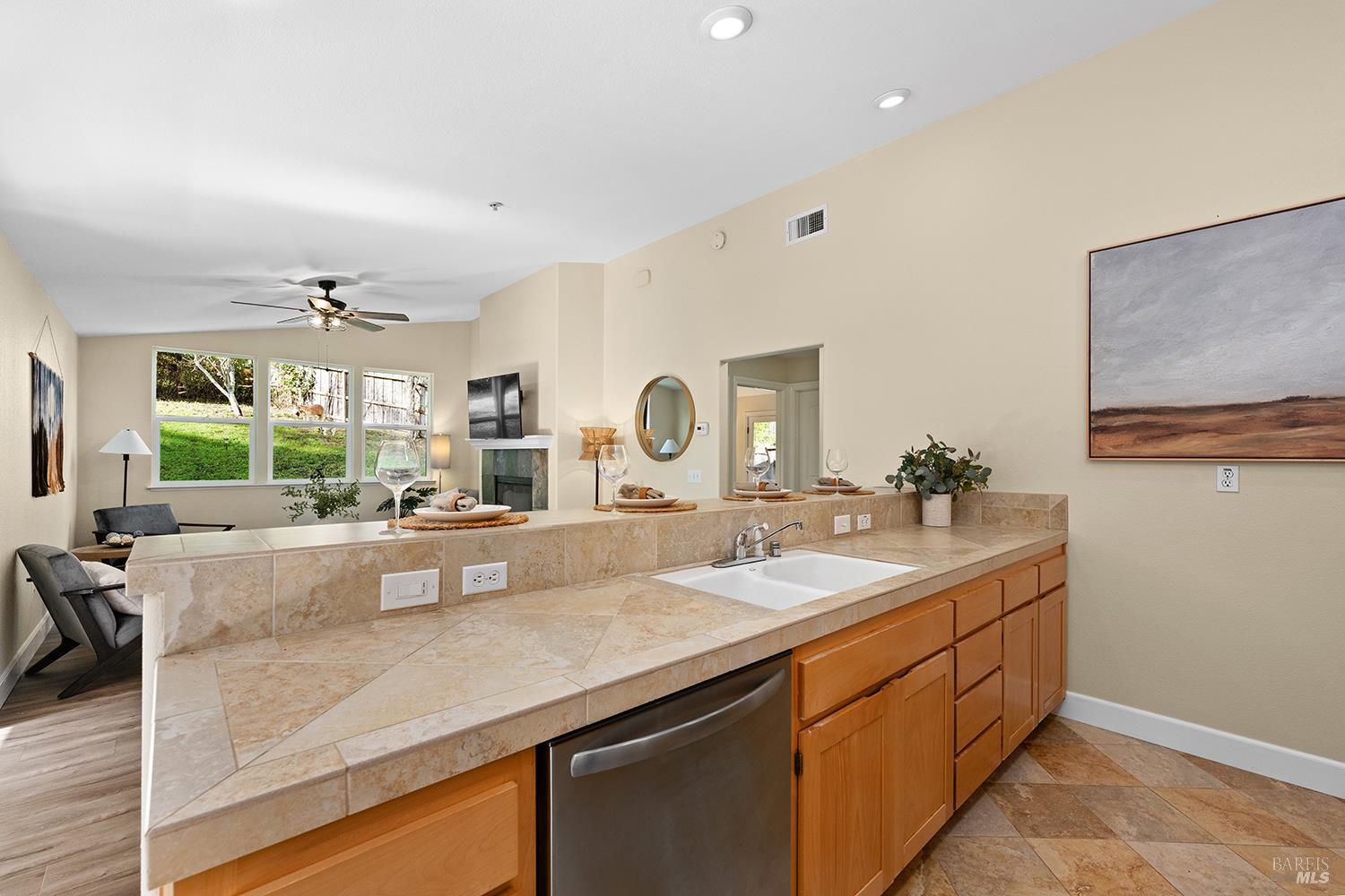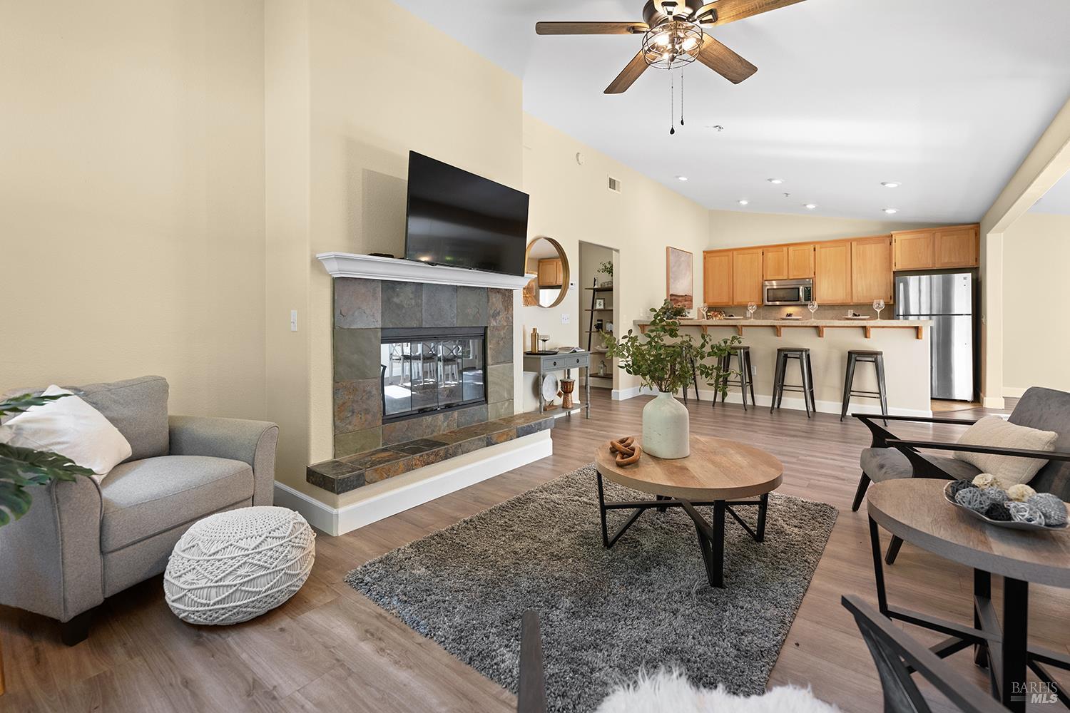 This pristine tastefully appointed very private single-story 2 bedroom end unit is located in the lively Harmony Village Community of Occidental, a place where music and art flourish. Boasting 1,158+/- square feet with soaring ceilings, a warm and cozy gas fireplace, amply sized bedrooms, and a kitchen and bathroom adorned in natural stone, this home is a short distance from fine dining, artisan shops, wine tasting, groceries, churches, schools, the stunning Sonoma Coast and the renowned Russian River Resort area. Walls of glass frame a spacious outdoor living area with lots of patio area suitable for joyful entertaining while enjoying pleasant views of lush green native woodlands. Don't miss the detached two car garage. Come enjoy a rural atmosphere where most conveniences are just a moment away.