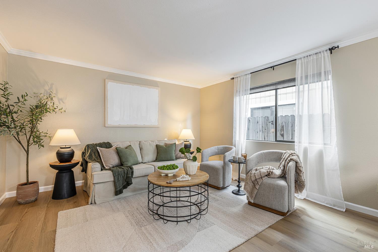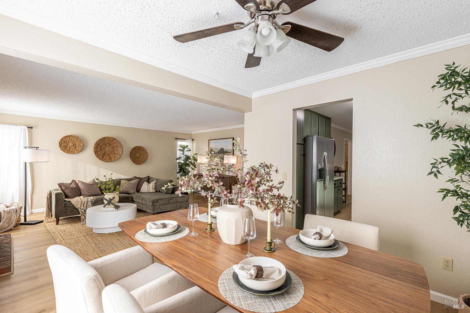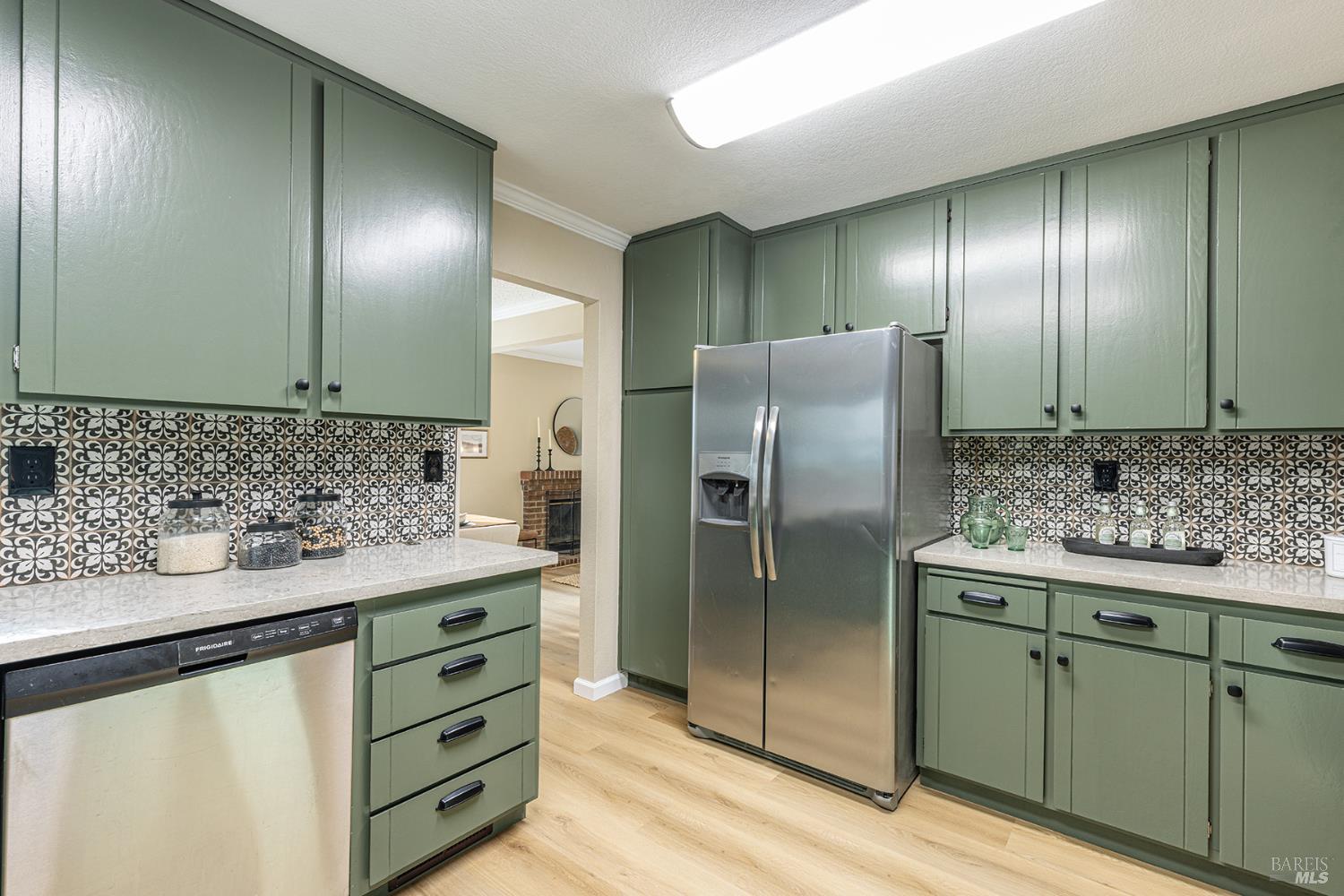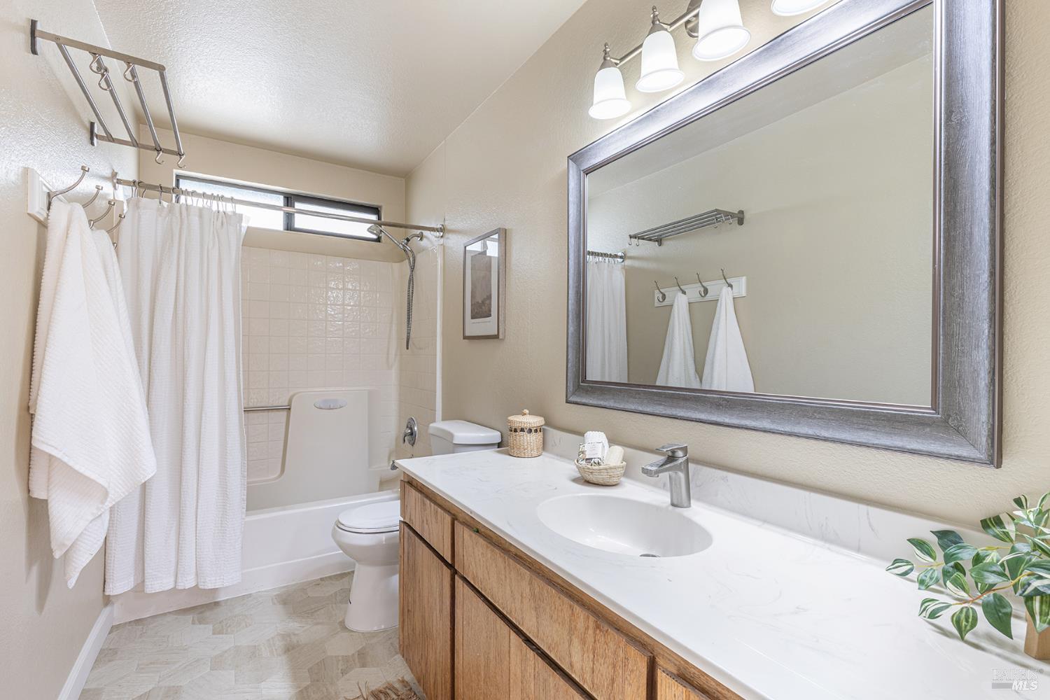 Located just minutes from Sonoma State University, this multi-level home offers space, comfort, and charm. Step inside to a welcoming open foyer that flows into the spacious country kitchen a large, informal space designed for both cooking and gathering. With newer cabinets and flooring, it's perfect for sharing meals, conversation, and connection. Whether you're sitting at the kitchen counter or cooking up something delicious, everyone can be part of the action. The living room features a cozy wood-burning fireplace surrounded by windows, creating a warm, light-filled retreat on the main level. Upstairs, you'll find the primary bedroom at the front of the home, complete with vaulted ceilings, a unique circular window, generous closet space, and an ensuite bathroom. Beyond that are three additional bedrooms each nicely sized and situated toward the back of the home for added privacy and flexibility. Rounding out the property is a two-car garage and a backyard with a grassy area and a small patio perfect for relaxing or entertaining.