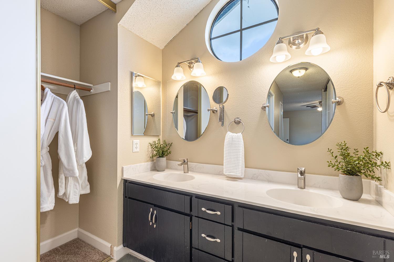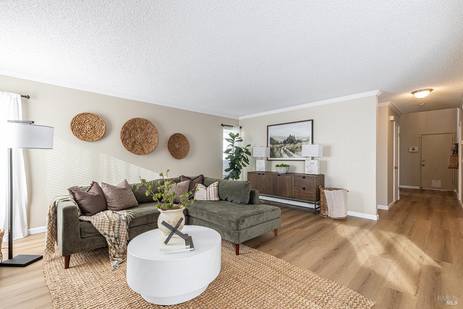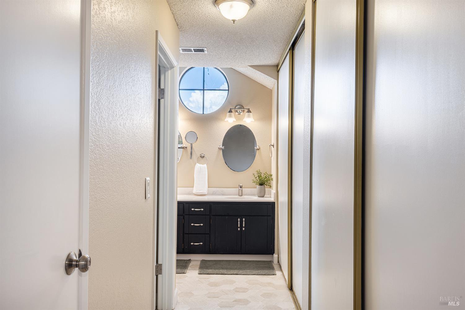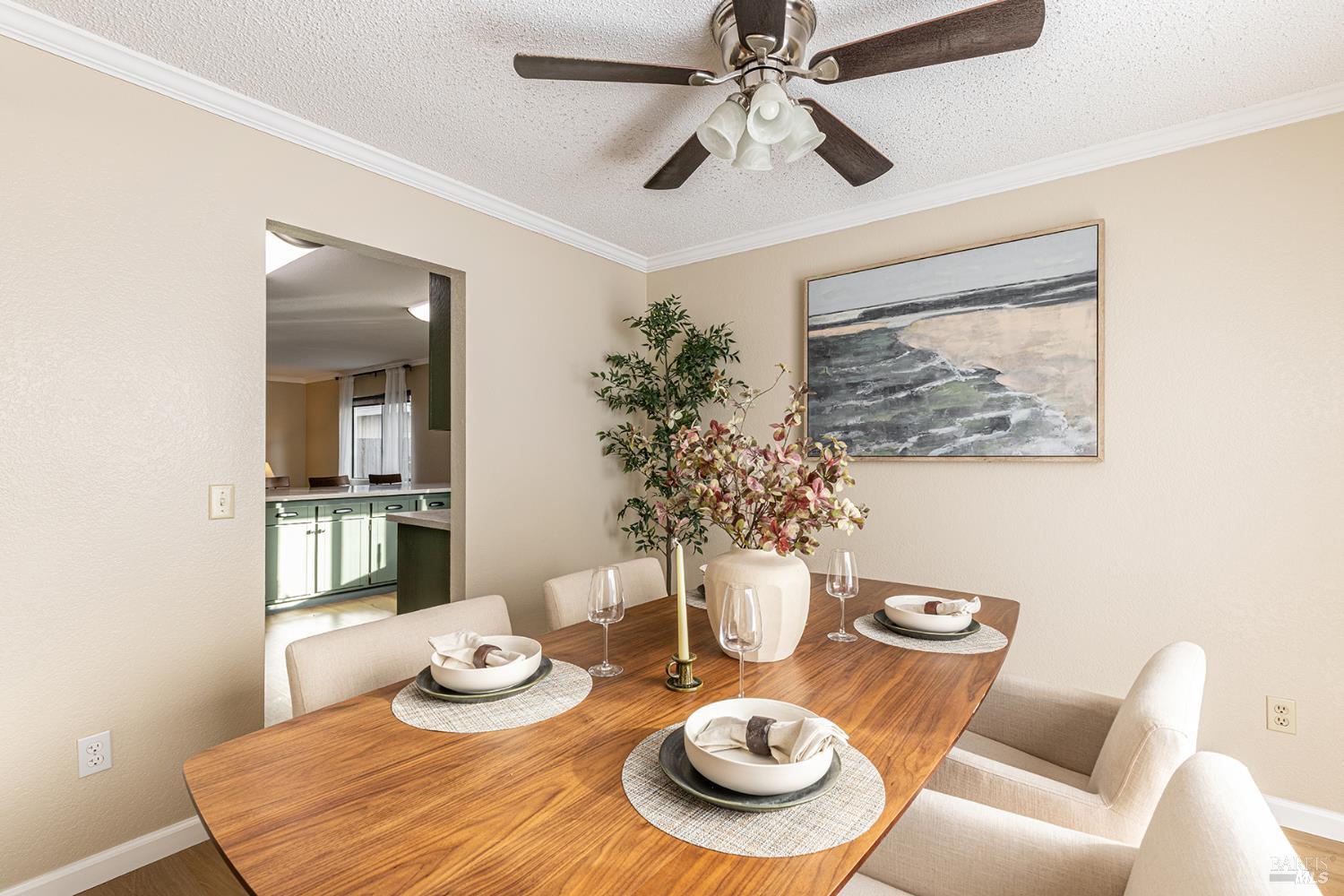 Located just minutes from Sonoma State University, this multi-level home offers space, comfort, and charm. Step inside to a welcoming open foyer that flows into the spacious country kitchen a large, informal space designed for both cooking and gathering. With newer cabinets and flooring, it's perfect for sharing meals, conversation, and connection. Whether you're sitting at the kitchen counter or cooking up something delicious, everyone can be part of the action. The living room features a cozy wood-burning fireplace surrounded by windows, creating a warm, light-filled retreat on the main level. Upstairs, you'll find the primary bedroom at the front of the home, complete with vaulted ceilings, a unique circular window, generous closet space, and an ensuite bathroom. Beyond that are three additional bedrooms each nicely sized and situated toward the back of the home for added privacy and flexibility. Rounding out the property is a two-car garage and a backyard with a grassy area and a small patio perfect for relaxing or entertaining.