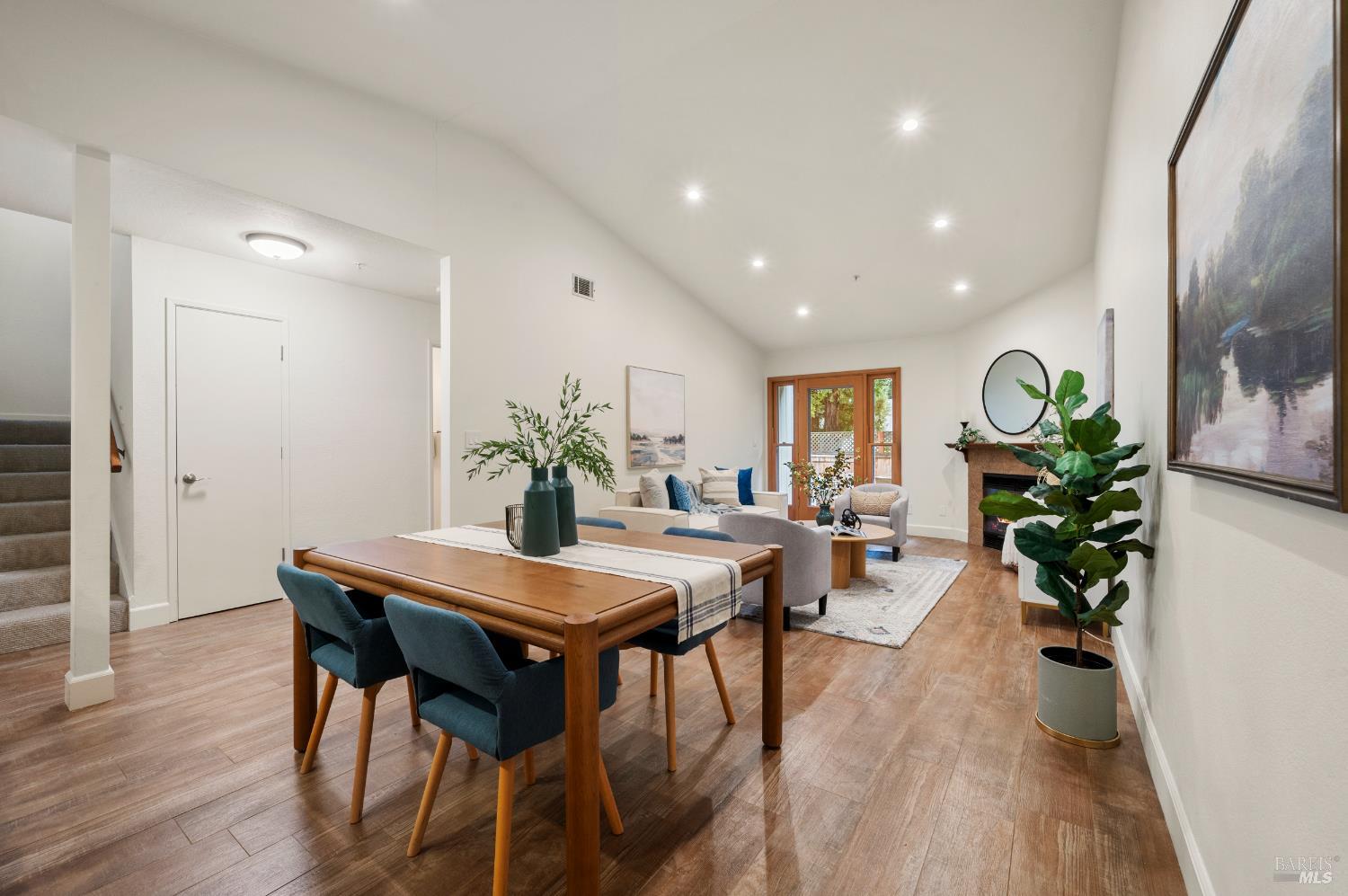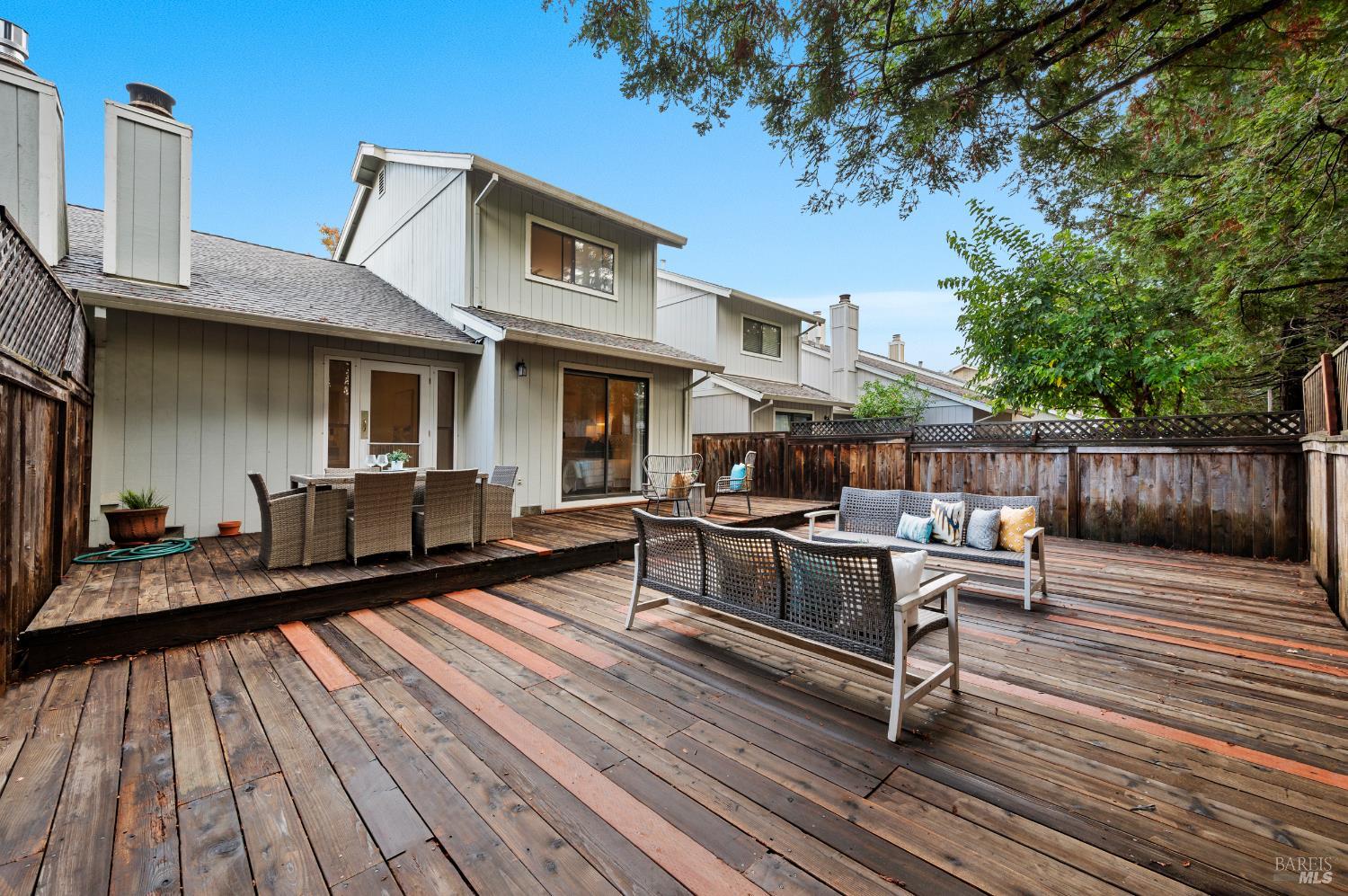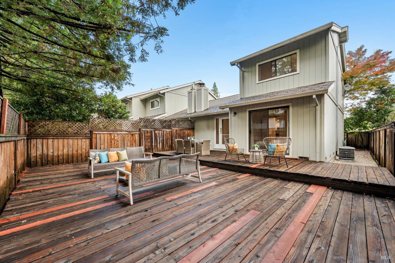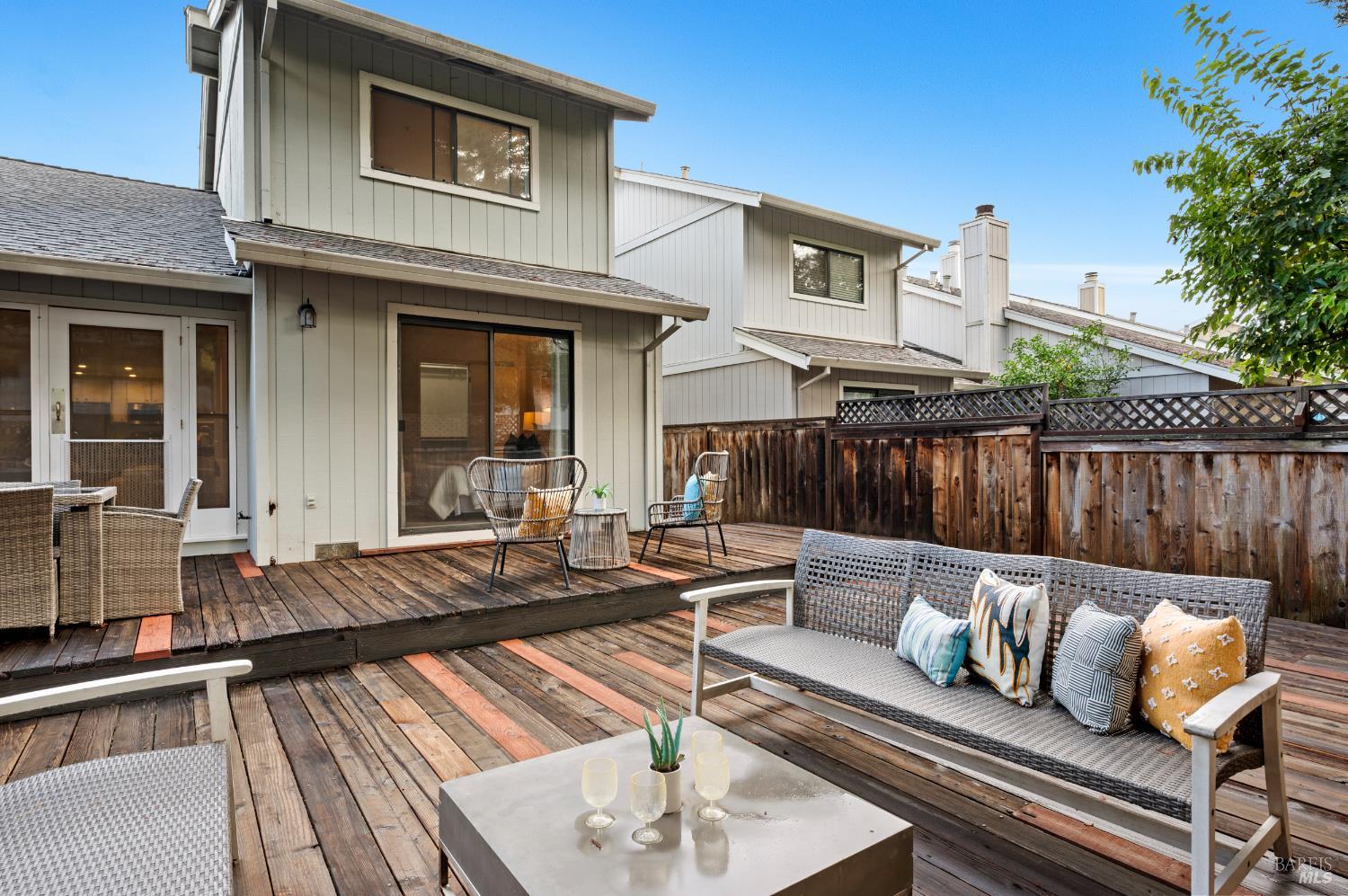 Welcome, why compromise? May be Napa's only 2 Bedroom Condo with double-size Lot, fully fenced and gated Yard front and back, 2-car Garage with Laundry, Storage, Interior access, 2 Full Baths, Living Room with Fireplace, Central Air, and modest HOA dues that take care of Exterior, Roof and Pool! The open Kitchen with Bar seating and a full suite of Stainless Appliances will inspire you to stay in and cook. Clean as a whistle with Tile Floors, new Carpet, vaulted Ceiling, and French Doors opening onto delightfully 'huge' outdoor deck for entertaining and gardening. Perfect for family and pets, this home is truly move-in-ready. View Bedrooms, one up, one downstairs. Stately Redwood Trees frame the rear view and provide shade, leaving plenty of sunny areas for grilling, growing veggies, and passion projects. Near the end of the quiet court, with no rear neighbor, and none above or below or to one side. Zero road noise, but easy onto Hwy 29-- or even walk to shopping and dining-- Food City and River Park are right nearby. Located in the Southwest corner of Napa at the foot of vineyard hills and open space, inviting you on great bike rides through the Carneros, dog walks into town, or hops in the car to go on Upvalley or Sonoma outings. Why settle for less? Sweet Vanessa has it all!