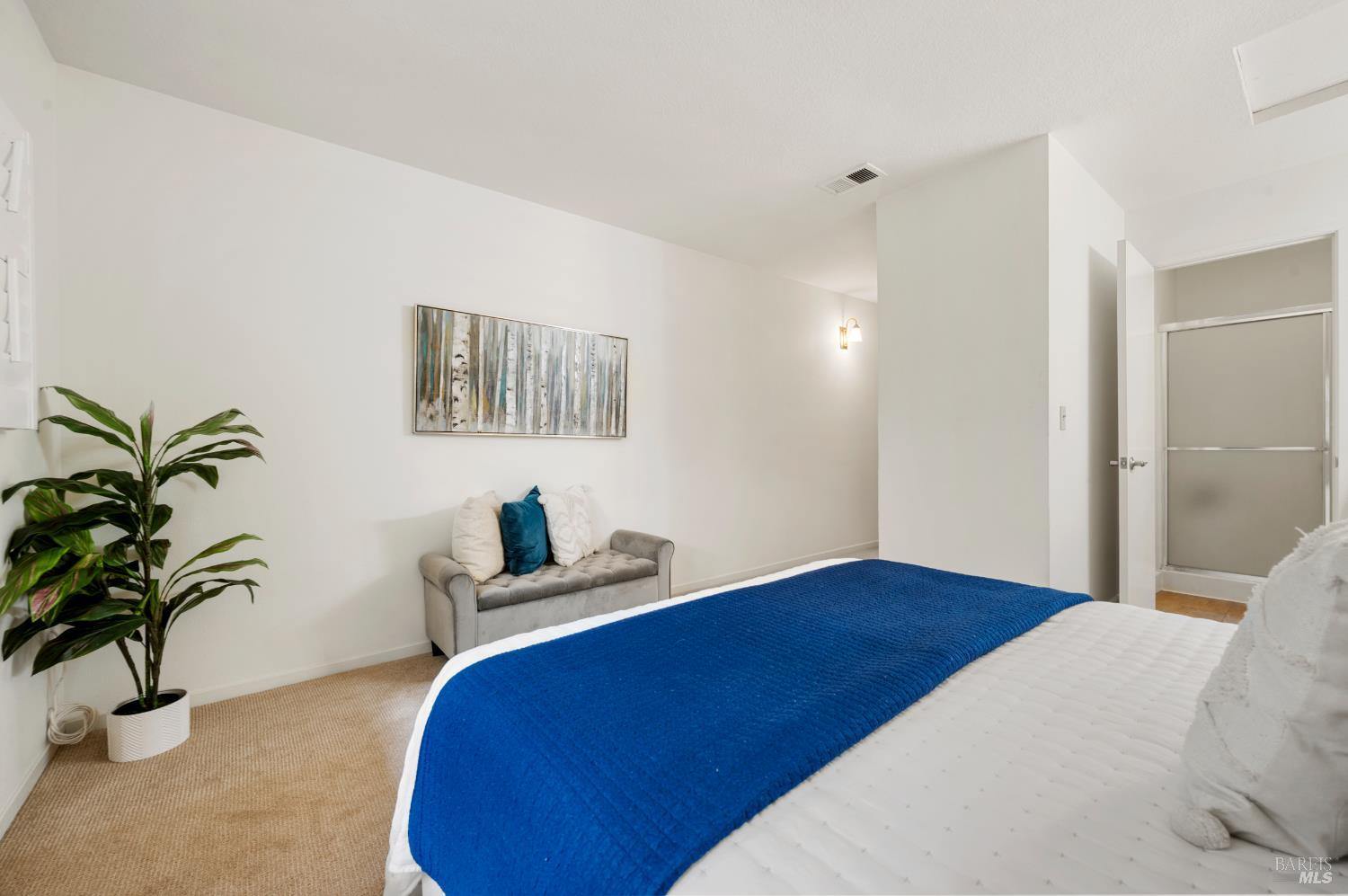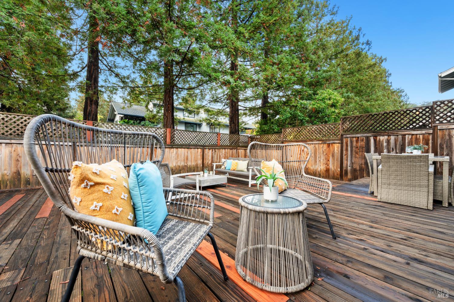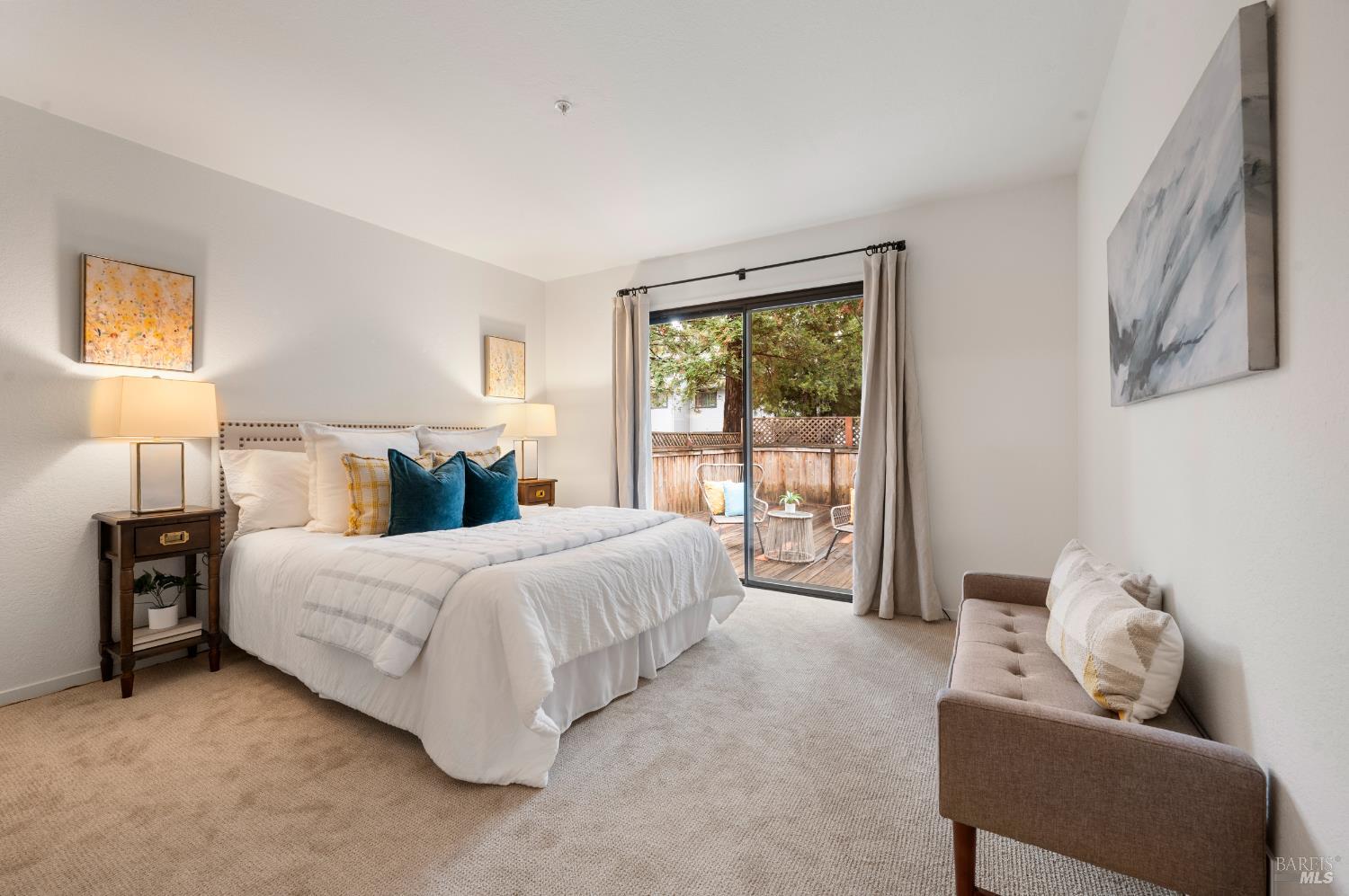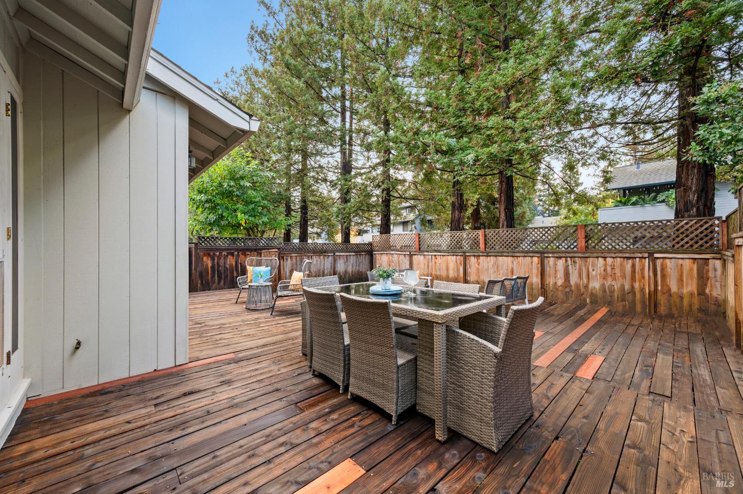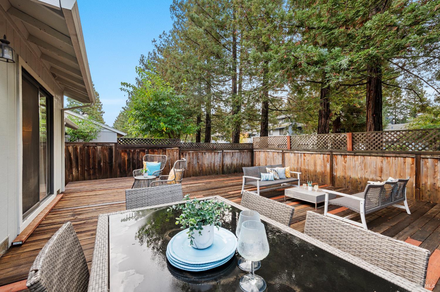 Welcome, why compromise? May be Napa's only 2 Bedroom Condo with double-size Lot, fully fenced and gated Yard front and back, 2-car Garage with Laundry, Storage, Interior access, 2 Full Baths, Living Room with Fireplace, Central Air, and modest HOA dues that take care of Exterior, Roof and Pool! The open Kitchen with Bar seating and a full suite of Stainless Appliances will inspire you to stay in and cook. Clean as a whistle with Tile Floors, new Carpet, vaulted Ceiling, and French Doors opening onto delightfully 'huge' outdoor deck for entertaining and gardening. Perfect for family and pets, this home is truly move-in-ready. View Bedrooms, one up, one downstairs. Stately Redwood Trees frame the rear view and provide shade, leaving plenty of sunny areas for grilling, growing veggies, and passion projects. Near the end of the quiet court, with no rear neighbor, and none above or below or to one side. Zero road noise, but easy onto Hwy 29-- or even walk to shopping and dining-- Food City and River Park are right nearby. Located in the Southwest corner of Napa at the foot of vineyard hills and open space, inviting you on great bike rides through the Carneros, dog walks into town, or hops in the car to go on Upvalley or Sonoma outings. Why settle for less? Sweet Vanessa has it all!
