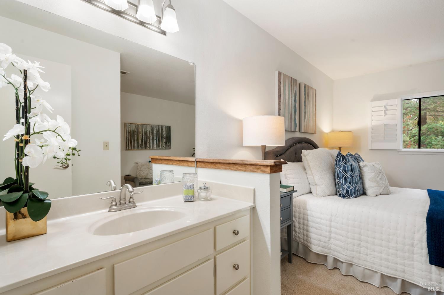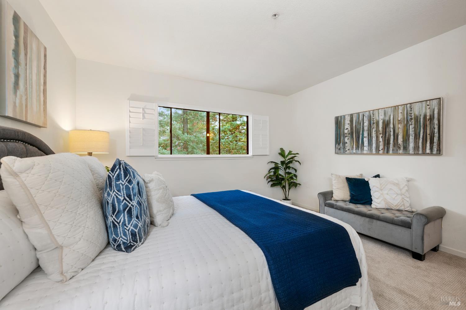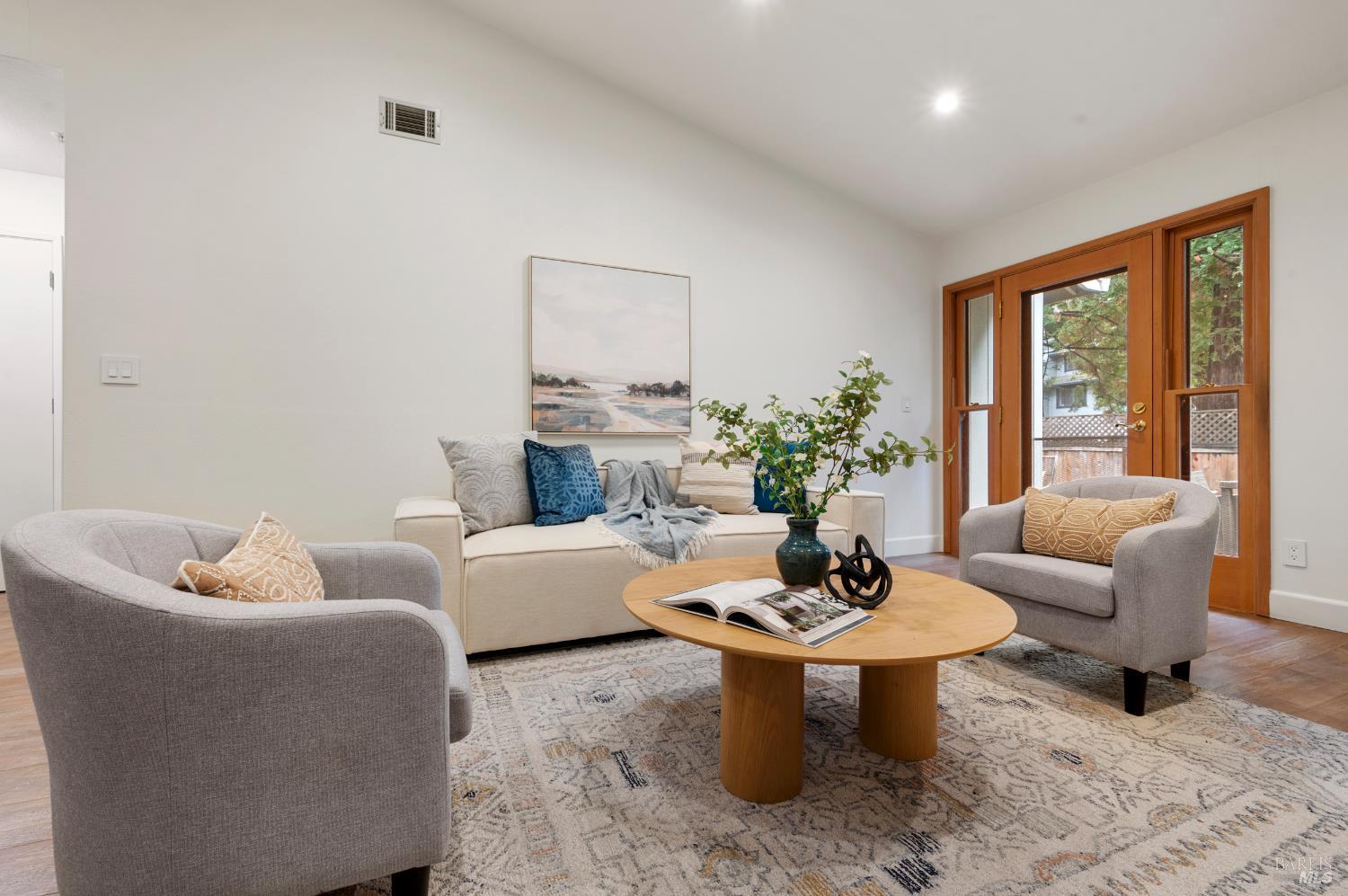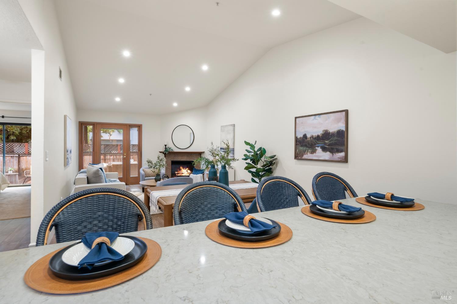 Welcome, why compromise? May be Napa's only 2 Bedroom Condo with double-size Lot, fully fenced and gated Yard front and back, 2-car Garage with Laundry, Storage, Interior access, 2 Full Baths, Living Room with Fireplace, Central Air, and modest HOA dues that take care of Exterior, Roof and Pool! The open Kitchen with Bar seating and a full suite of Stainless Appliances will inspire you to stay in and cook. Clean as a whistle with Tile Floors, new Carpet, vaulted Ceiling, and French Doors opening onto delightfully 'huge' outdoor deck for entertaining and gardening. Perfect for family and pets, this home is truly move-in-ready. View Bedrooms, one up, one downstairs. Stately Redwood Trees frame the rear view and provide shade, leaving plenty of sunny areas for grilling, growing veggies, and passion projects. Near the end of the quiet court, with no rear neighbor, and none above or below or to one side. Zero road noise, but easy onto Hwy 29-- or even walk to shopping and dining-- Food City and River Park are right nearby. Located in the Southwest corner of Napa at the foot of vineyard hills and open space, inviting you on great bike rides through the Carneros, dog walks into town, or hops in the car to go on Upvalley or Sonoma outings. Why settle for less? Sweet Vanessa has it all!