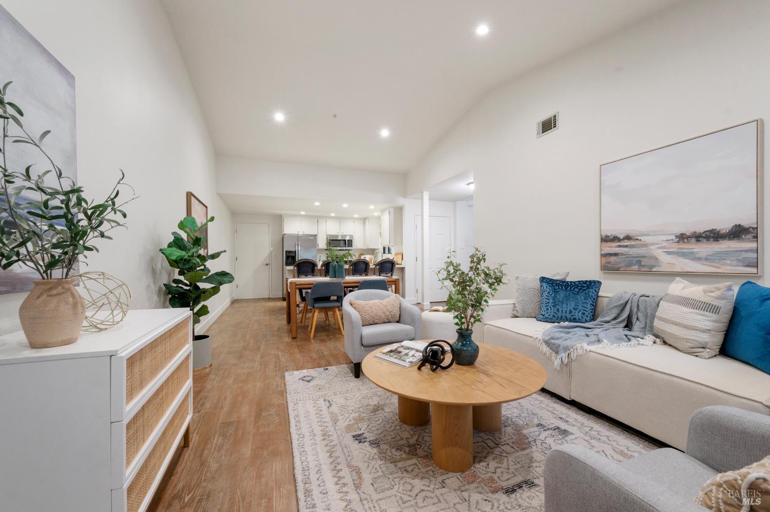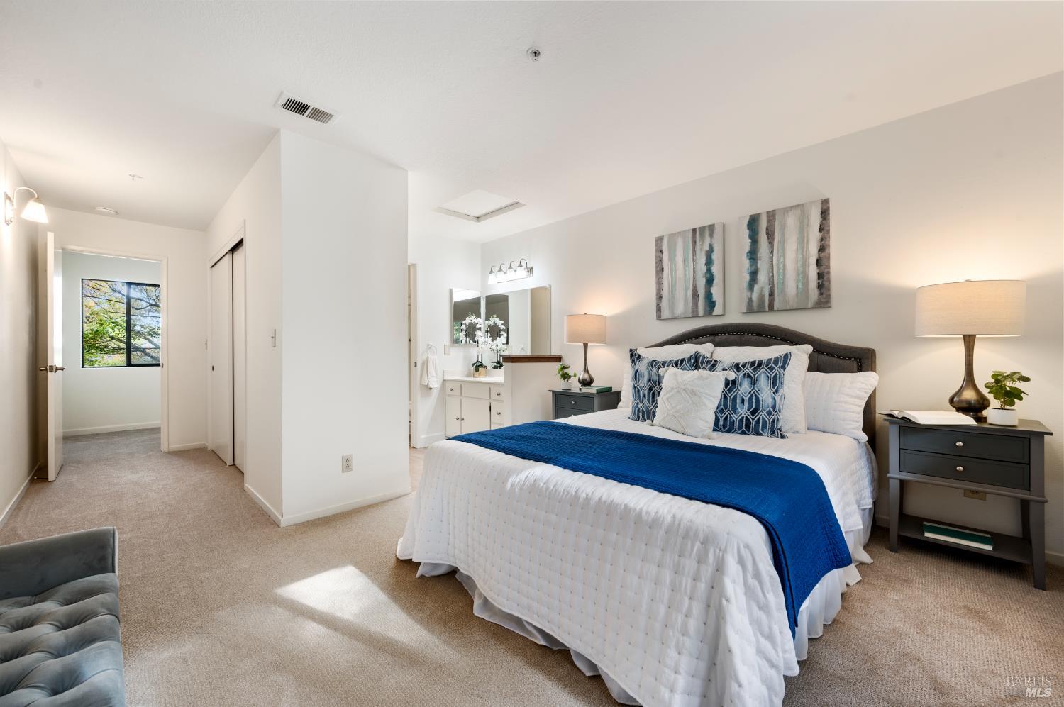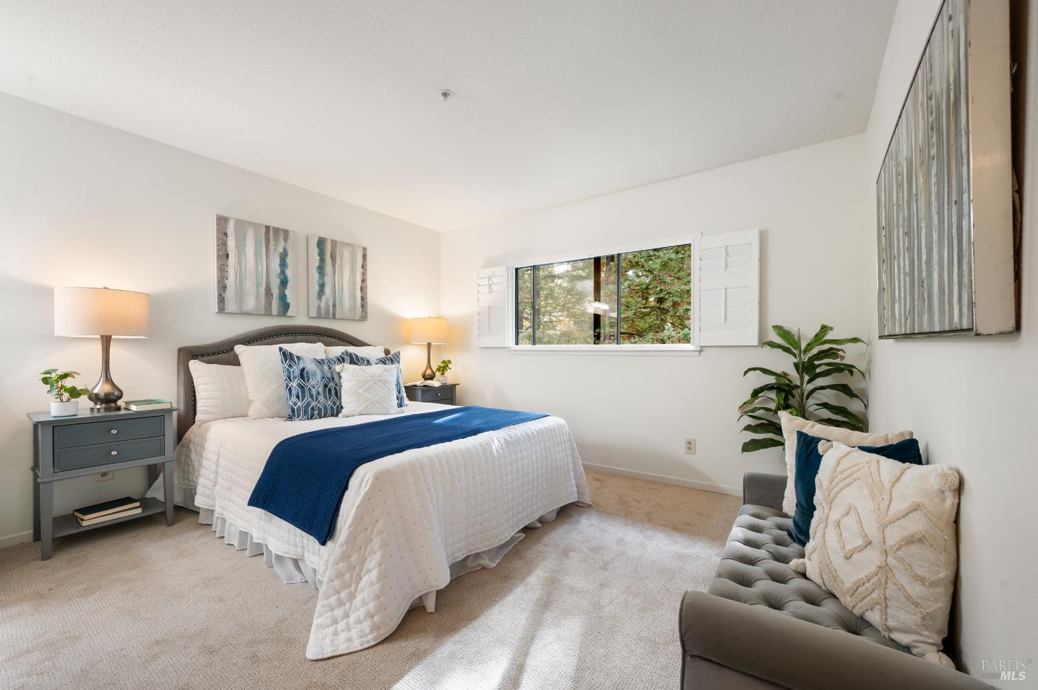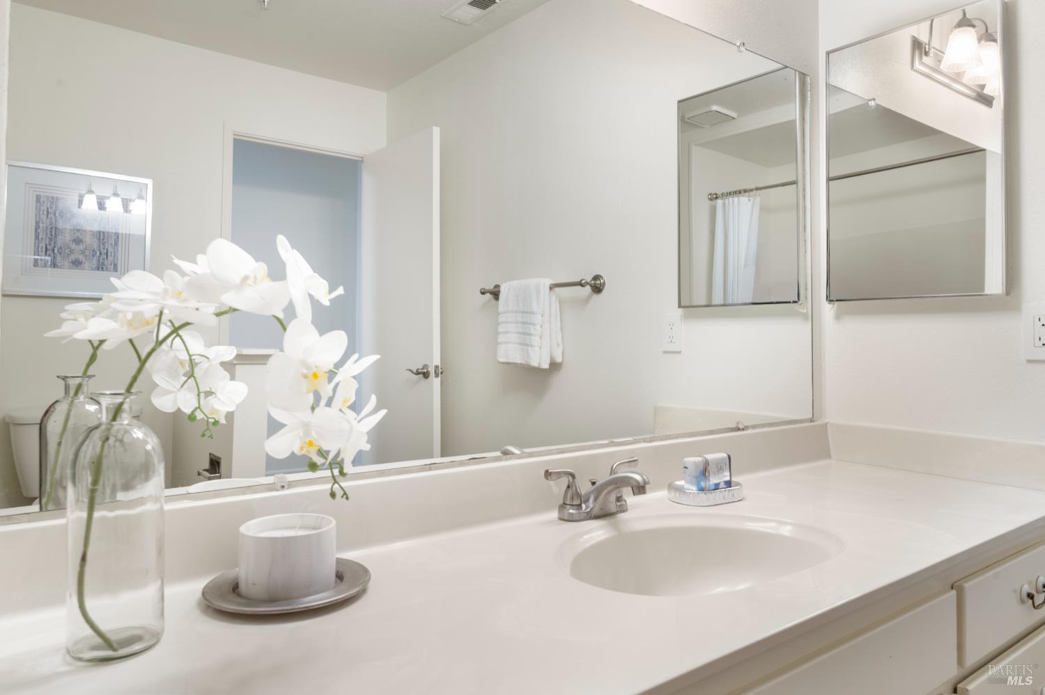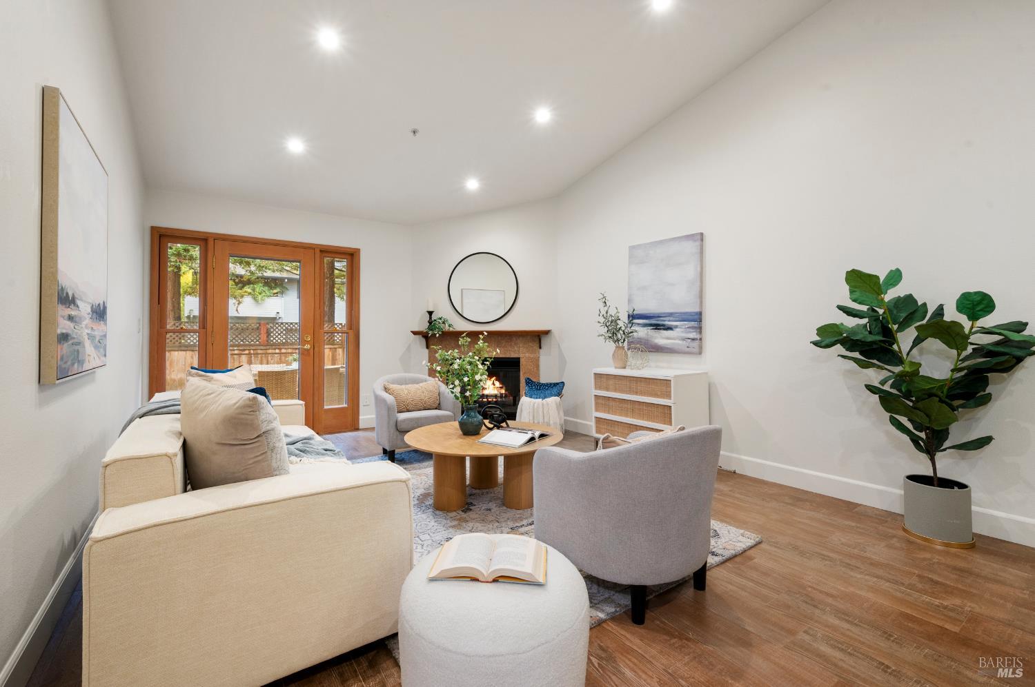 Welcome, why compromise? May be Napa's only 2 Bedroom Condo with double-size Lot, fully fenced and gated Yard front and back, 2-car Garage with Laundry, Storage, Interior access, 2 Full Baths, Living Room with Fireplace, Central Air, and modest HOA dues that take care of Exterior, Roof and Pool! The open Kitchen with Bar seating and a full suite of Stainless Appliances will inspire you to stay in and cook. Clean as a whistle with Tile Floors, new Carpet, vaulted Ceiling, and French Doors opening onto delightfully 'huge' outdoor deck for entertaining and gardening. Perfect for family and pets, this home is truly move-in-ready. View Bedrooms, one up, one downstairs. Stately Redwood Trees frame the rear view and provide shade, leaving plenty of sunny areas for grilling, growing veggies, and passion projects. Near the end of the quiet court, with no rear neighbor, and none above or below or to one side. Zero road noise, but easy onto Hwy 29-- or even walk to shopping and dining-- Food City and River Park are right nearby. Located in the Southwest corner of Napa at the foot of vineyard hills and open space, inviting you on great bike rides through the Carneros, dog walks into town, or hops in the car to go on Upvalley or Sonoma outings. Why settle for less? Sweet Vanessa has it all!