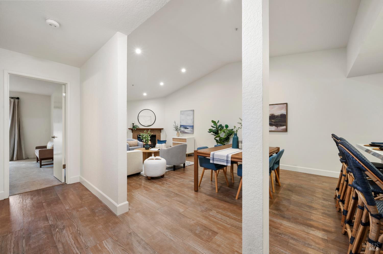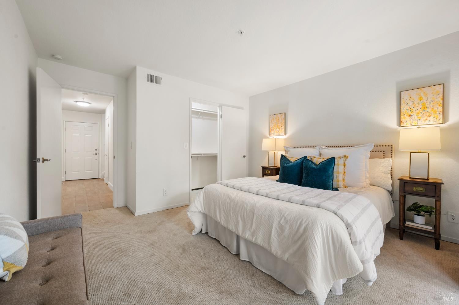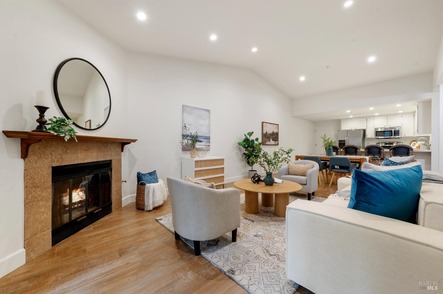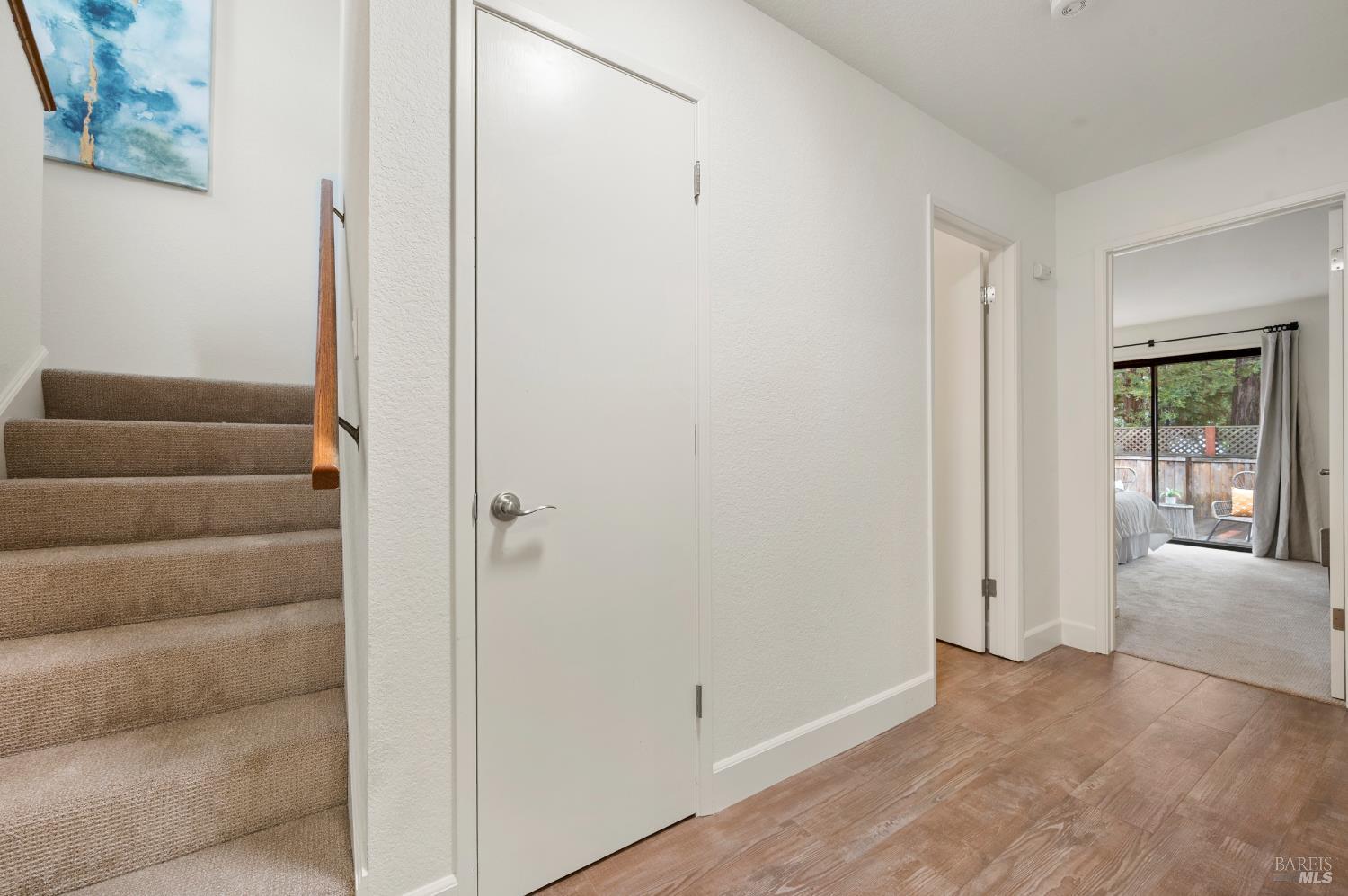 Welcome, why compromise? May be Napa's only 2 Bedroom Condo with double-size Lot, fully fenced and gated Yard front and back, 2-car Garage with Laundry, Storage, Interior access, 2 Full Baths, Living Room with Fireplace, Central Air, and modest HOA dues that take care of Exterior, Roof and Pool! The open Kitchen with Bar seating and a full suite of Stainless Appliances will inspire you to stay in and cook. Clean as a whistle with Tile Floors, new Carpet, vaulted Ceiling, and French Doors opening onto delightfully 'huge' outdoor deck for entertaining and gardening. Perfect for family and pets, this home is truly move-in-ready. View Bedrooms, one up, one downstairs. Stately Redwood Trees frame the rear view and provide shade, leaving plenty of sunny areas for grilling, growing veggies, and passion projects. Near the end of the quiet court, with no rear neighbor, and none above or below or to one side. Zero road noise, but easy onto Hwy 29-- or even walk to shopping and dining-- Food City and River Park are right nearby. Located in the Southwest corner of Napa at the foot of vineyard hills and open space, inviting you on great bike rides through the Carneros, dog walks into town, or hops in the car to go on Upvalley or Sonoma outings. Why settle for less? Sweet Vanessa has it all!