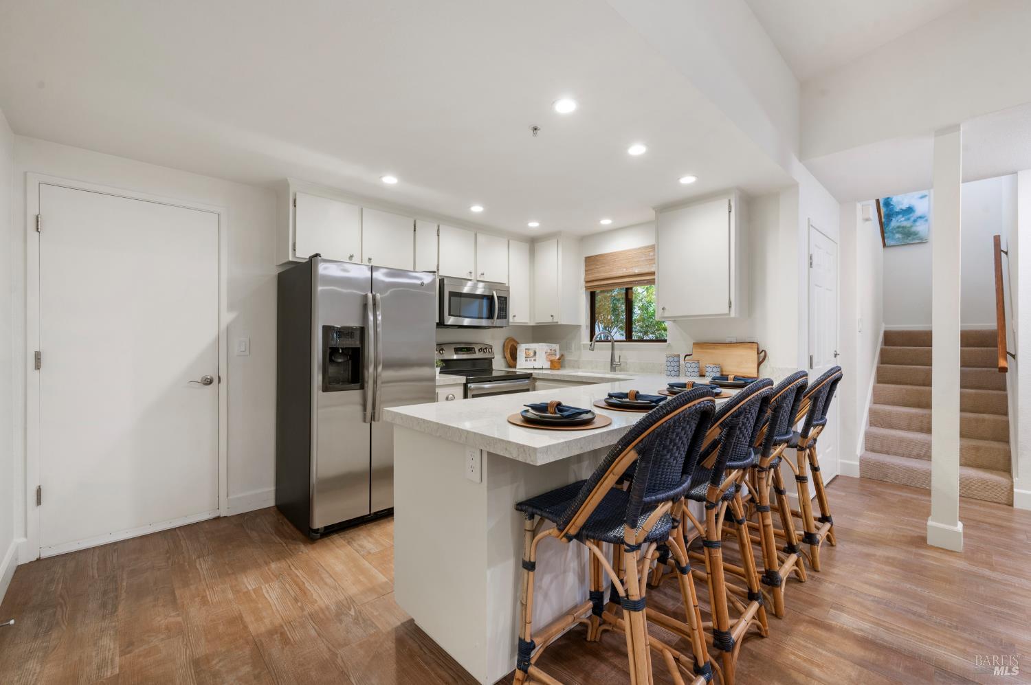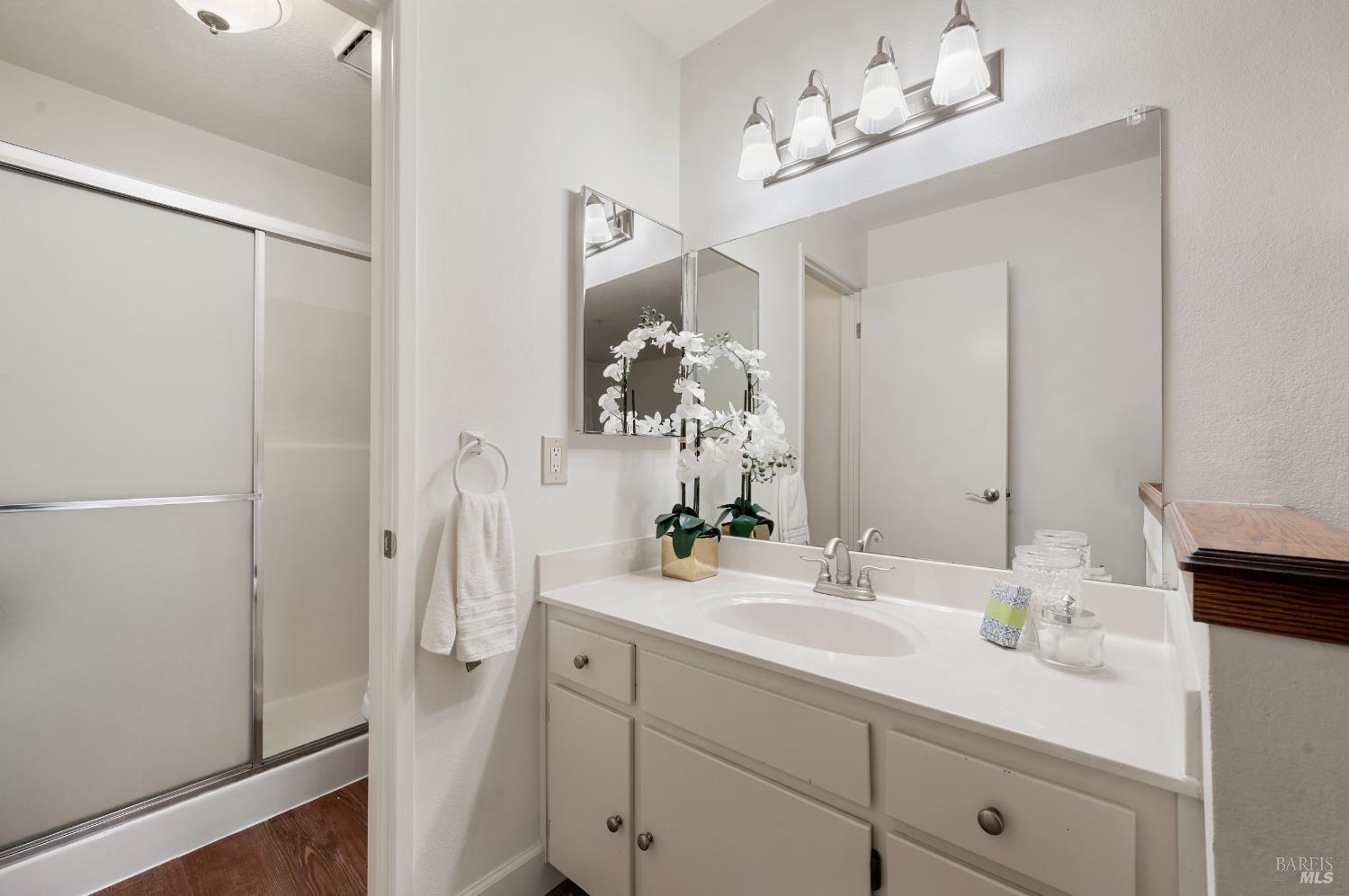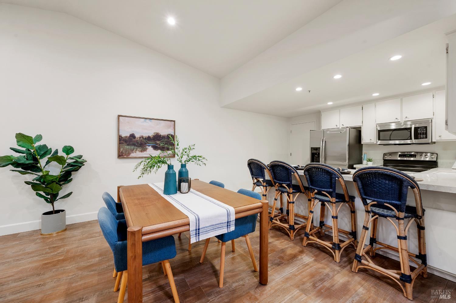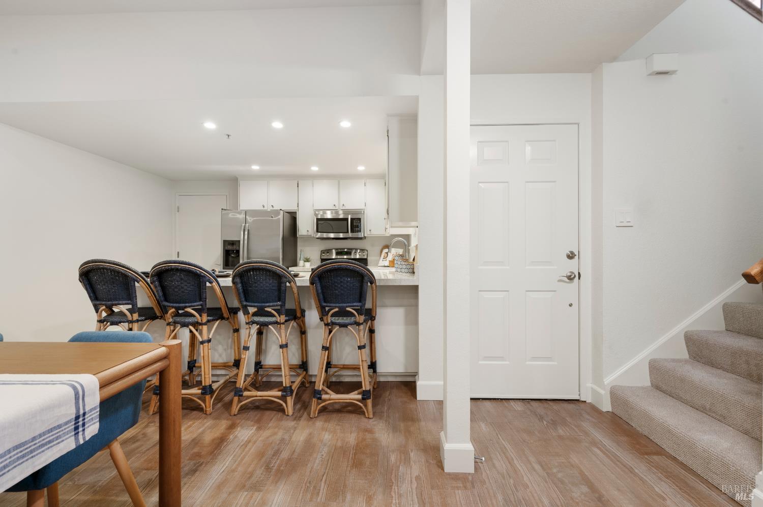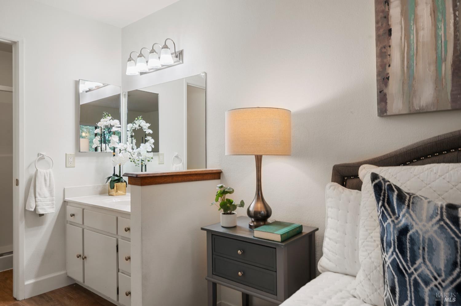 Welcome, why compromise? May be Napa's only 2 Bedroom Condo with double-size Lot, fully fenced and gated Yard front and back, 2-car Garage with Laundry, Storage, Interior access, 2 Full Baths, Living Room with Fireplace, Central Air, and modest HOA dues that take care of Exterior, Roof and Pool! The open Kitchen with Bar seating and a full suite of Stainless Appliances will inspire you to stay in and cook. Clean as a whistle with Tile Floors, new Carpet, vaulted Ceiling, and French Doors opening onto delightfully 'huge' outdoor deck for entertaining and gardening. Perfect for family and pets, this home is truly move-in-ready. View Bedrooms, one up, one downstairs. Stately Redwood Trees frame the rear view and provide shade, leaving plenty of sunny areas for grilling, growing veggies, and passion projects. Near the end of the quiet court, with no rear neighbor, and none above or below or to one side. Zero road noise, but easy onto Hwy 29-- or even walk to shopping and dining-- Food City and River Park are right nearby. Located in the Southwest corner of Napa at the foot of vineyard hills and open space, inviting you on great bike rides through the Carneros, dog walks into town, or hops in the car to go on Upvalley or Sonoma outings. Why settle for less? Sweet Vanessa has it all!