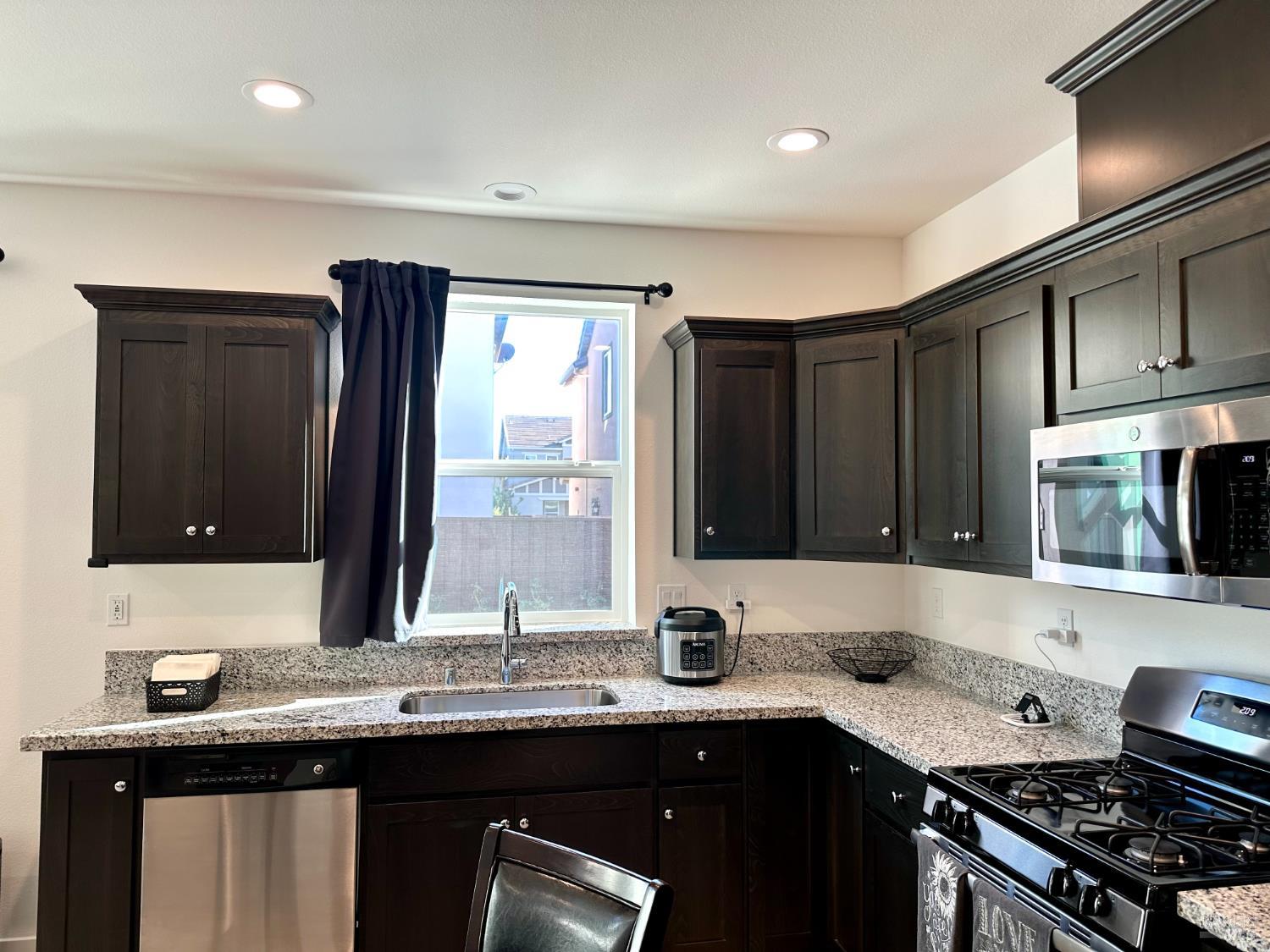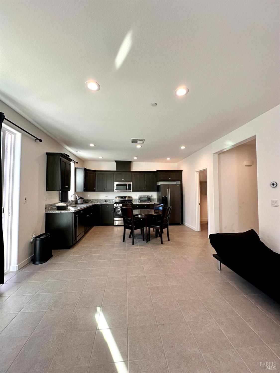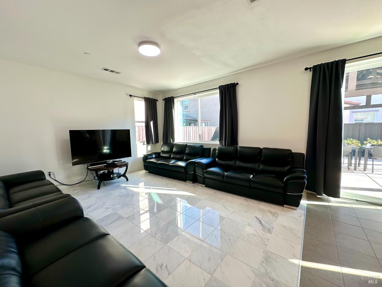 Welcom to your dream home in the Villages at Fairfield! Built in 2019, this gorgeous 1,817 sq. ft. move-in-ready home comes fully furnished and includes energy-efficient solar panels to help lower monthly bills. Featuring 3 bedrooms and 2.5 bathrooms, the home showcases modern marble flooring throughout most of the interior, elegant granite countertops, modern dark shaker cabinets, stainless steel appliances, recessed lighting, and a spacious walk-in pantry. The kitchen flows seamlessly into the living and dining areas, creating an ideal space for entertaining or relaxing with family. The large primary bedroom features a generous walk-in closet and a double-sink vanity. Fully turn-key, it comes with all newer furniture and appliances, including two beds, four sofas, a dinette set, TV, an outdoor gazebo, patio furniture, and potted plants. Enjoy a large concrete patio with a pergola and low-maintenance front and backyardperfect for play, relaxation, or hosting. Additional highlights include a tankless water heater and a prime location close to parks, shopping, wineries, the train station, golf courses, and Travis Air Force Base just minutes away, with easy access to I-80.