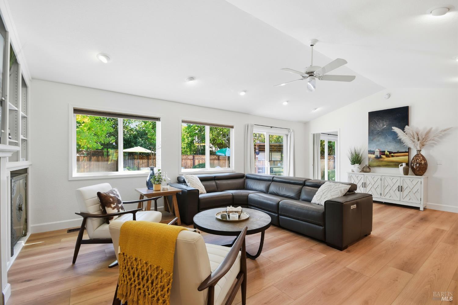 Tucked at the end of a quiet cul-de-sac, this charming single-level retreat blends fresh style with standout comfort. A covered front porch sets the tone, leading into bright, open living spaces enhanced by vaulted ceilings, newer luxury vinyl plank flooring, plush wool carpets, and a warm gas fireplace. The newly remodeled kitchen elevates every day with walnut countertop accents, stainless steel appliances, and a striking designer Italian-tile backsplash. Two spacious ensuite primary bedrooms including one with a walk-in shower offer impressive flexibility, additionally two oversized bedrooms (one with a bay window), ceiling fans, and crisp new interior and exterior paint add effortless appeal. Step outside to a huge backyard built for relaxation and entertainment: an in-ground pool, outdoor dining zone, gas fire pit, and bar all framed by views of the surrounding hills. Located in desirable Rincon Valley near award-winning schools, shopping, and parks, this property delivers a rare blend of comfort, updates, and outdoor living, an exceptional opportunity in a sought-after setting. Don't miss your chance at this rare offering of this home for the first time in 33 years!