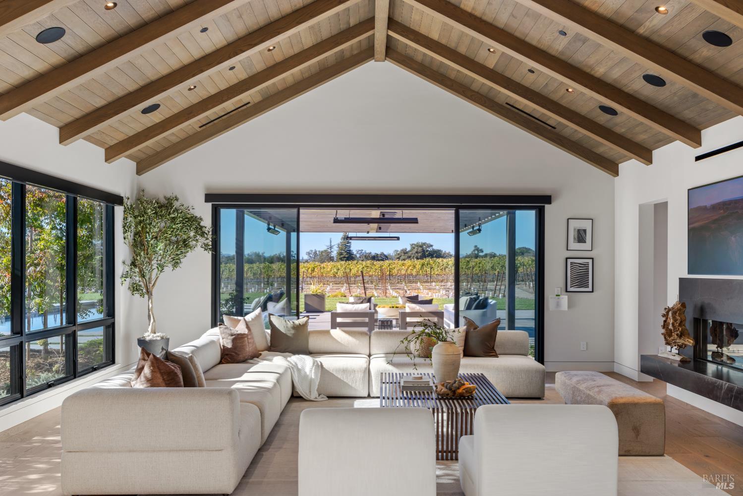 Set on five private acres at the end of a long gated drive, this newly constructed Napa Valley compound redefines modern wine country living. Collaboratively envisioned by architect Alan Page and Bette Abbott Interior Design and completed in October 2025 by renowned builder Vine Homes. The grounds encompass an impressive main residence with two attached garages, two guest houses, and two separate garages - one designed for the avid car collector or the ideal entertainment barn. Designed for grand-scale entertaining and relaxed wine country living, the expansive interiors open to a series of outdoor spaces that celebrate the region's signature indoor-outdoor lifestyle. Recreational amenities include a pickleball court, bocce court, fitness area, pool and spa, a covered pool lounge with an outdoor kitchen and bar, and a private trail that extends around the perimeter of the property. 1.5 acres of Cabernet Sauvignon vines and raised culinary gardens. An iconic residence of rare craftsmanship and vision, where every line, finish, and proportion reflects an unwavering commitment to design, quality, and technology. High-speed fiber optic internet, radiant floors, zoned AC, outdoor heaters, and warm floors in the covered patios and loggias.