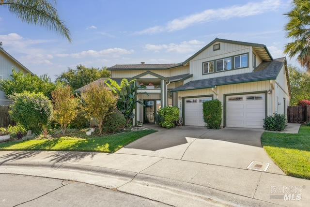 Welcome to 1365 Jacobs Place, a spacious and thoughtfully designed 4-bedroom, 2.5-bath home situated in a peaceful cul-de-sac in one of Dixon's most desirable neighborhoods. This 2,206 sq ft residence sits on a generous 7,000 sq ft lot and offers a flexible layout ideal for multigenerational living or those seeking privacy and space. The primary bedroom and an additional bedroom are conveniently located on the ground floor, along with a half bath. Upstairs, you'll find two more bedrooms and a full bathroom, providing a separate retreat for family or guests. Enjoy new flooring throughout and an inviting living and dining area with soaring ceilings that create a bright and open atmosphere. The kitchen offers ample cabinet space and a large island perfect for everyday use or hosting. Step outside to find a sunroom gazebo and a covered awning great for outdoor entertaining. The home also includes a new water heater, an owned water softener system, and a spacious 3-car garage. Located close to schools, shopping, and with easy access to Davis, Vacaville, and Sacramento, this home blends comfort, convenience, and value. Don't miss this opportunity to make it yours!