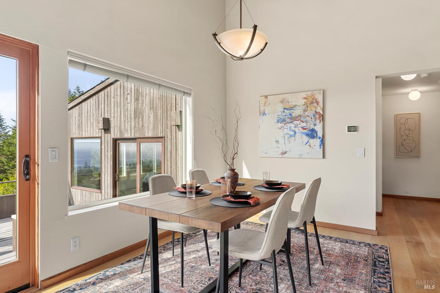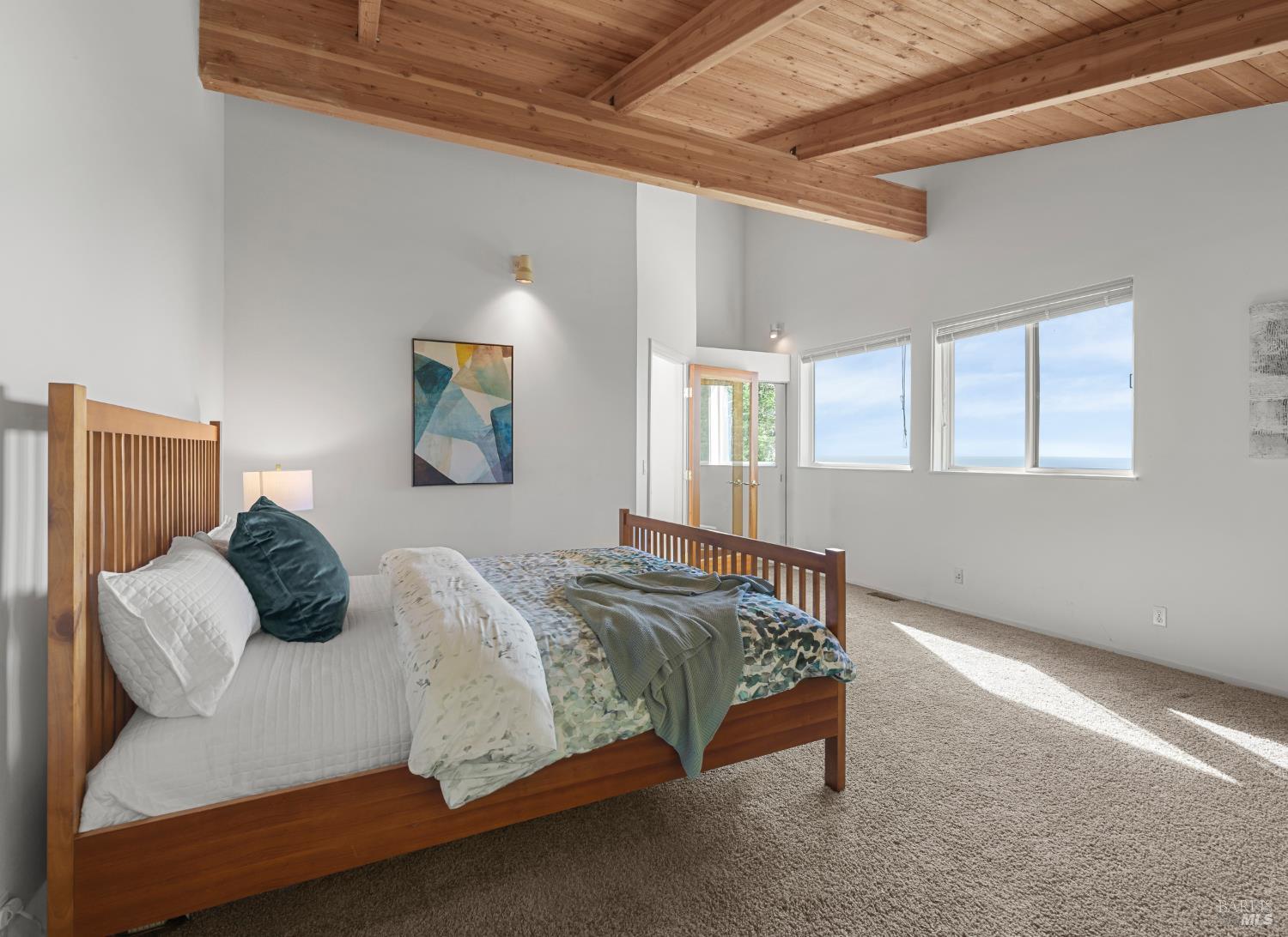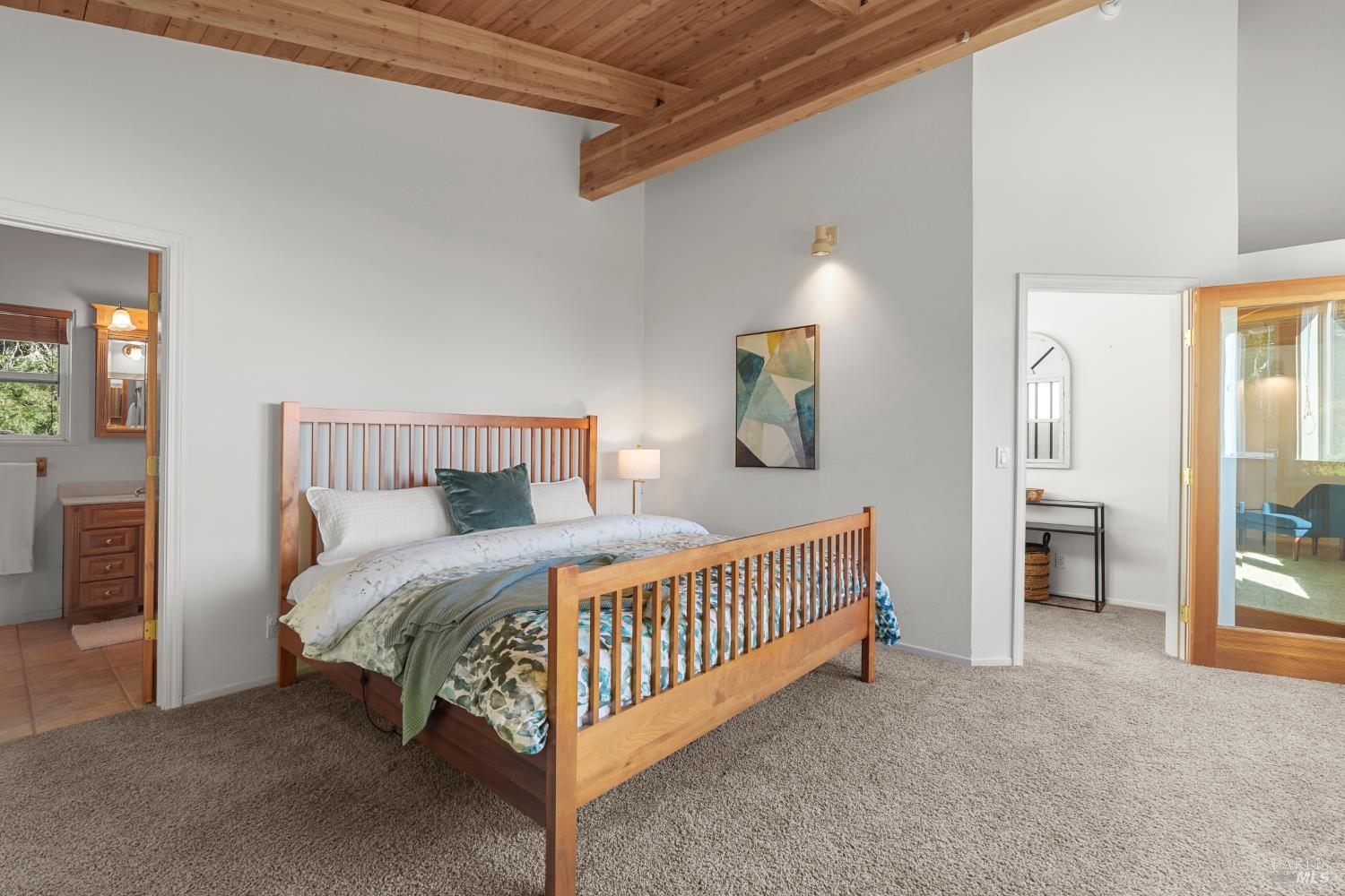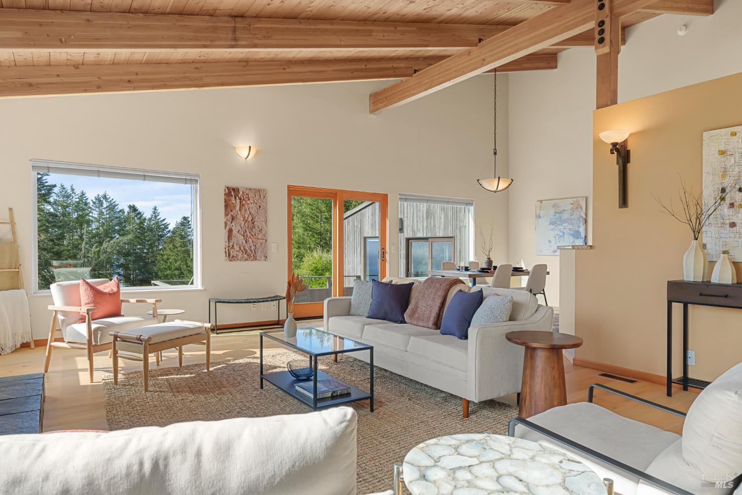 Nestled on a secluded hillside at The Sea Ranch, this property offers sweeping ocean views to the southwest and captivating white water surf directly to the west. The home is buffered by redwoods and commons to the north, while to the south, it overlooks a grassy meadow that's also part of commons. A welcoming Sunroom serves as the perfect transition from the tranquil outdoor environment into the home's warm and inviting interior. Inside, you'll find wood finishes and vaulted ceilings that create a cozy, spacious atmosphere. The Kitchen is appointed with granite countertops, adding both style and functionality. The desirable layout features three bedrooms, two of which are primary en-suite bedrooms, providing privacy and comfort. The oversized two-car garage offers ample storage space. Adjacent to the garage, a light-filled workshop provides additional space for creative or practical endeavors. High-speed internet by Sea Ranch Connect, makes remote work seamless and reliable. Residents have access to over 50 miles of scenic hiking trails, as well as recreation centers equipped with heated swimming pools, tennis courts, and saunas. Located approx 110 miles north of the Golden Gate Bridge along the Sonoma Coast, discover the unique lifestyle and natural beauty of The Sea Ranch.