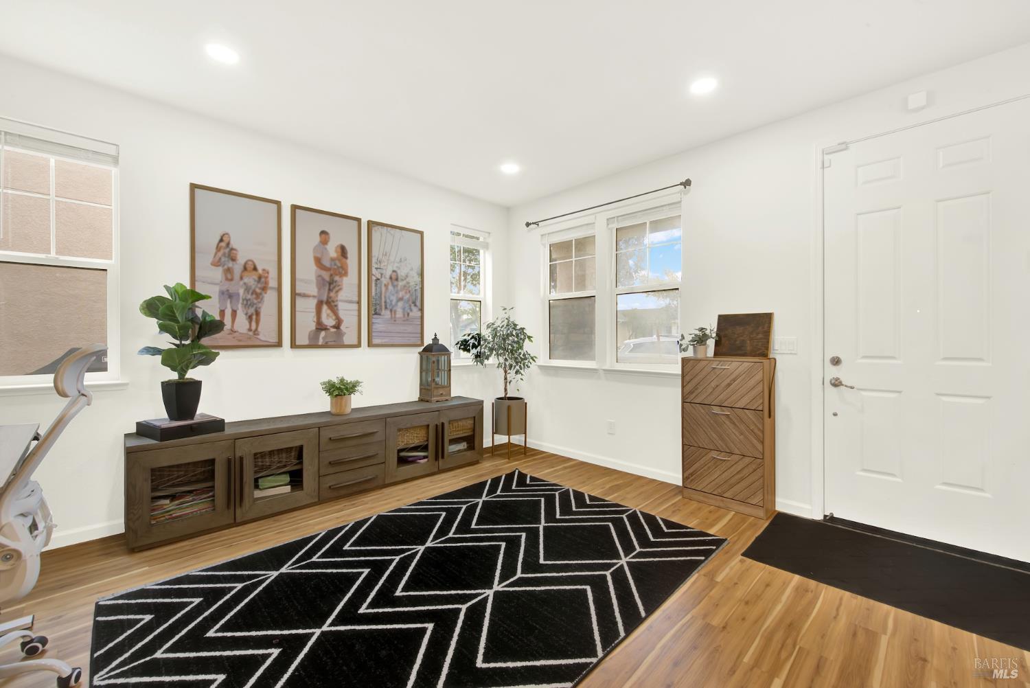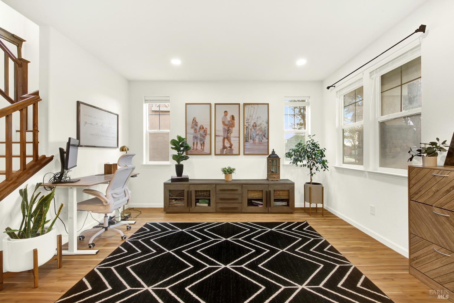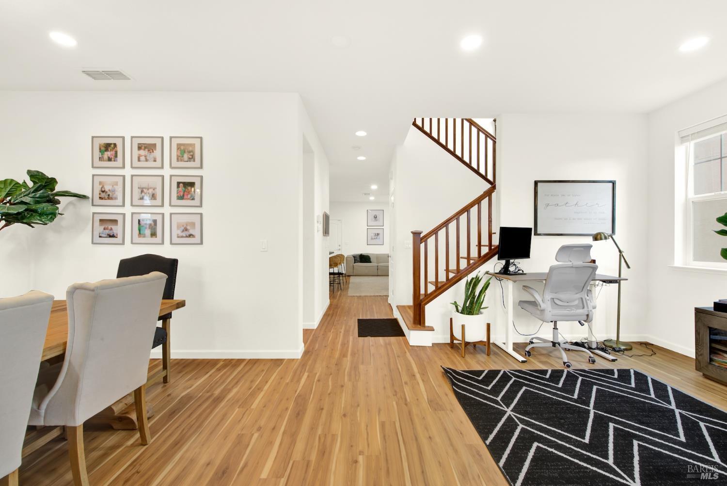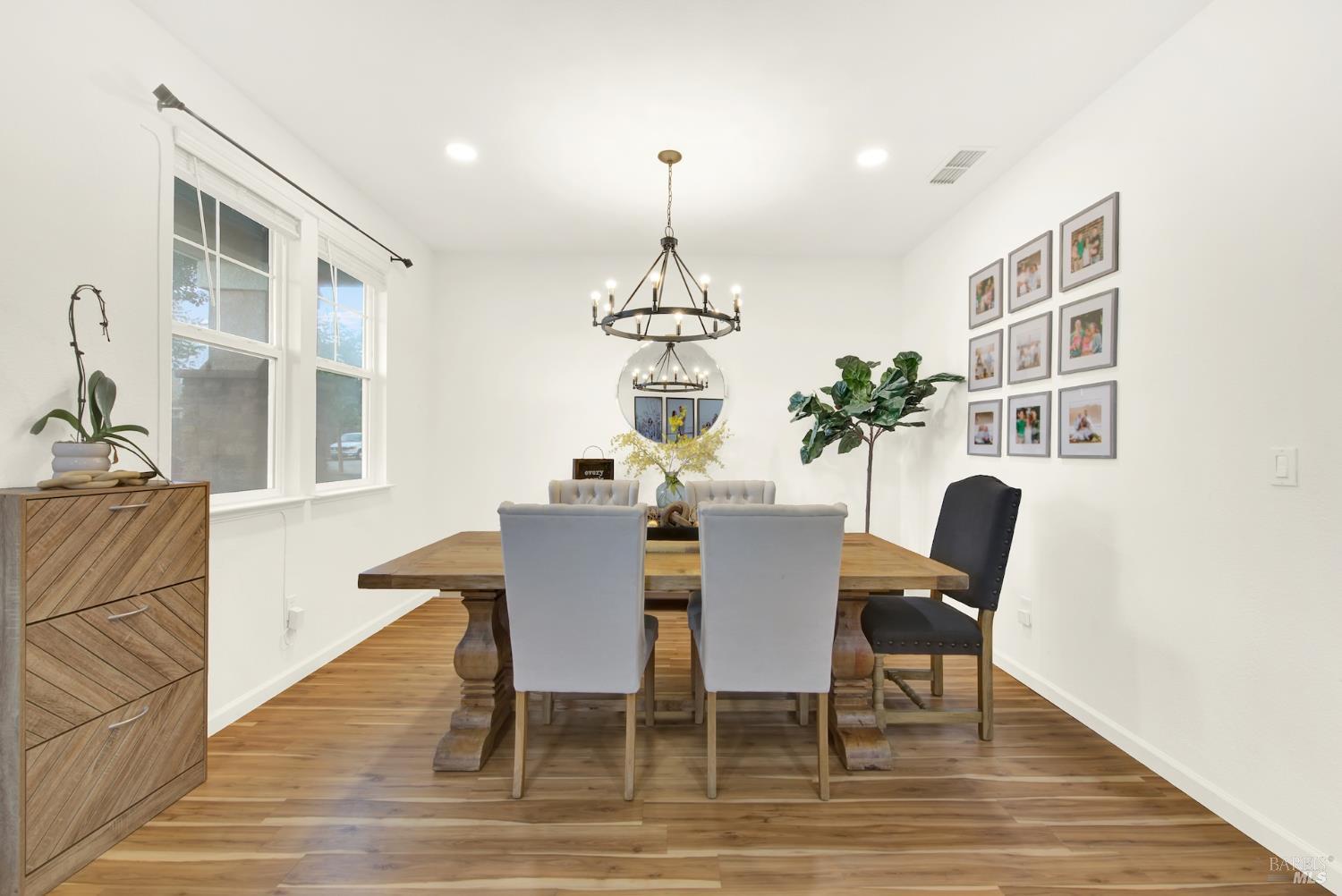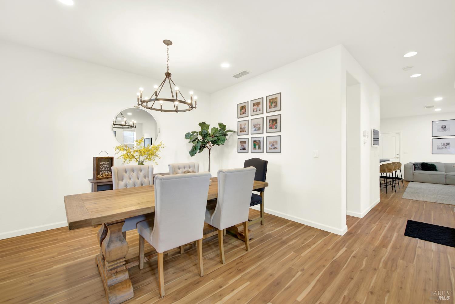 Modern at its best! Introducing 4-bedroom, 2.5-bath home in charming Cordelia. Built in 2005 and thoughtfully remodeled this 2,257 sq ft residence sits in one of Fairfield's most desired neighborhoods, just steps from scenic walking trails, Ridgeview Park, and top-rated Oakbrook Elementary.*Inside, you'll find a remodeled kitchen (2023) featuring stainless steel appliances, a double oven, quartz countertops, a spacious island with seating for three, pantry, and elegant Crate & Barrel lighting. The kitchen flows into the family room, where natural light pours in and built-in Bluetooth ceiling speakers set the tone for cooking, entertaining, or unwinding.*The home showcases updated hardwood flooring (2023), fresh interior paint, recessed lighting, and designer upgrades throughoutincluding Restoration Hardware lighting on the staircase and updated downstairs bathroom (2025). Dual gas fireplaces add warmth in both the family room and the spacious primary suite.*Upstairs, the primary bedroom offers a cozy fireplace, and a bright en-suite with updated mirrors, walk-in closet, soaking tub, shower stall. Two of the front-facing bedrooms enjoy beautiful mountain and sunset views, bringing in incredible natural light. Don't miss out!