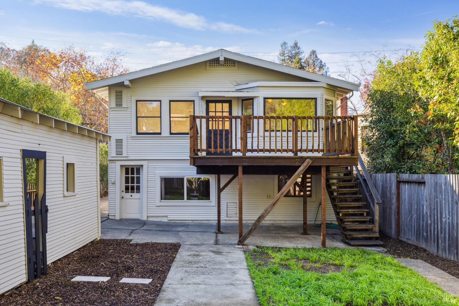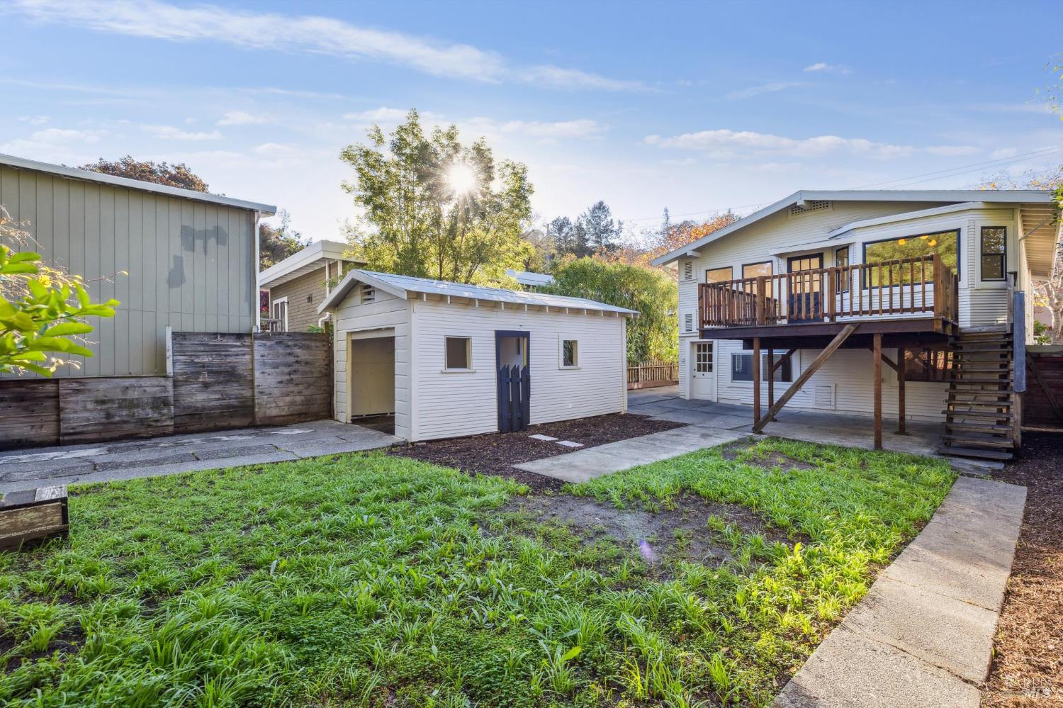 Welcome to 242 D Street, a charming, sun-drenched gem in the Heart of San Rafael. Located on one of the most picturesque streets, this spacious two-level home offers 3 bedrooms, 2 bathrooms, and a large creative flex space downstairs. The kitchen flows out onto a huge sunny deck, perfect for dining el fresco, and steps that lead you down to the awesome level yard. Upstairs, the home is filled with bright natural light, thanks to an abundance of windows and thoughtfully designed openings that maximize daylight throughout. The layout flows comfortably, creating inviting spaces for relaxing, entertaining, and everyday living that feels warm and connected. Step outside to your own private, flat backyardperfect for gardening, play, or relaxed outdoor gatherings. The property also includes a very functional carport/workshed and a extra storage shed in the back. D street is one of those extra charming tree lined streets in San Rafael, located just minutes walk from downtown San Rafael, local parks and great schools; and with quick access over Wolfe Grade to Kentfield and beyond. Move right in, create your dream home or explore making it into a two unit building for some rental income. This home has all the space and flexibility you need in an ideal neighborhood.