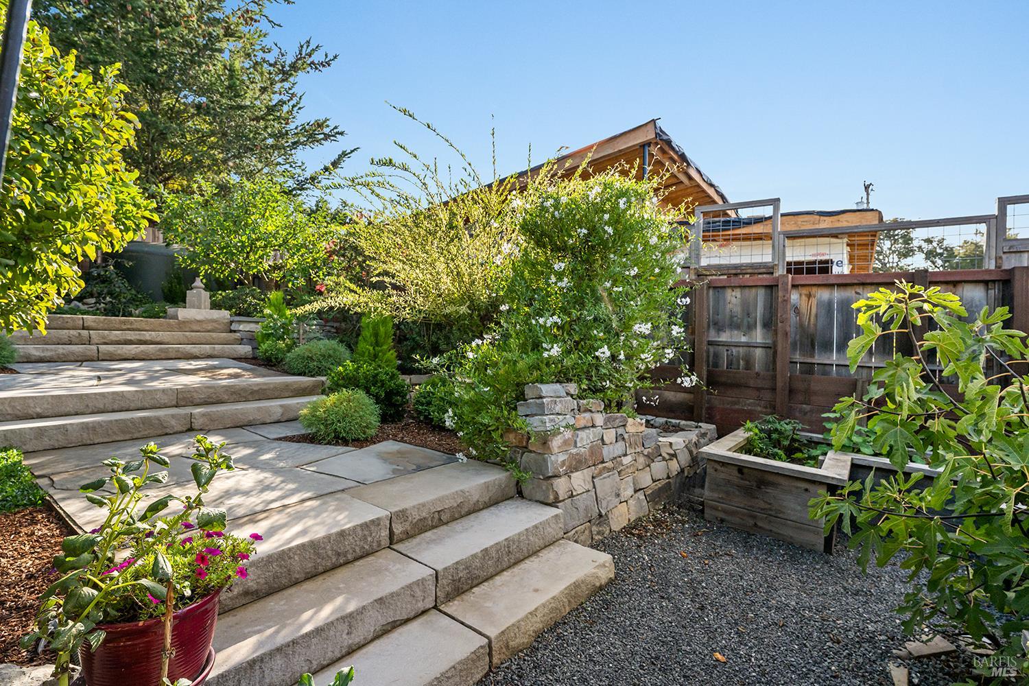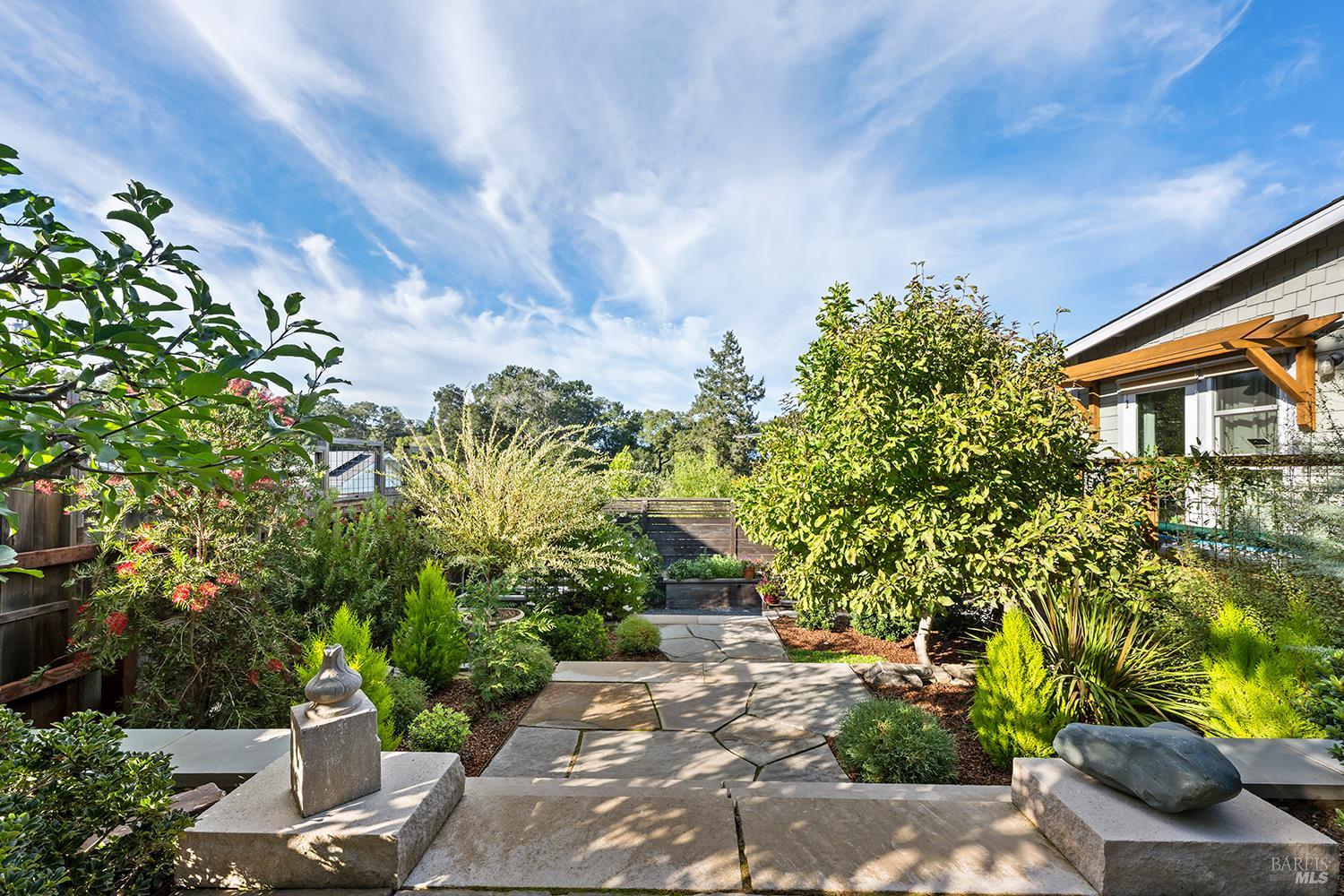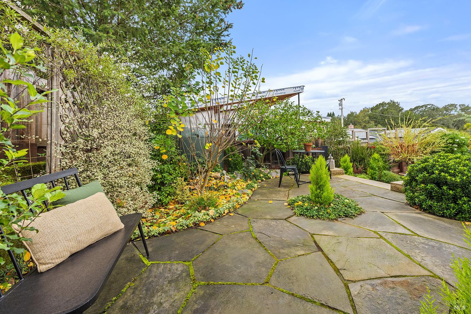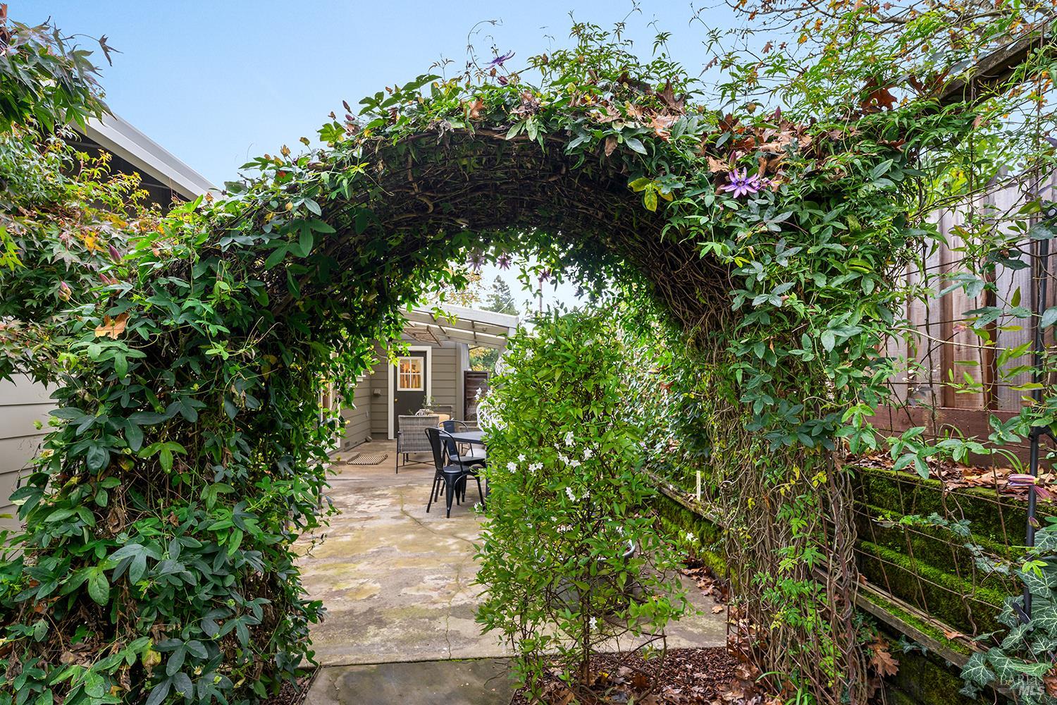 Sebastopol city living at its very best: quiet cul-de-sac location with Joe Rodota trail access just a skip down the street; stroll to restaurants, shopping, entertainment. A sweet sense of privacy and serenity in typical city density brings added value. An efficient 2 BR/1BA home has tasteful updates, a large living room, useful garage space, outdoor entertaining area, fully fenced landscaped. There's magic in the elegant terraced garden tucked like a secret at the end of the home. A sublime space for quiet contemplation.