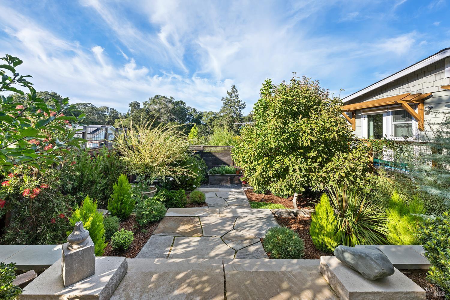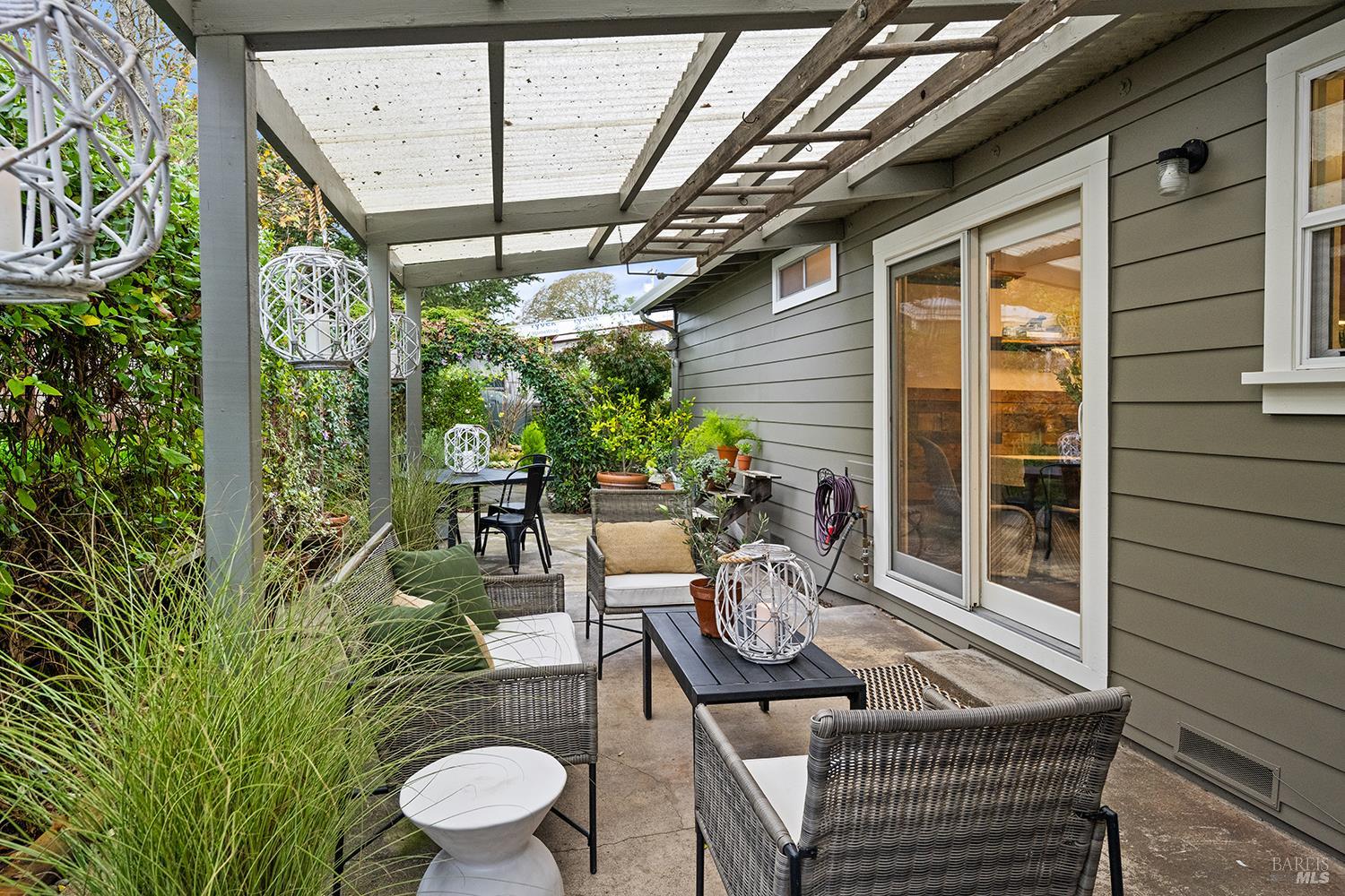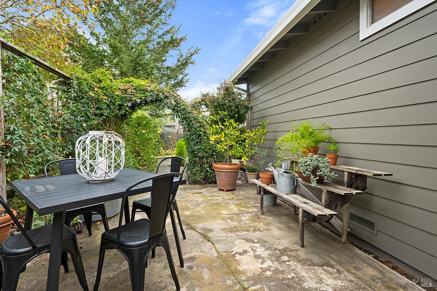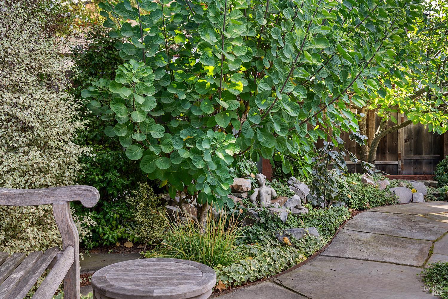 Sebastopol city living at its very best: quiet cul-de-sac location with Joe Rodota trail access just a skip down the street; stroll to restaurants, shopping, entertainment. A sweet sense of privacy and serenity in typical city density brings added value. An efficient 2 BR/1BA home has tasteful updates, a large living room, useful garage space, outdoor entertaining area, fully fenced landscaped. There's magic in the elegant terraced garden tucked like a secret at the end of the home. A sublime space for quiet contemplation.